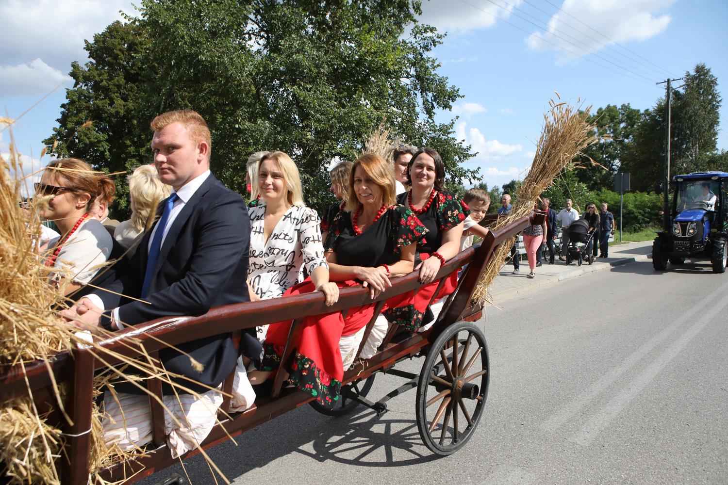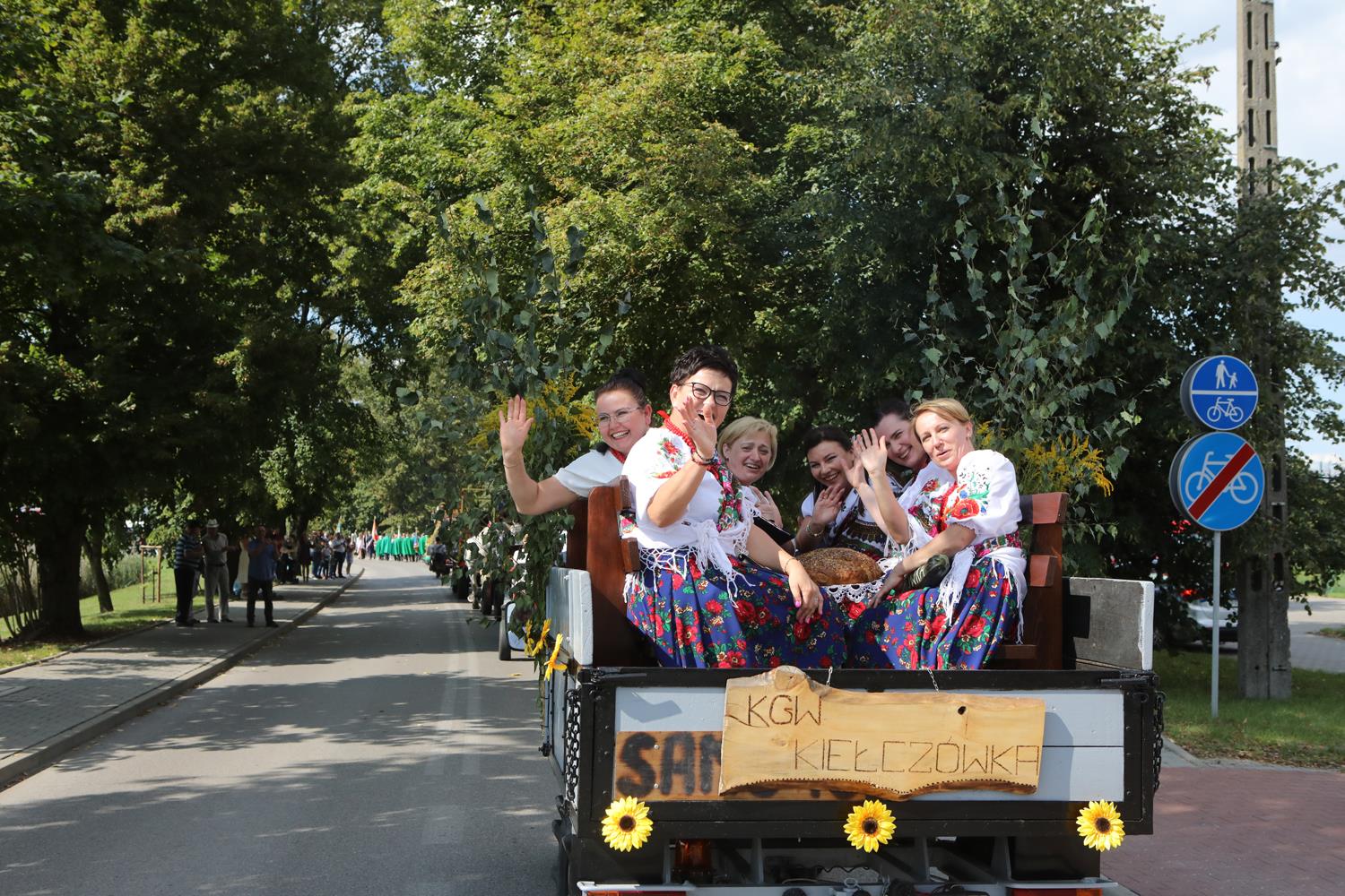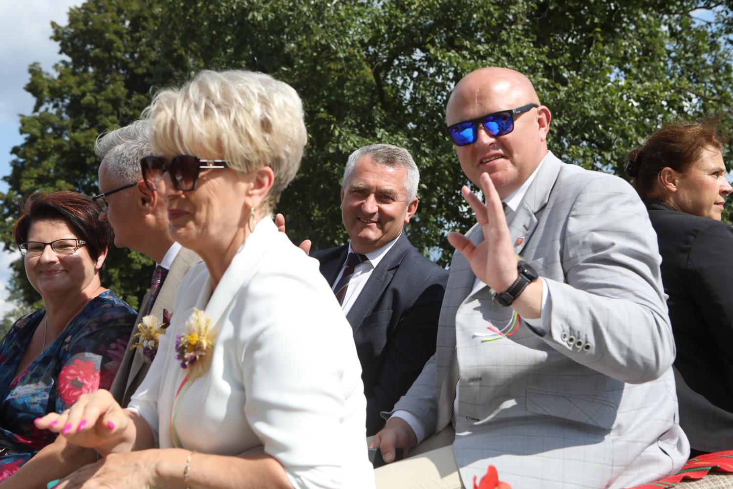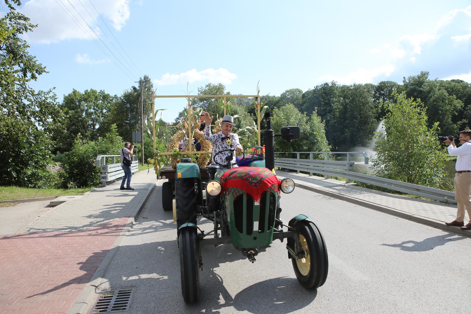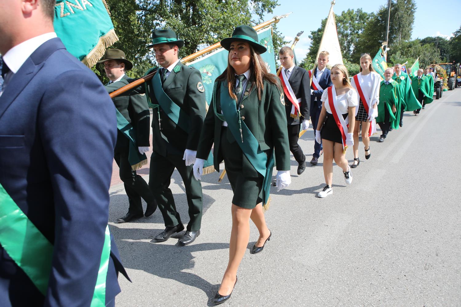 Na ceremoniał uczestnicy dotarli w korowodzie, z udziałem prawdziwych perełek, jakimi są dawne traktory, które rolnikom nadal służą w codziennej pracy. Wozami przyjechali goście i 13 delegacji wieńcowych, które prowadziła Młodzieżowa Orkiestra Dęta z Grabicy i liczne poczty sztandarowe.