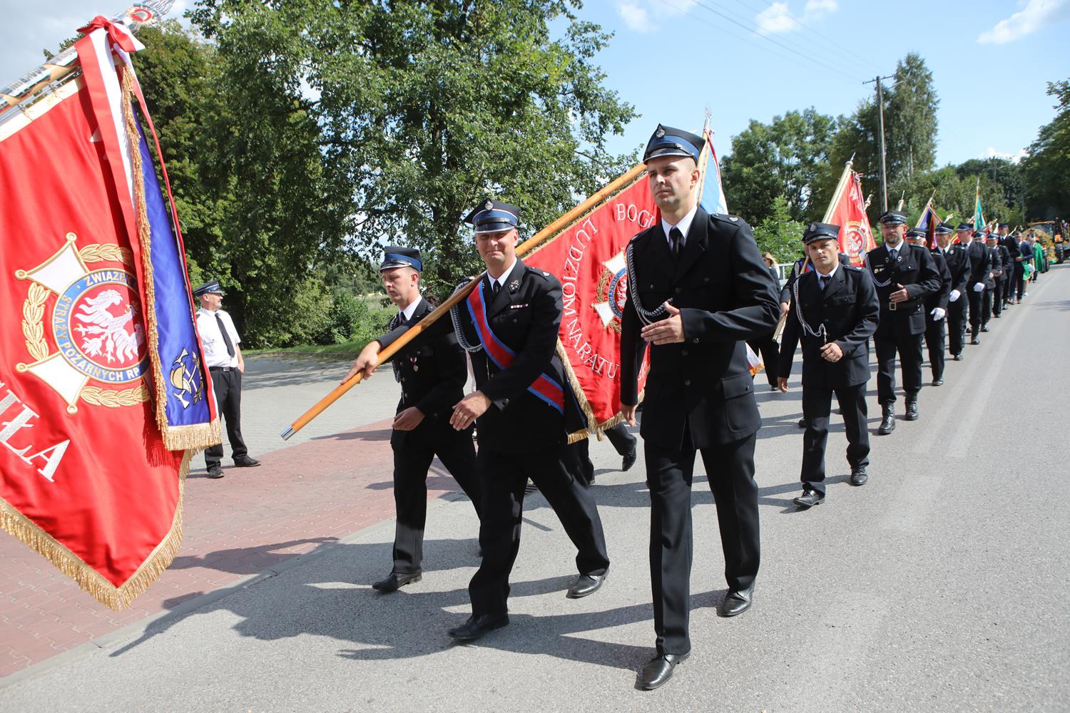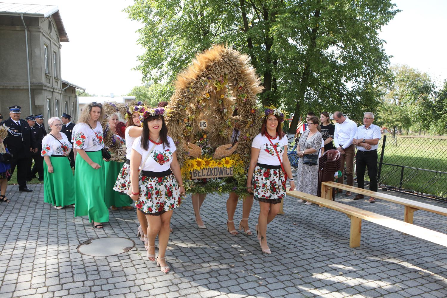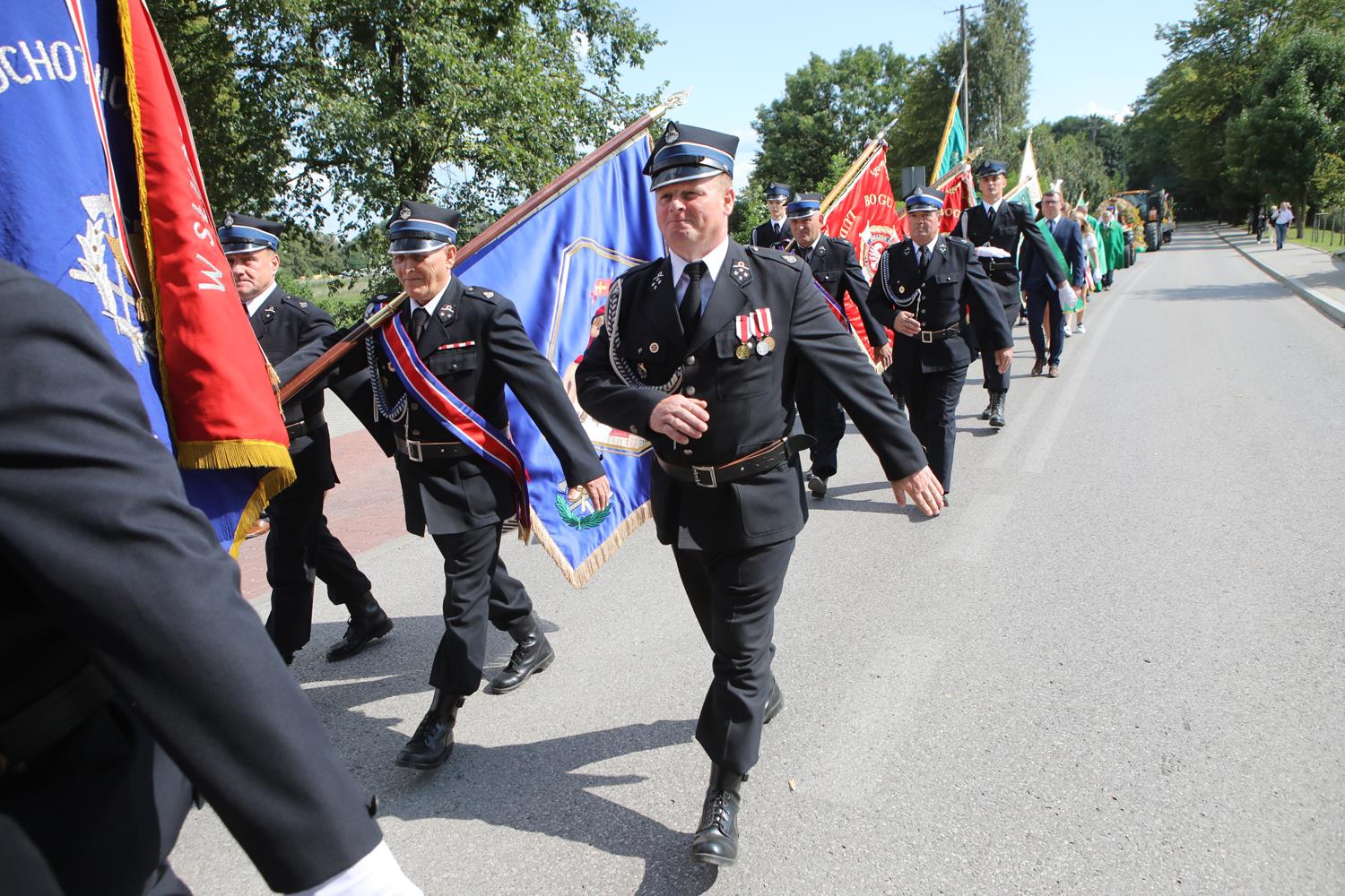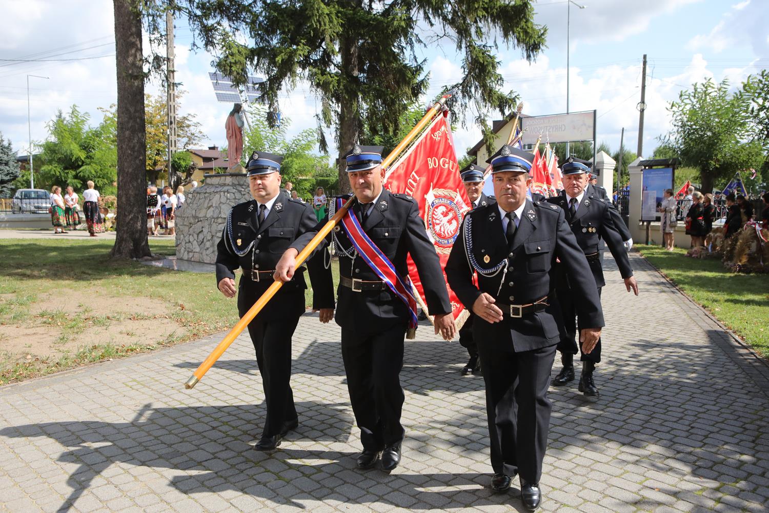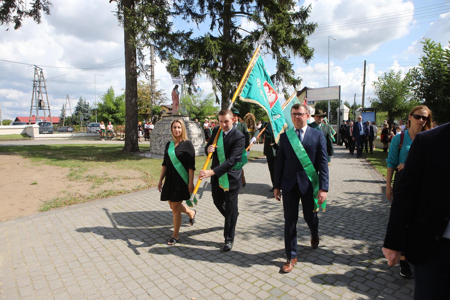 Na ceremoniał uczestnicy dotarli w korowodzie, z udziałem prawdziwych perełek, jakimi są dawne traktory, które rolnikom nadal służą w codziennej pracy. Wozami przyjechali goście i 13 delegacji wieńcowych, które prowadziła Młodzieżowa Orkiestra Dęta z Grabicy i liczne poczty sztandarowe.