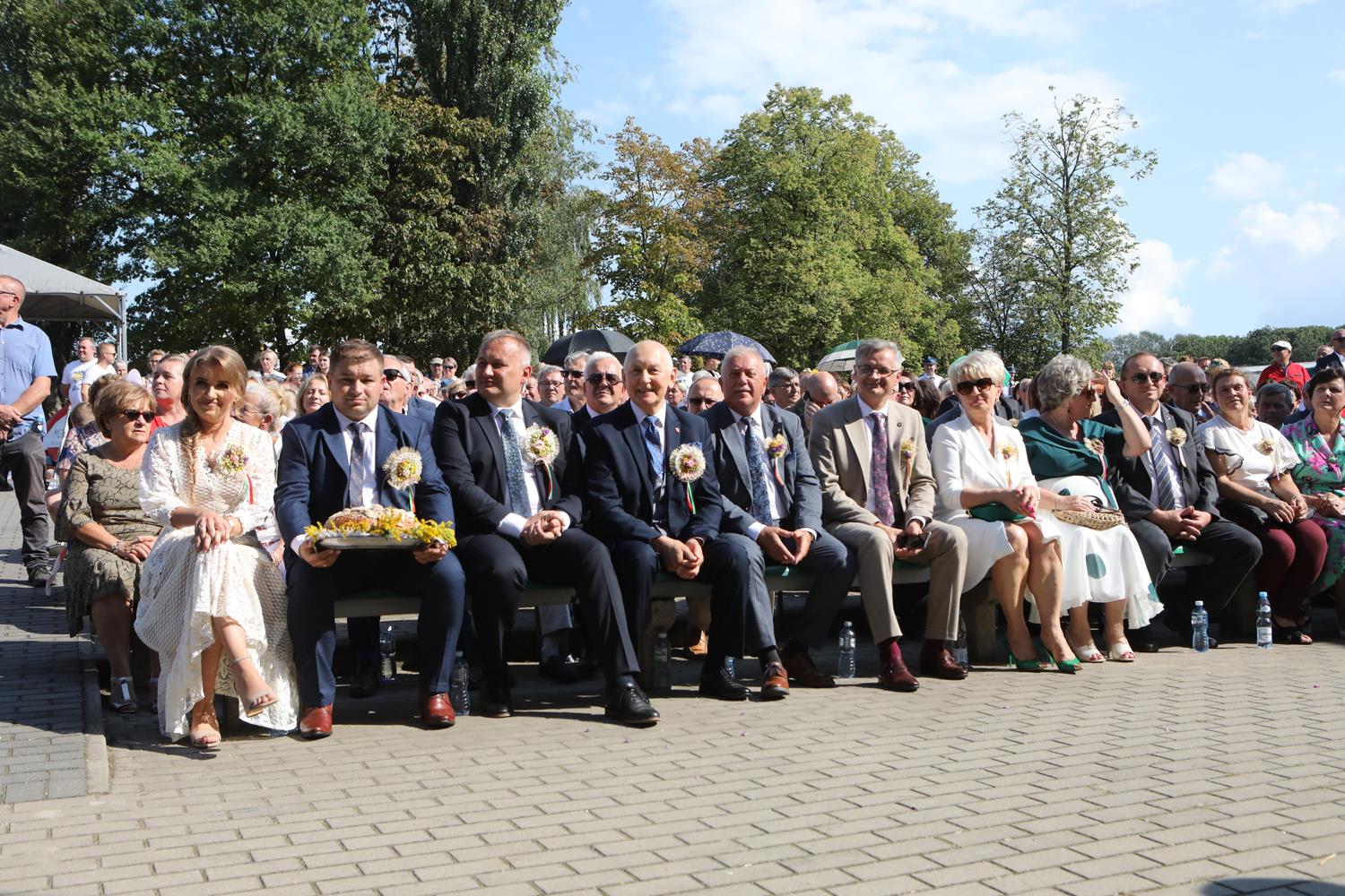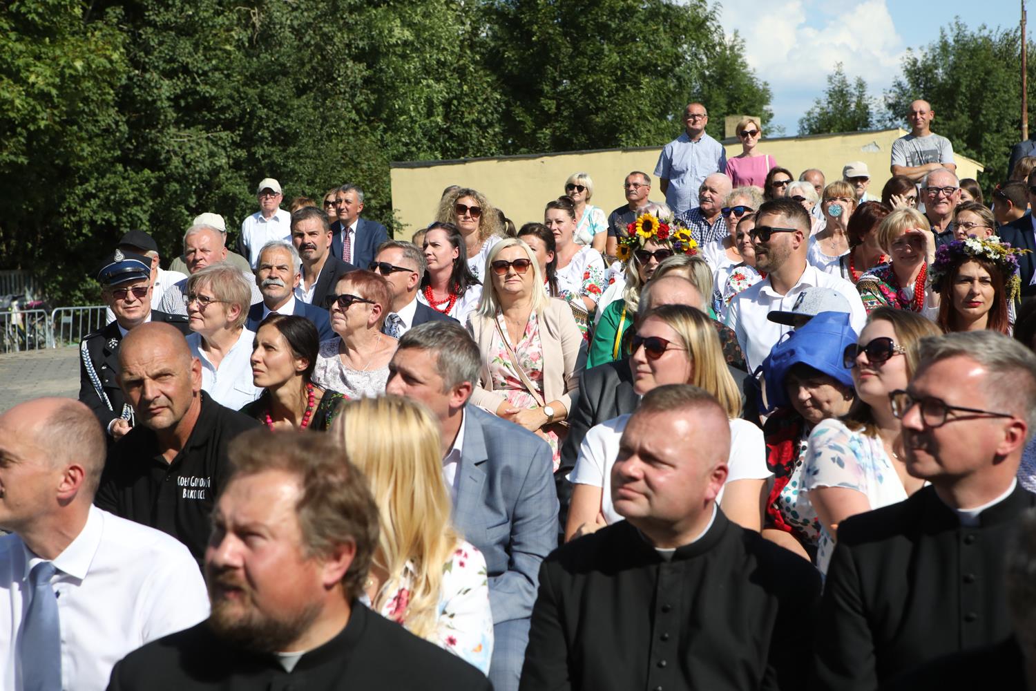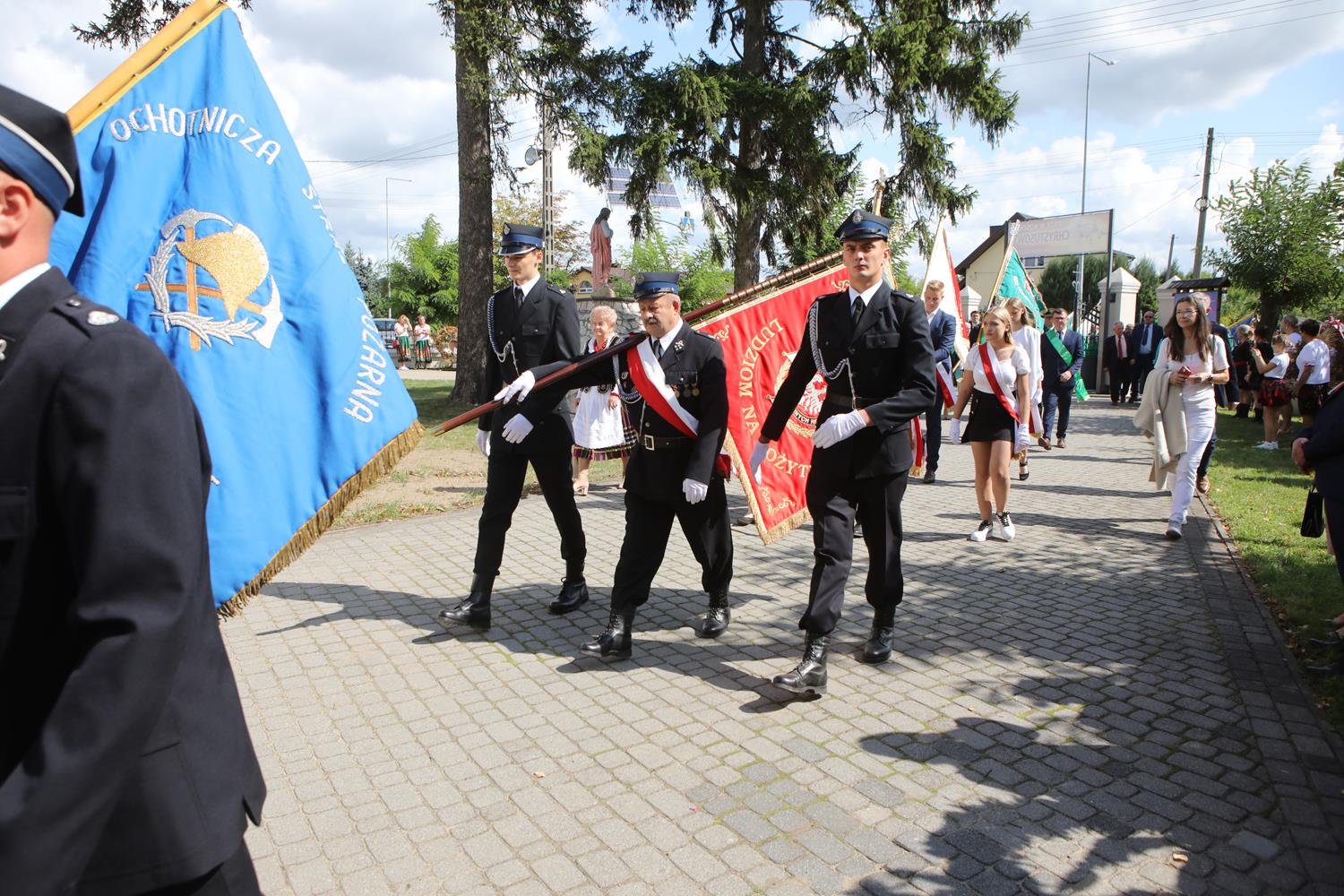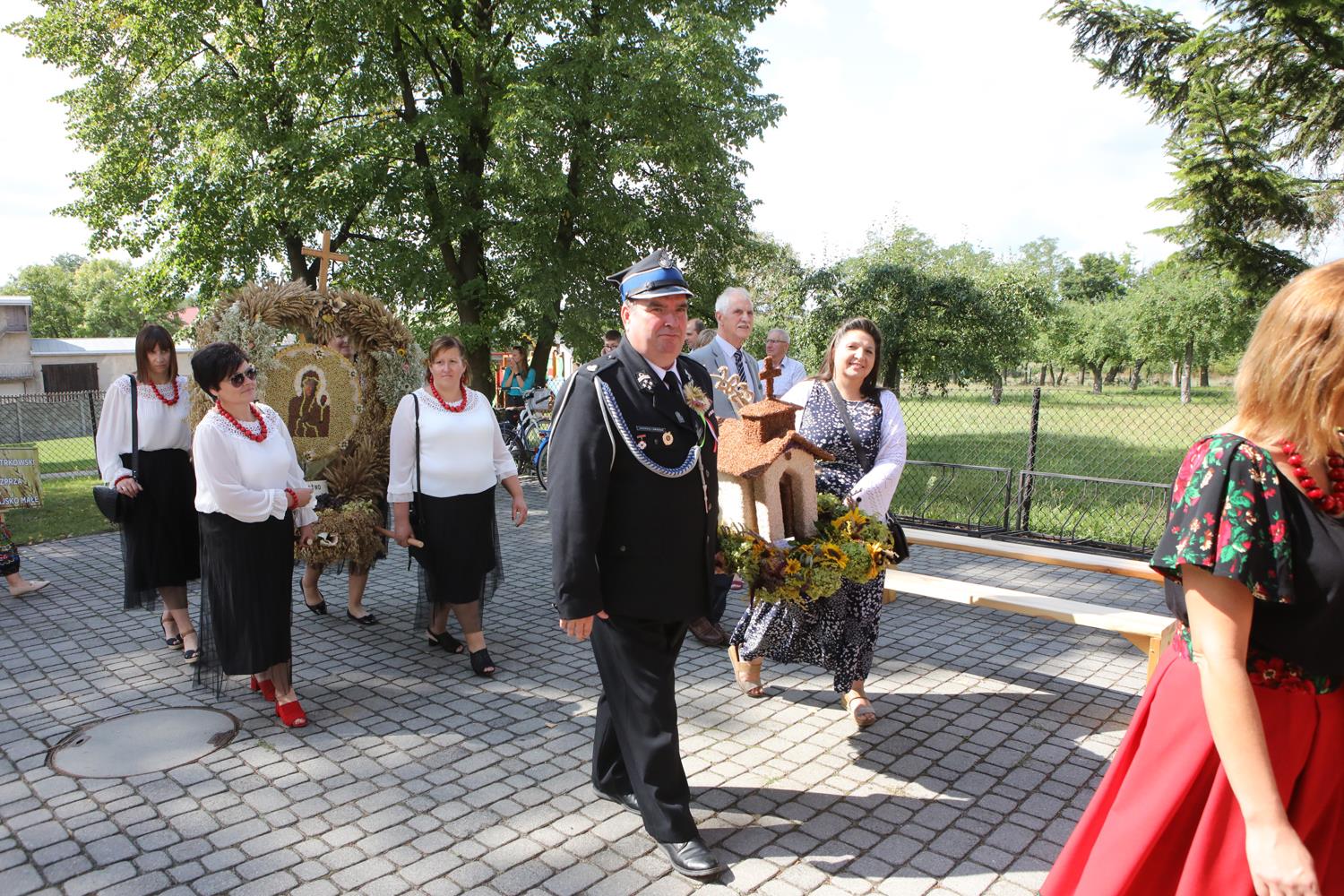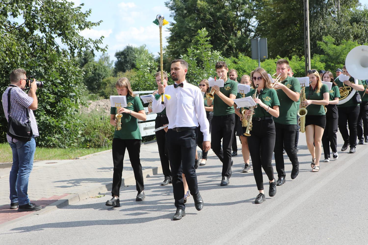 Na ceremoniał uczestnicy dotarli w korowodzie, z udziałem prawdziwych perełek, jakimi są dawne traktory, które rolnikom nadal służą w codziennej pracy. Wozami przyjechali goście i 13 delegacji wieńcowych, które prowadziła Młodzieżowa Orkiestra Dęta z Grabicy i liczne poczty sztandarowe.