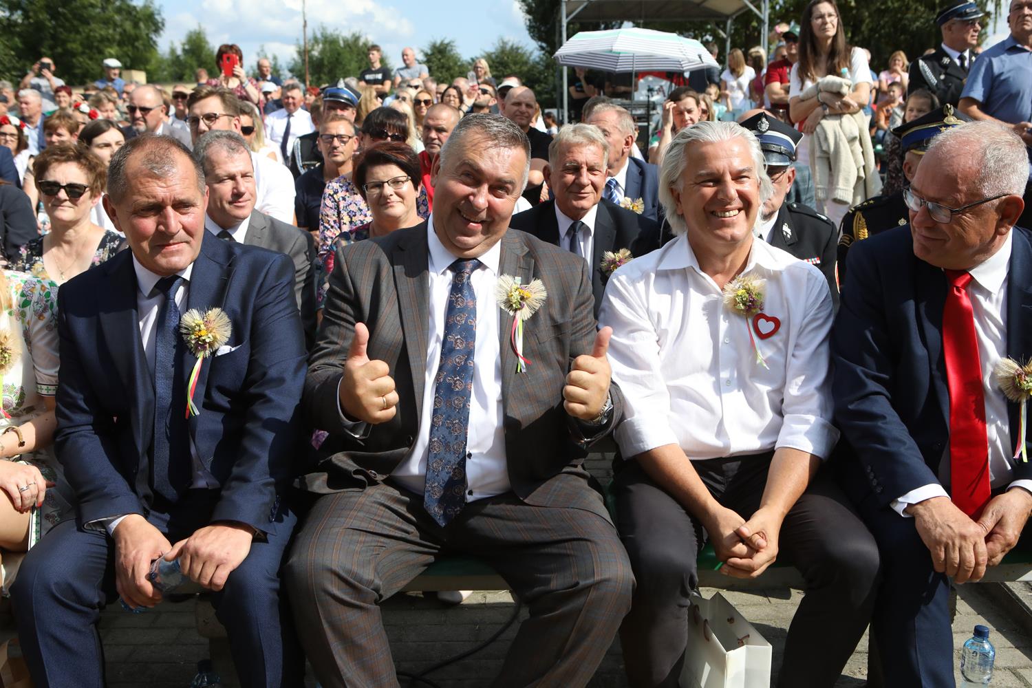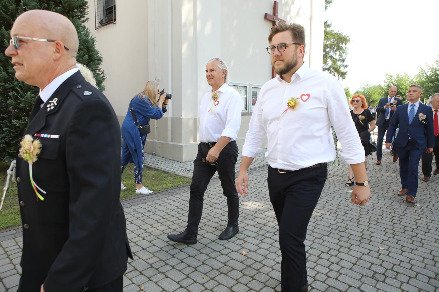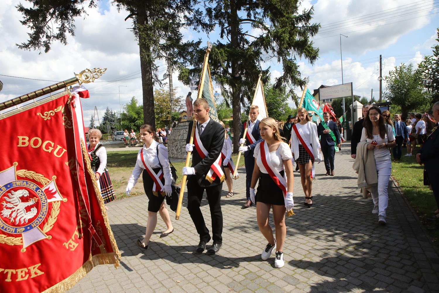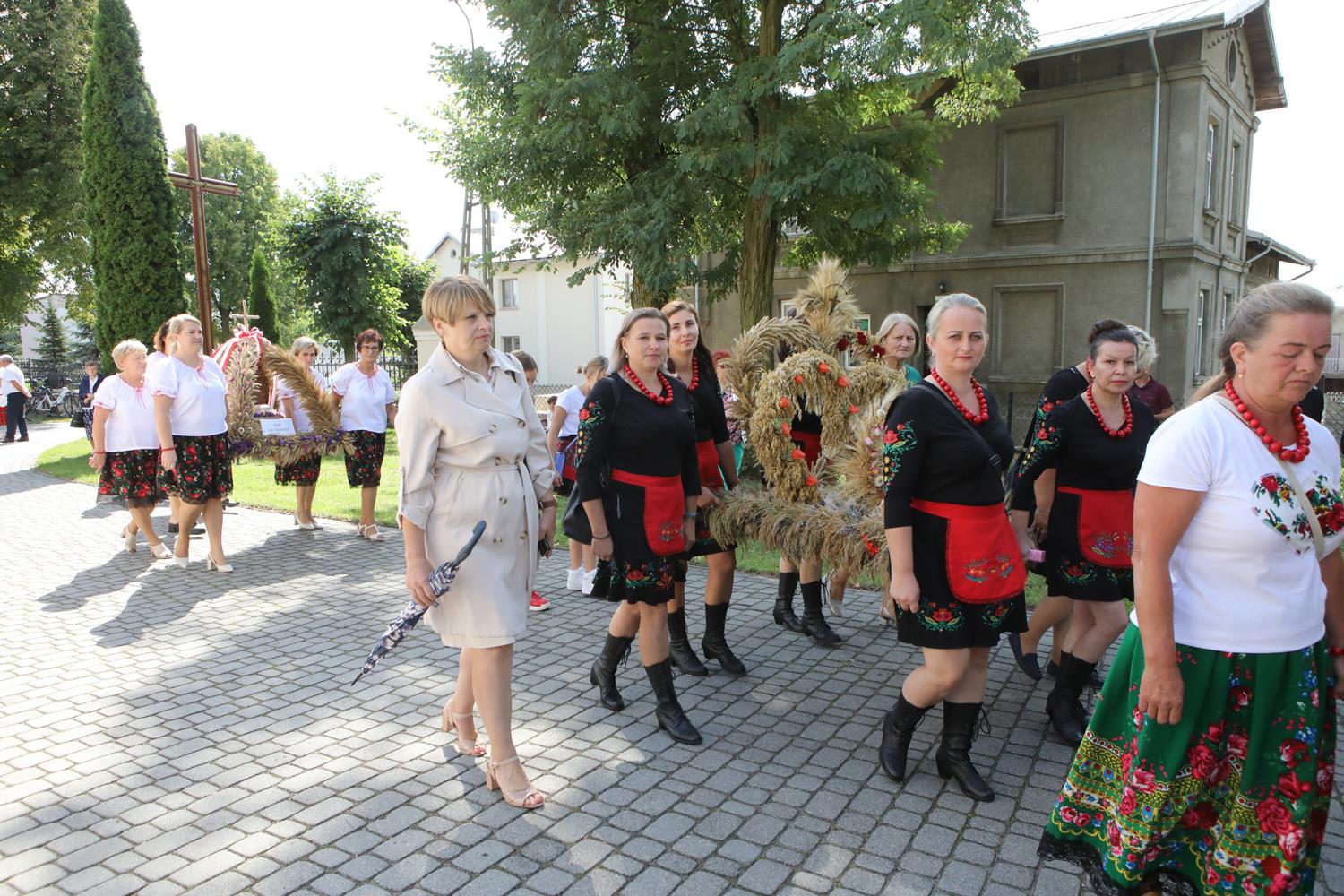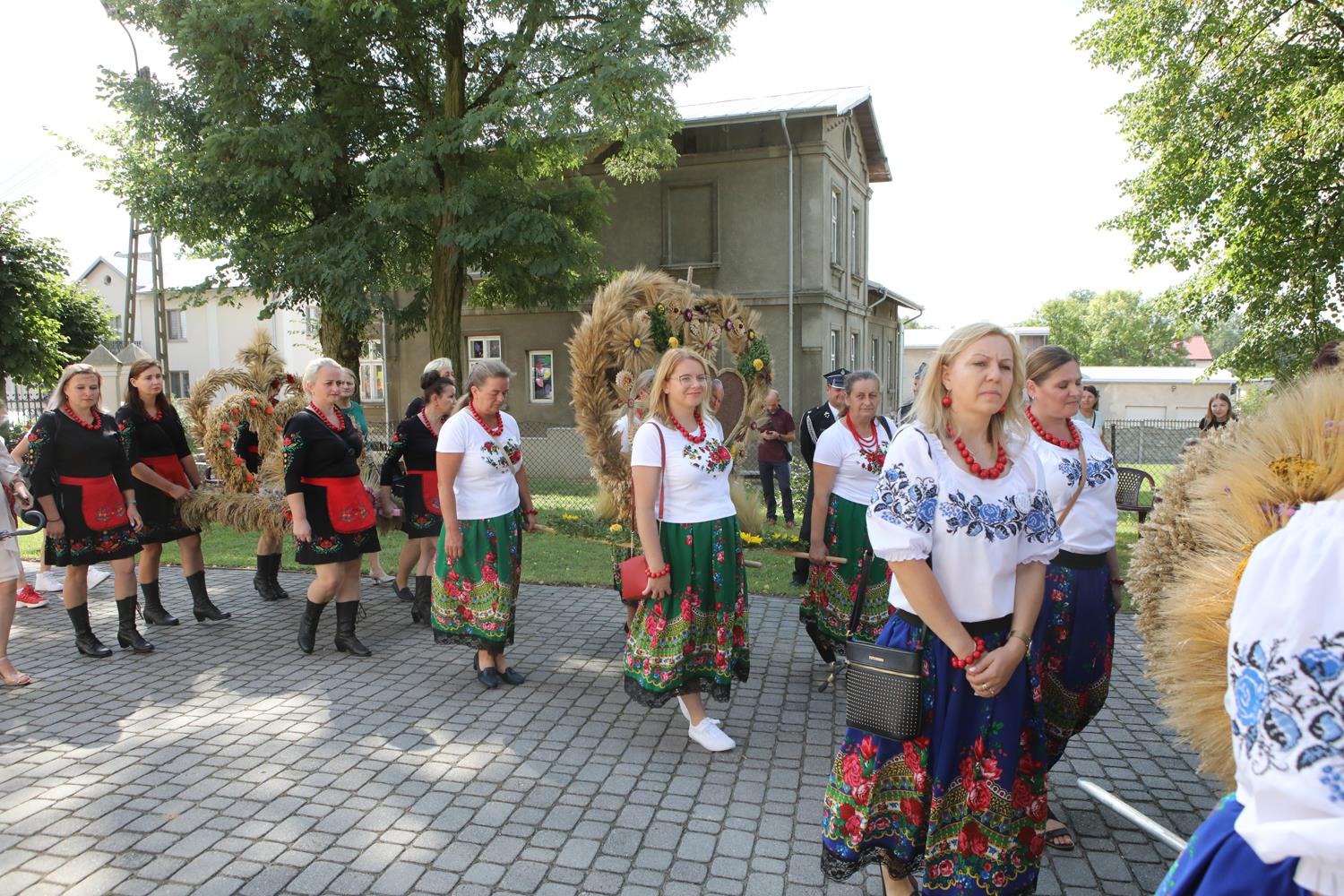 Na ceremoniał uczestnicy dotarli w korowodzie, z udziałem prawdziwych perełek, jakimi są dawne traktory, które rolnikom nadal służą w codziennej pracy. Wozami przyjechali goście i 13 delegacji wieńcowych, które prowadziła Młodzieżowa Orkiestra Dęta z Grabicy i liczne poczty sztandarowe.