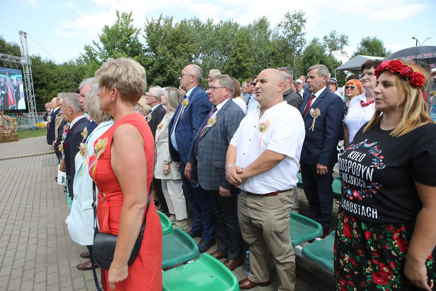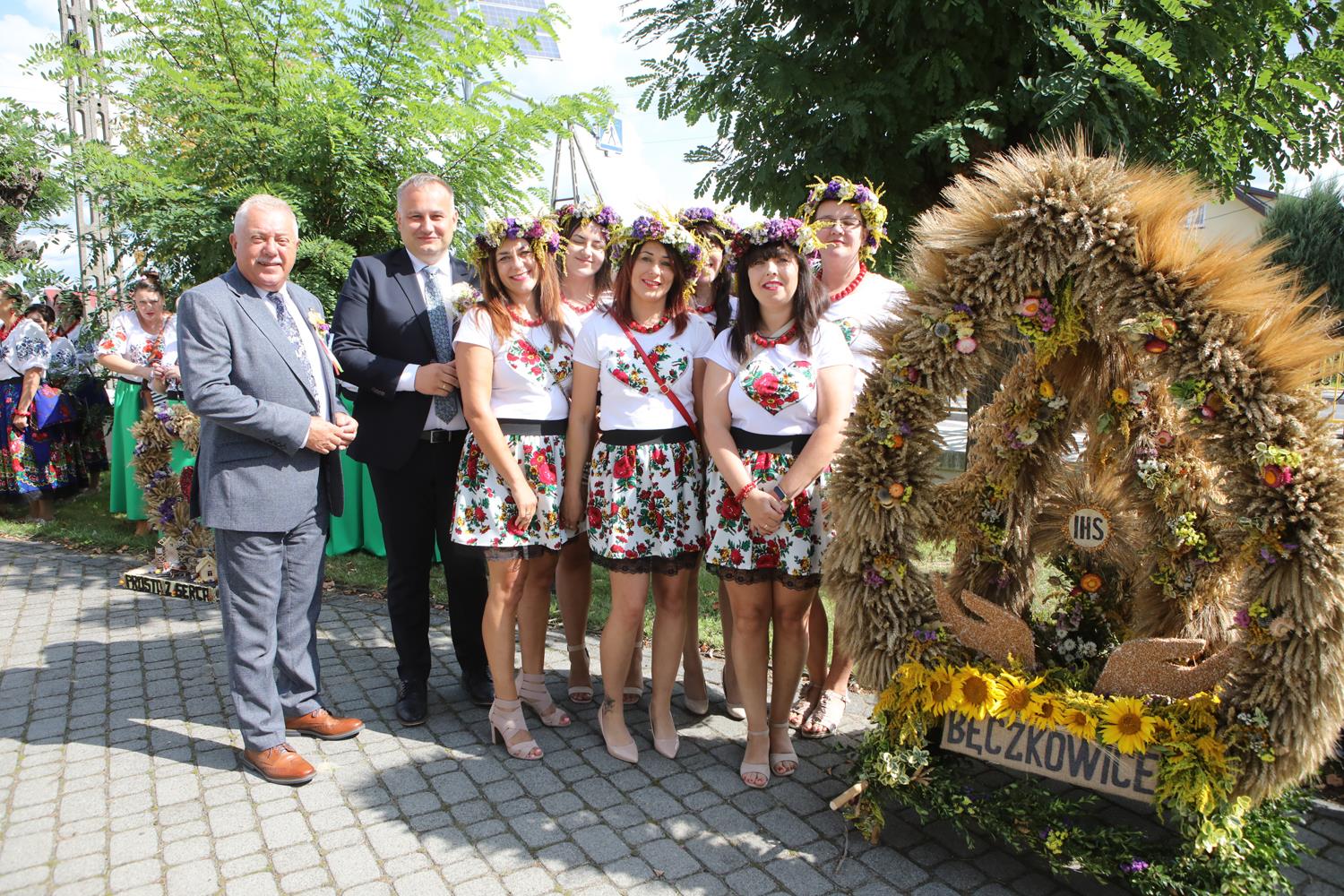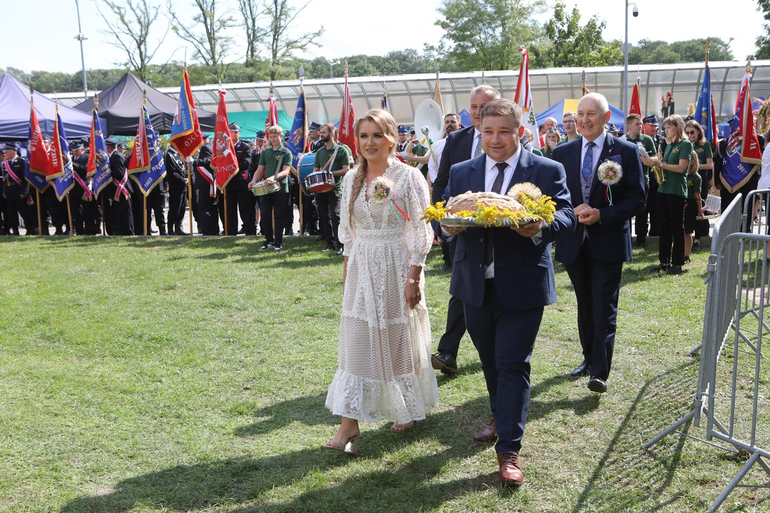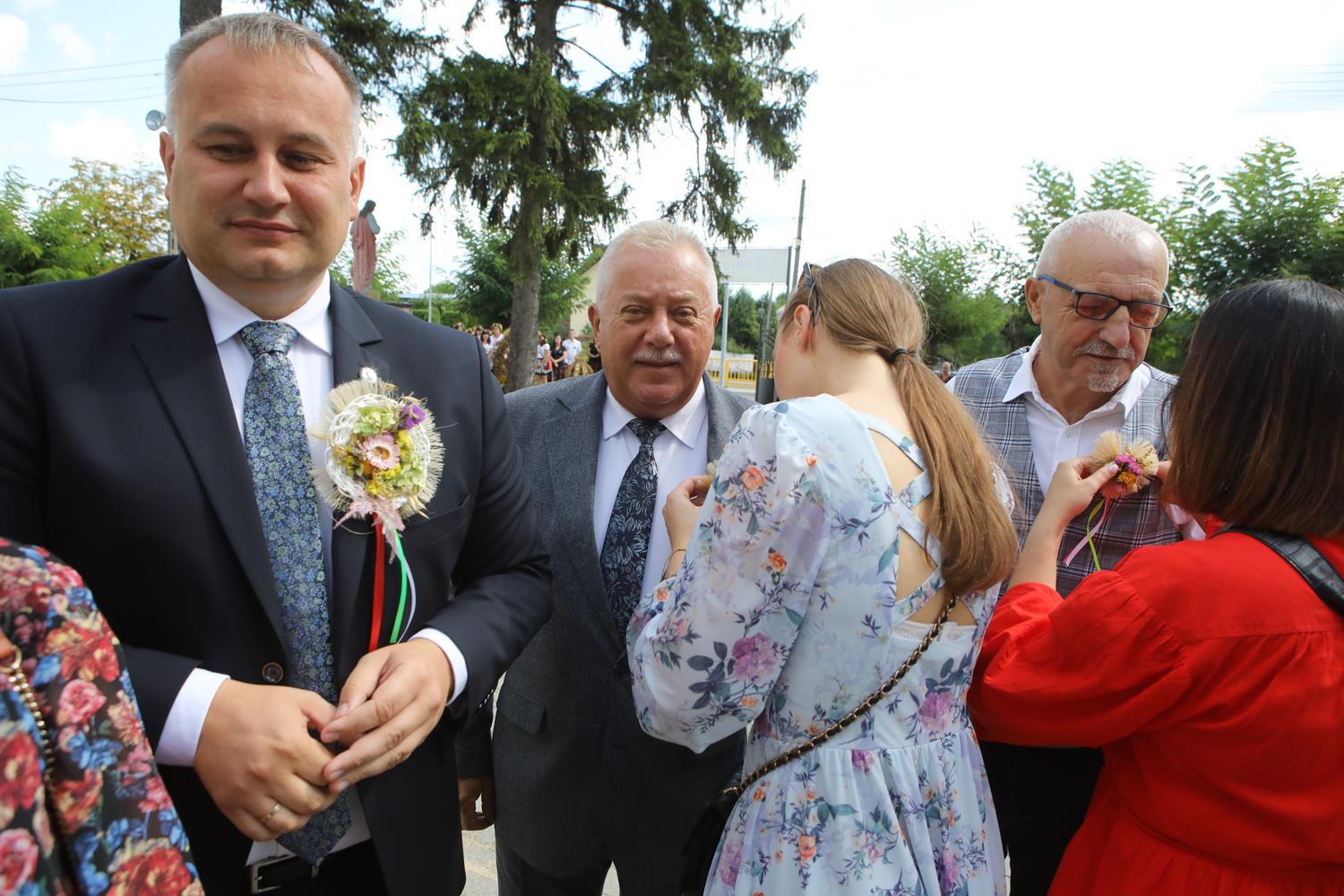 Na ceremoniał uczestnicy dotarli w korowodzie, z udziałem prawdziwych perełek, jakimi są dawne traktory, które rolnikom nadal służą w codziennej pracy. Wozami przyjechali goście i 13 delegacji wieńcowych, które prowadziła Młodzieżowa Orkiestra Dęta z Grabicy i liczne poczty sztandarowe.