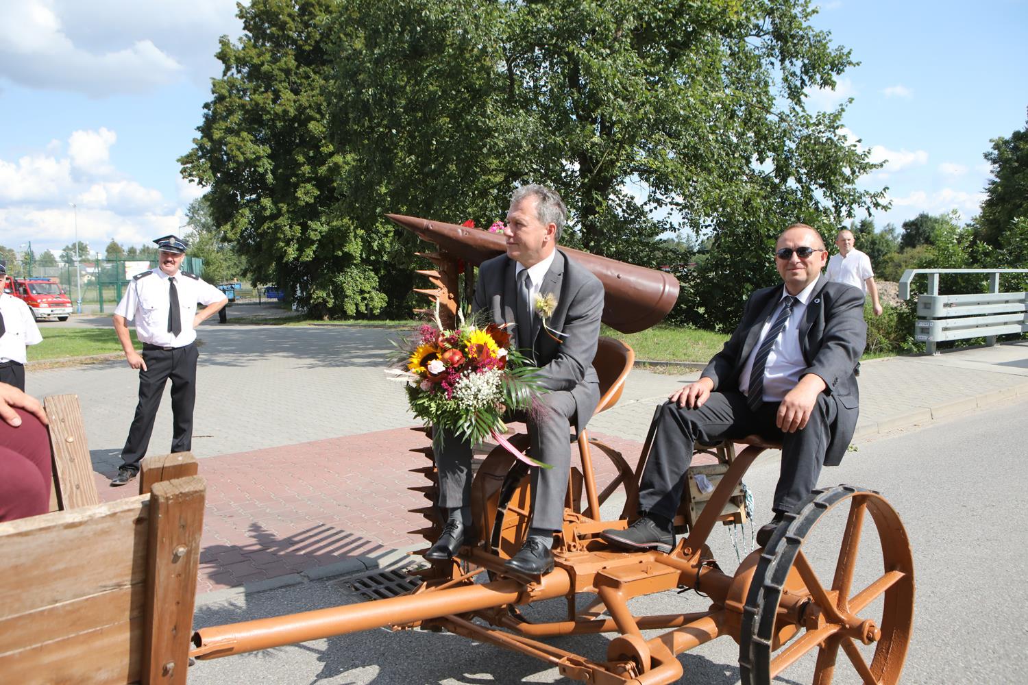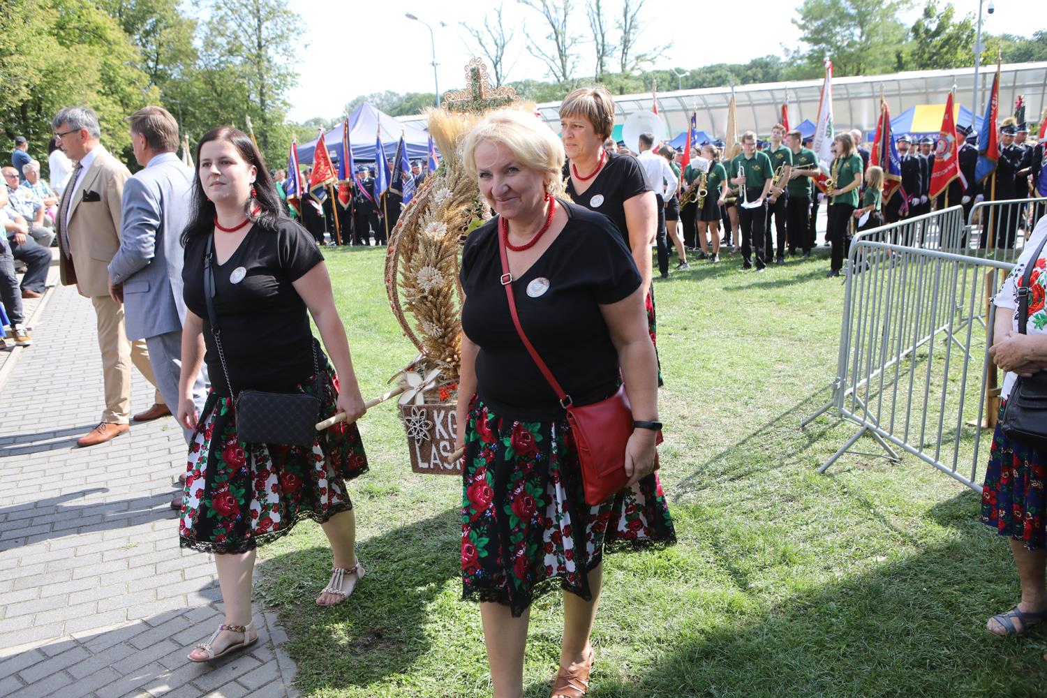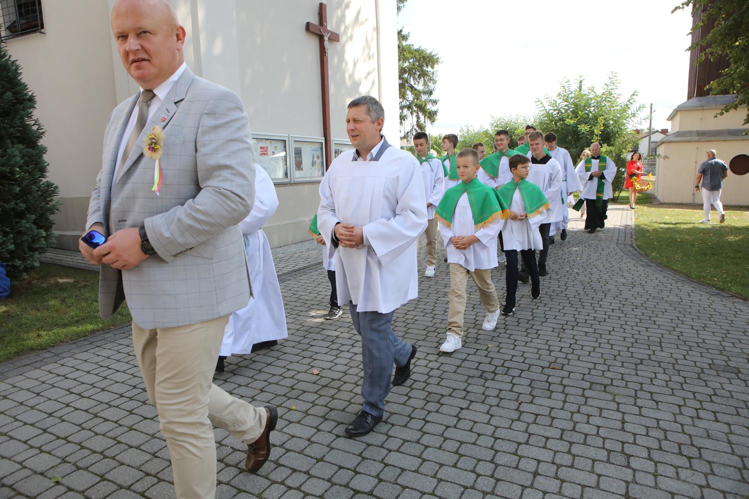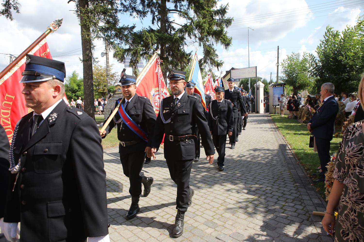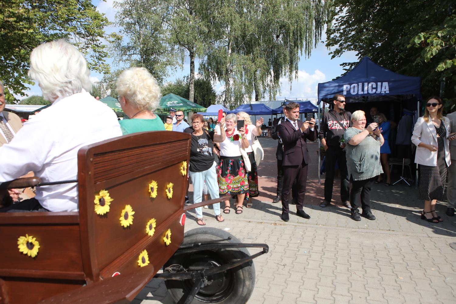 Na ceremoniał uczestnicy dotarli w korowodzie, z udziałem prawdziwych perełek, jakimi są dawne traktory, które rolnikom nadal służą w codziennej pracy. Wozami przyjechali goście i 13 delegacji wieńcowych, które prowadziła Młodzieżowa Orkiestra Dęta z Grabicy i liczne poczty sztandarowe.