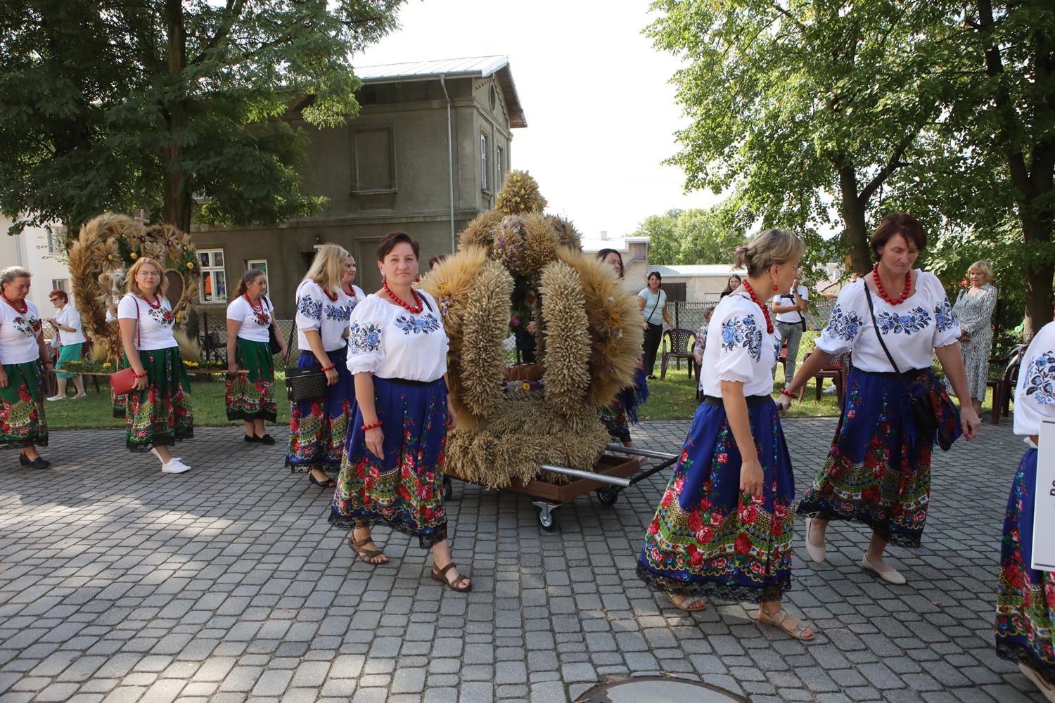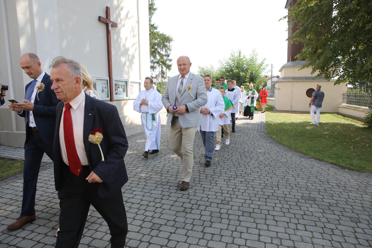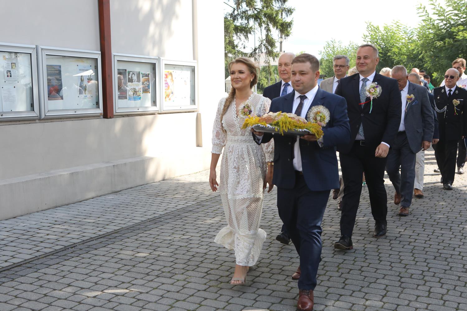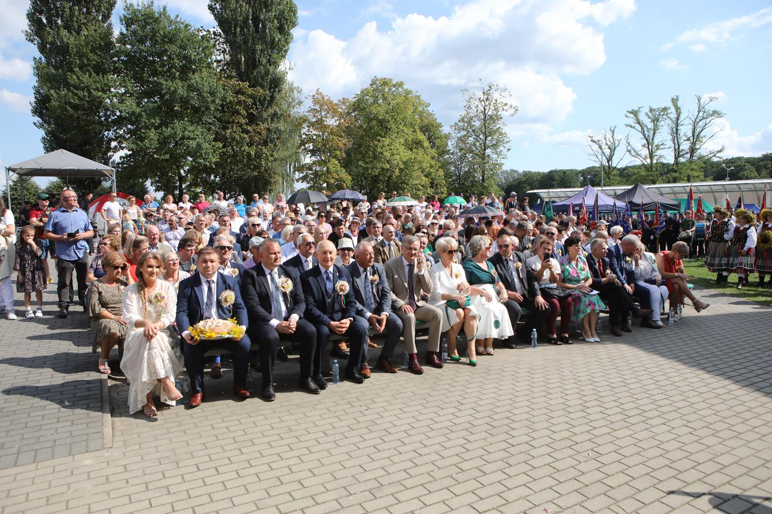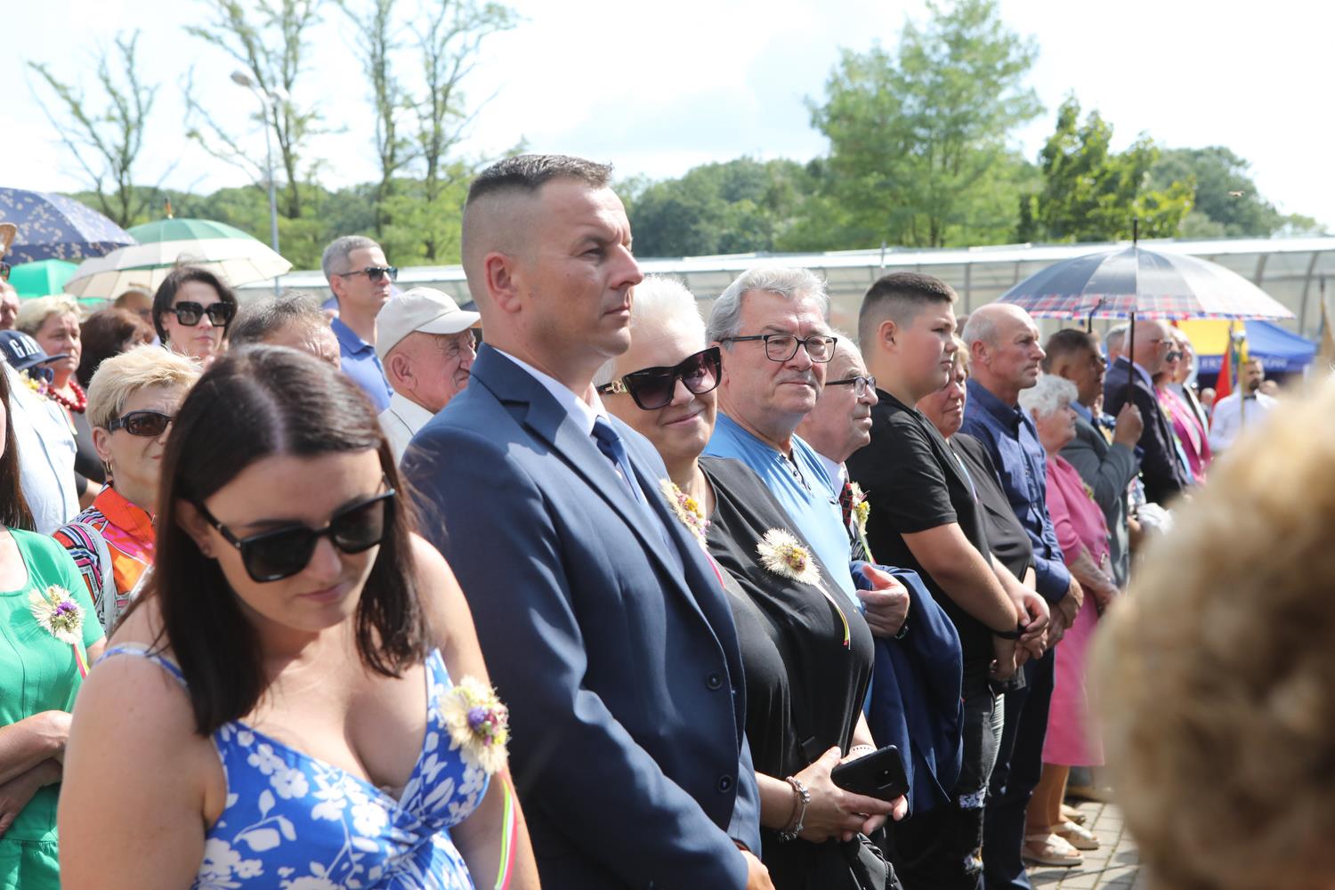 Na ceremoniał uczestnicy dotarli w korowodzie, z udziałem prawdziwych perełek, jakimi są dawne traktory, które rolnikom nadal służą w codziennej pracy. Wozami przyjechali goście i 13 delegacji wieńcowych, które prowadziła Młodzieżowa Orkiestra Dęta z Grabicy i liczne poczty sztandarowe.