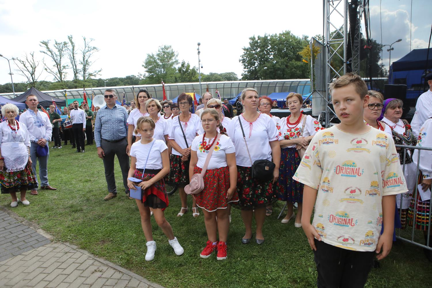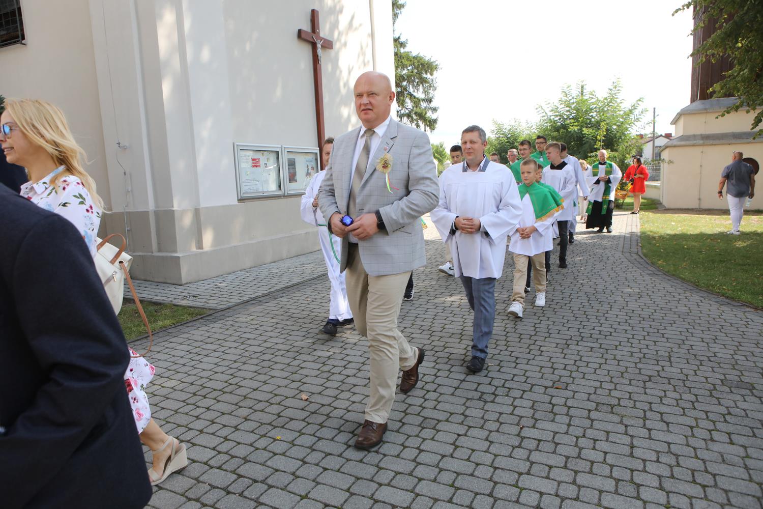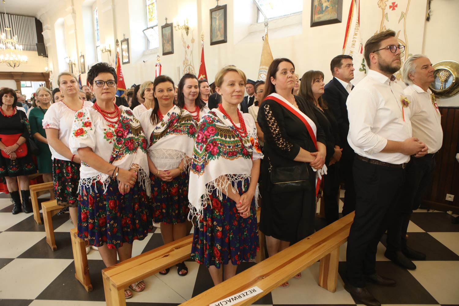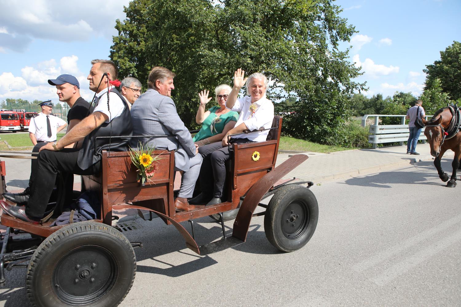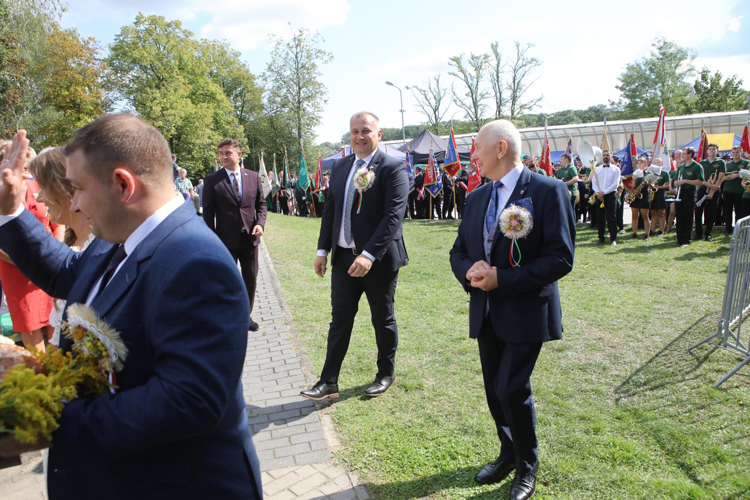 Na ceremoniał uczestnicy dotarli w korowodzie, z udziałem prawdziwych perełek, jakimi są dawne traktory, które rolnikom nadal służą w codziennej pracy. Wozami przyjechali goście i 13 delegacji wieńcowych, które prowadziła Młodzieżowa Orkiestra Dęta z Grabicy i liczne poczty sztandarowe.