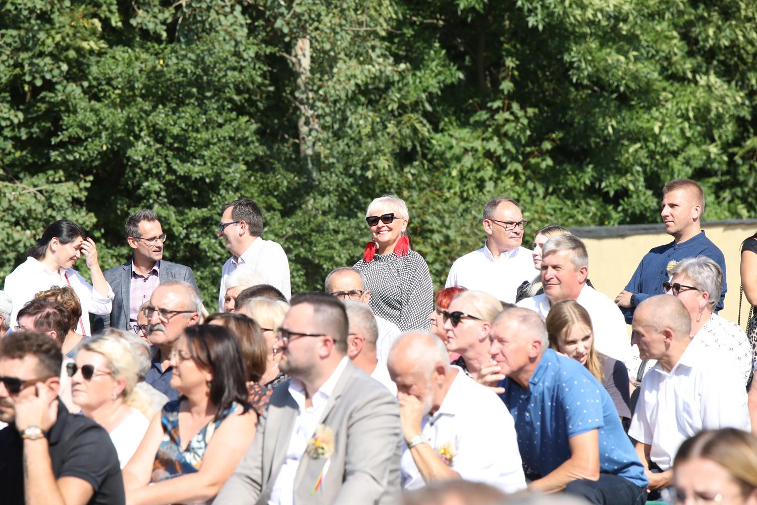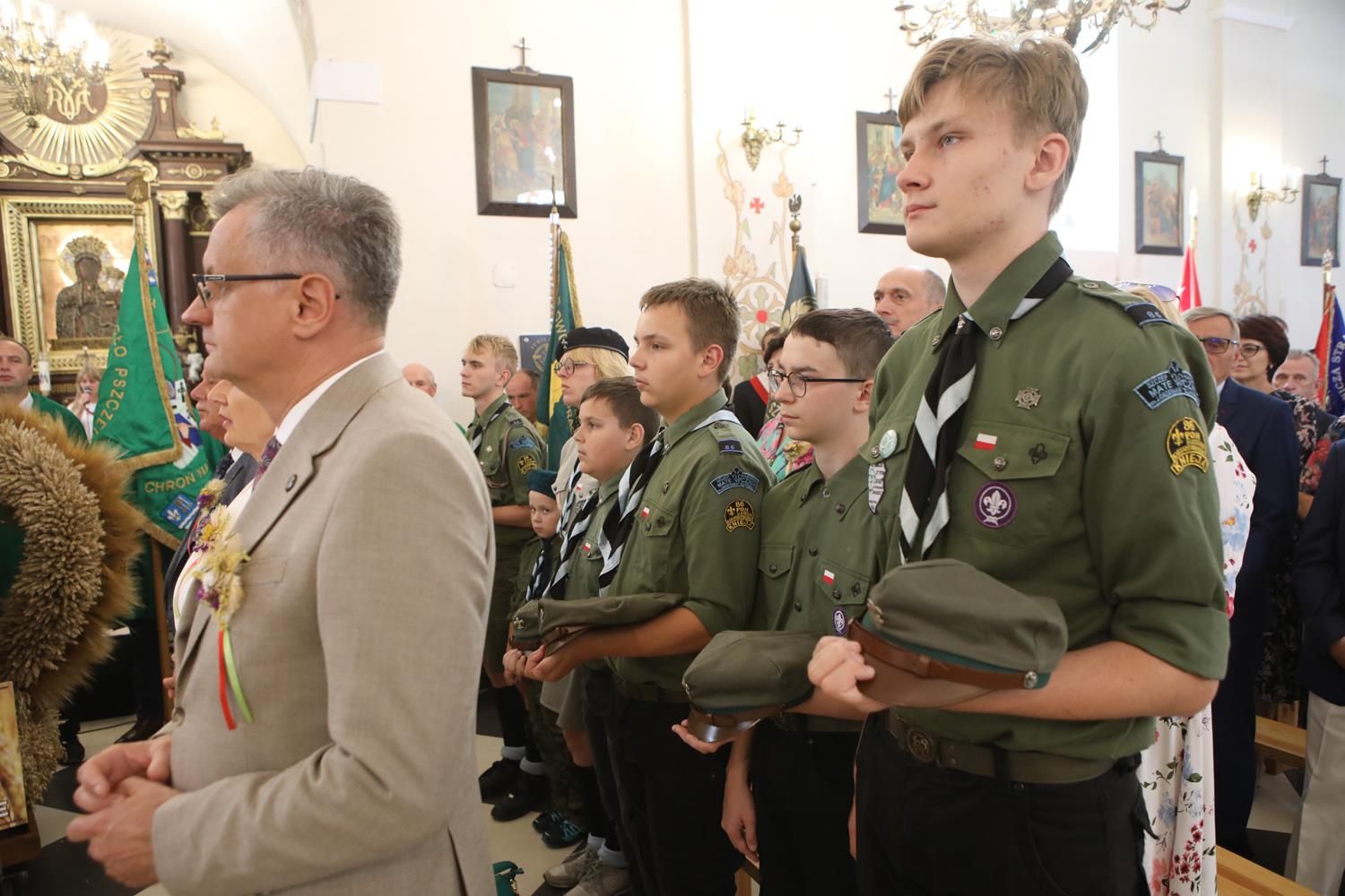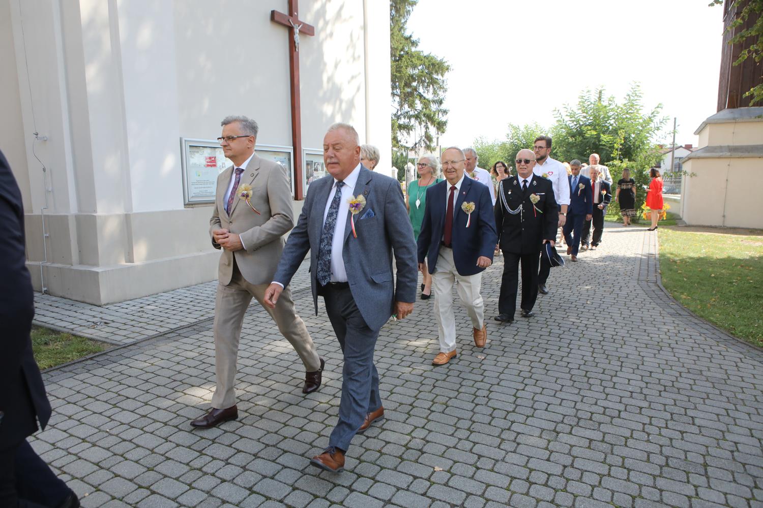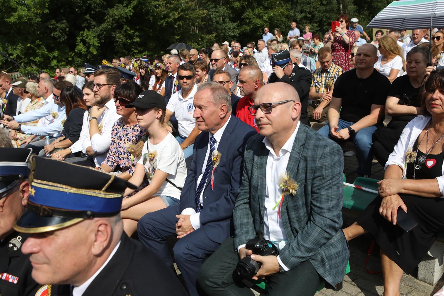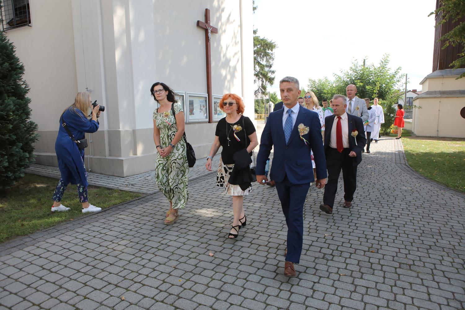 Na ceremoniał uczestnicy dotarli w korowodzie, z udziałem prawdziwych perełek, jakimi są dawne traktory, które rolnikom nadal służą w codziennej pracy. Wozami przyjechali goście i 13 delegacji wieńcowych, które prowadziła Młodzieżowa Orkiestra Dęta z Grabicy i liczne poczty sztandarowe.