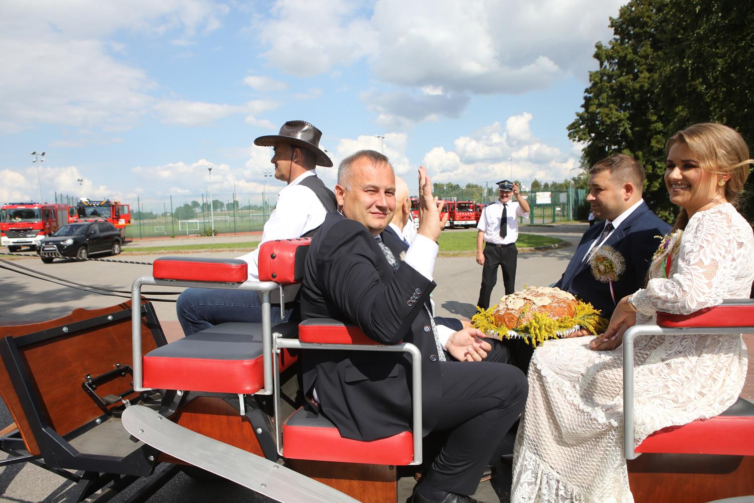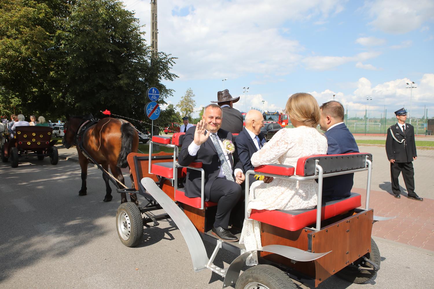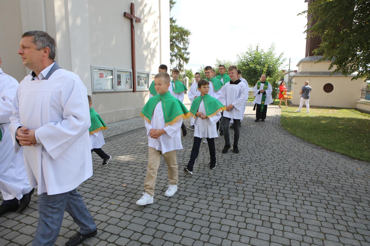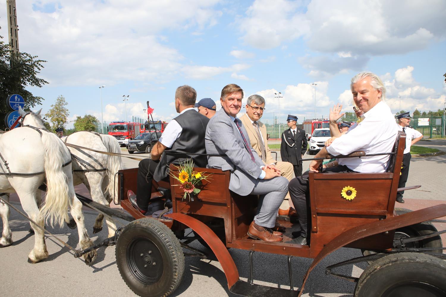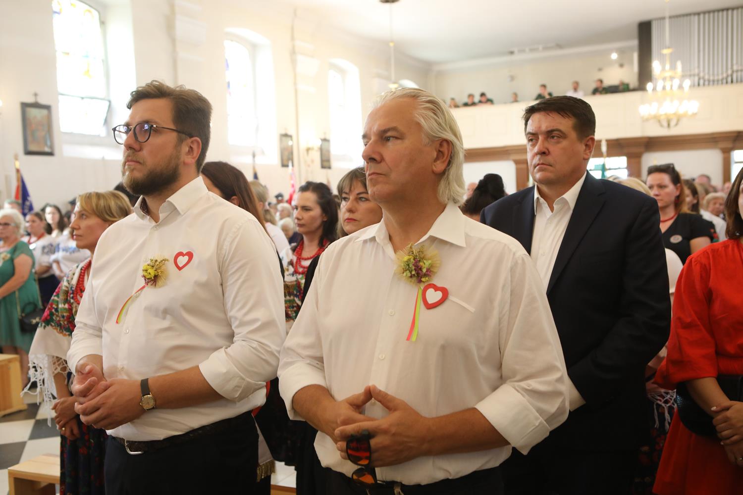 Na ceremoniał uczestnicy dotarli w korowodzie, z udziałem prawdziwych perełek, jakimi są dawne traktory, które rolnikom nadal służą w codziennej pracy. Wozami przyjechali goście i 13 delegacji wieńcowych, które prowadziła Młodzieżowa Orkiestra Dęta z Grabicy i liczne poczty sztandarowe.