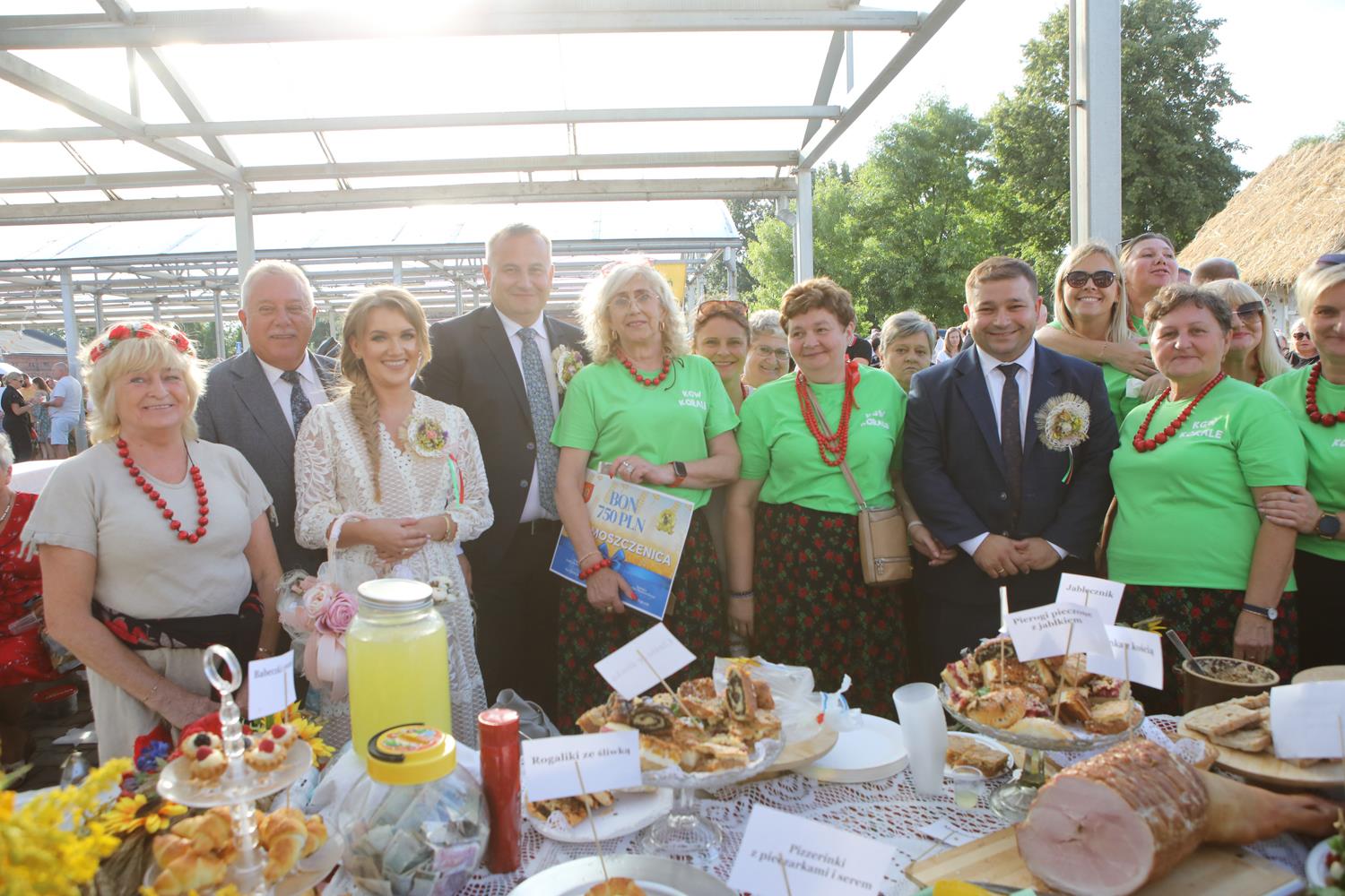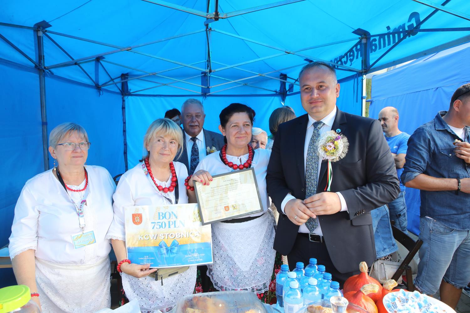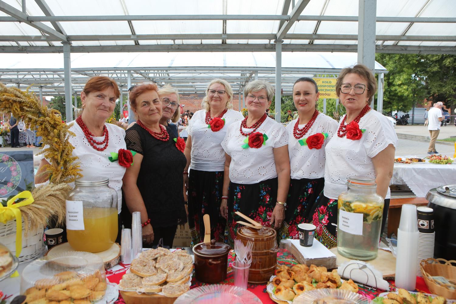 Aż 40 stoisk można było podziwiać na placu dożynkowym. Najliczniejszą grupą były Koła Gospodyń Wiejskich – KGW Komorniki z Gminy Wolbórz, KGW Glina z Gminy Wola Krzysztoporska, KGW Żądło z Gminy Grabica, KGW Niewierszyn – Babeczki z rodzynkiem z Gminy Aleksandrów, KGW Tomawa z Gminy Łęki Szlacheckie, KGW Straszów z Gminy Rozprza, KGW Stobnica z Gminy Ręczno i KGW Czarnocin, a także z terenu Gminy Moszczenica: KGW Białkowice, KGW Gajkowice, KGW Gazomia Nowa, KGW Jarosty, KGW Karlin, KGW Kiełczówka, KGW Kosów, KGW Korale z Moszczenicy, KGW Podolin, KGW Pomyków, KGW Raków Duży, KGW Rękoraj, KGW Srock, KGW Sierosław. Obok nich pysznościami kusili lokalni producenci marki „Powiat Piotrkowski – Prosto z serca”, Biuro Powiatowe ARMiR w Piotrkowie Tryb., Rada Powiatowa Izby Rolniczej Województwa Łódzkiego w Piotrkowie Trybunalskim, KRUS, PCPR w Piotrkowie Trybunalskim i Dom Pomocy Społecznej w Łochyńsku oraz szkół prowadzonych przez powiat w Bujnach, Czarnocinie, Sulejowie i Wolborzu.