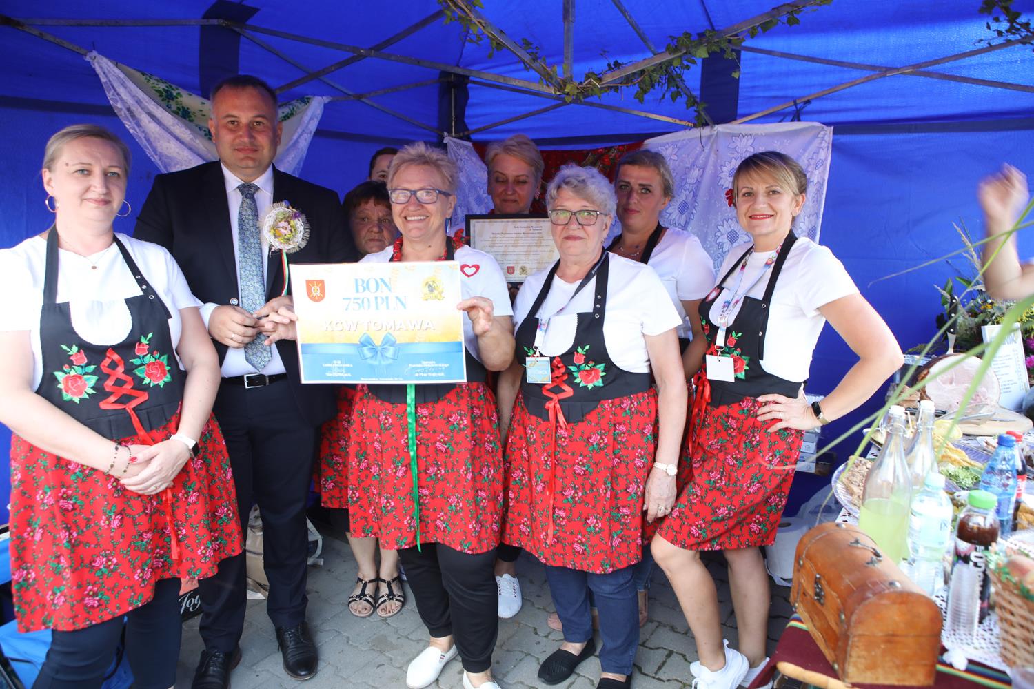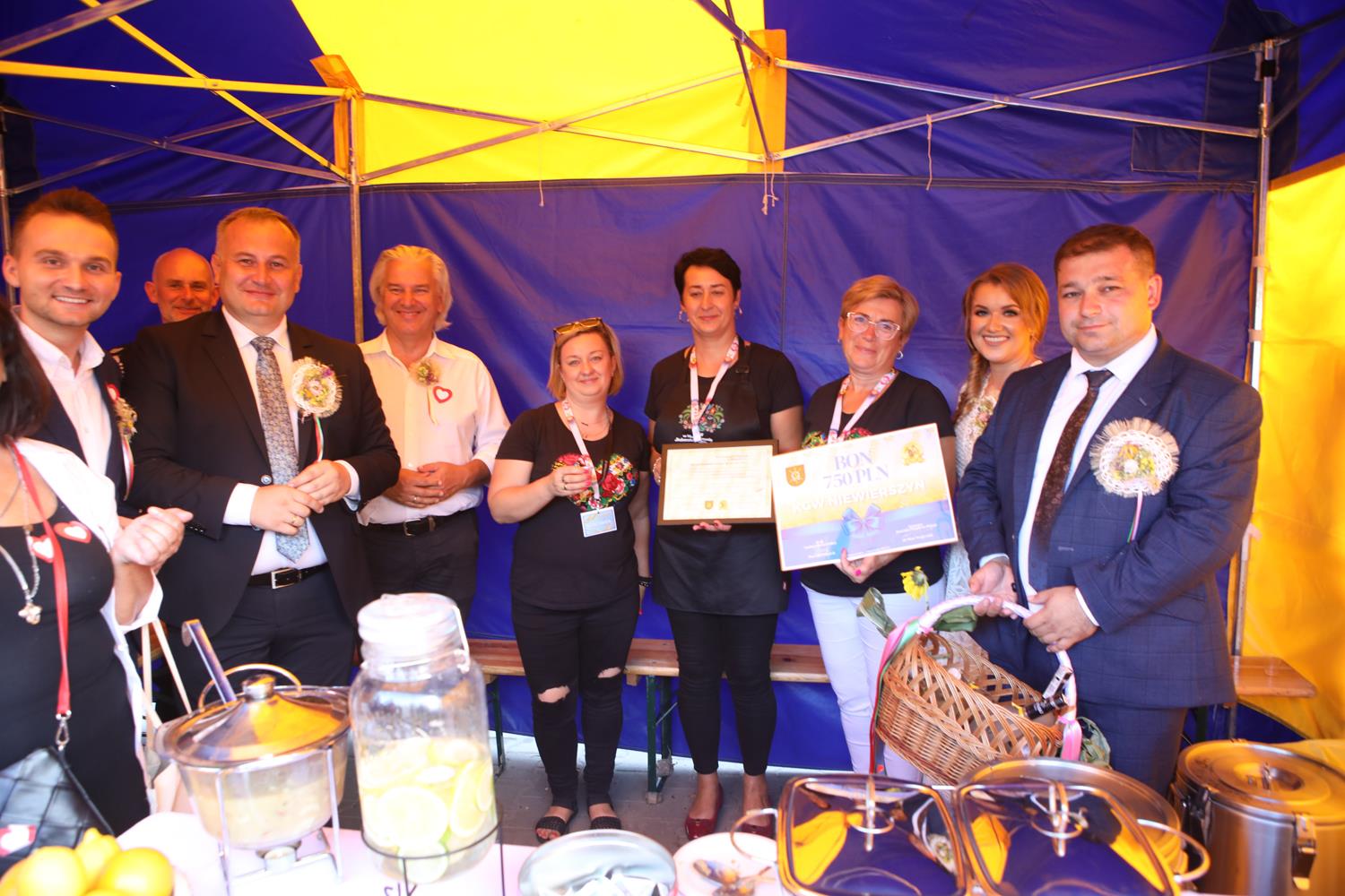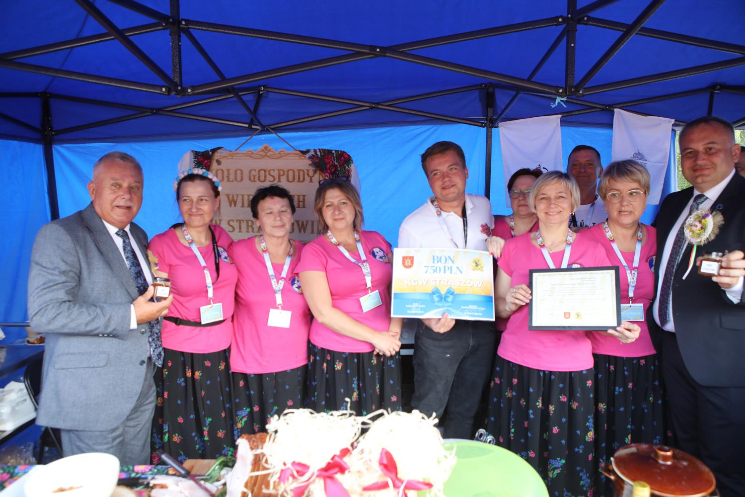 Aż 40 stoisk można było podziwiać na placu dożynkowym. Najliczniejszą grupą były Koła Gospodyń Wiejskich – KGW Komorniki z Gminy Wolbórz, KGW Glina z Gminy Wola Krzysztoporska, KGW Żądło z Gminy Grabica, KGW Niewierszyn – Babeczki z rodzynkiem z Gminy Aleksandrów, KGW Tomawa z Gminy Łęki Szlacheckie, KGW Straszów z Gminy Rozprza, KGW Stobnica z Gminy Ręczno i KGW Czarnocin, a także z terenu Gminy Moszczenica: KGW Białkowice, KGW Gajkowice, KGW Gazomia Nowa, KGW Jarosty, KGW Karlin, KGW Kiełczówka, KGW Kosów, KGW Korale z Moszczenicy, KGW Podolin, KGW Pomyków, KGW Raków Duży, KGW Rękoraj, KGW Srock, KGW Sierosław. Obok nich pysznościami kusili lokalni producenci marki „Powiat Piotrkowski – Prosto z serca”, Biuro Powiatowe ARMiR w Piotrkowie Tryb., Rada Powiatowa Izby Rolniczej Województwa Łódzkiego w Piotrkowie Trybunalskim, KRUS, PCPR w Piotrkowie Trybunalskim i Dom Pomocy Społecznej w Łochyńsku oraz szkół prowadzonych przez powiat w Bujnach, Czarnocinie, Sulejowie i Wolborzu.