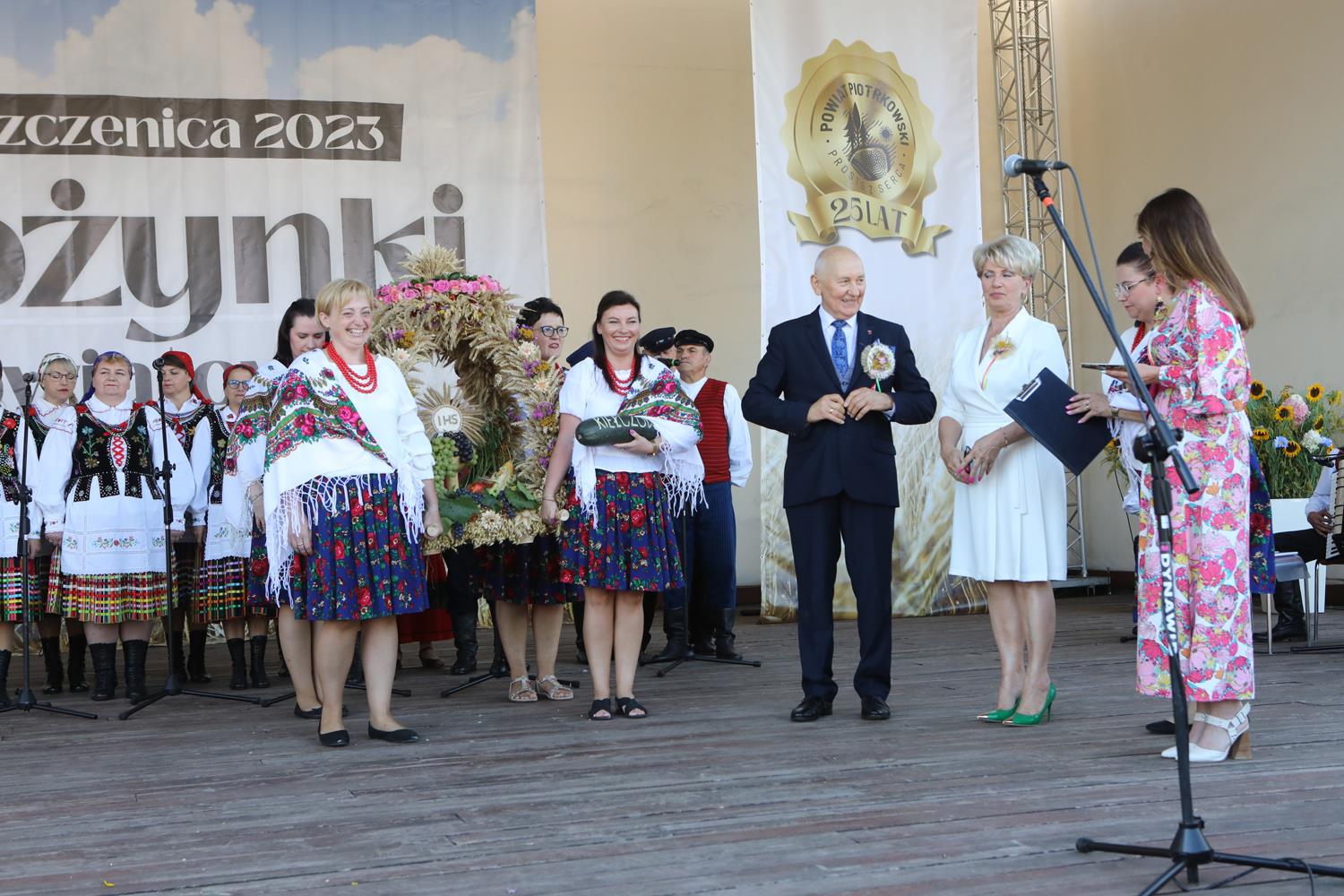 Wszystkim rolnikom Ziemi Piotrkowskiej podziękowano za ich całoroczną pracę w gospodarstwach. Starosta wraz Przewodniczącym Rady Powiatu Bernardem Matyszewskim i Wicestarostą Dariuszem Magaczem od Sołectwa Barkowice odebrali dożynkowy wieniec, a dla Wójta Gminy i Przewodniczącej Rady Gminy Małgorzaty Domańskiej wieniec przygotowało Koło Gospodyń Wiejskich z Kiełczówki.