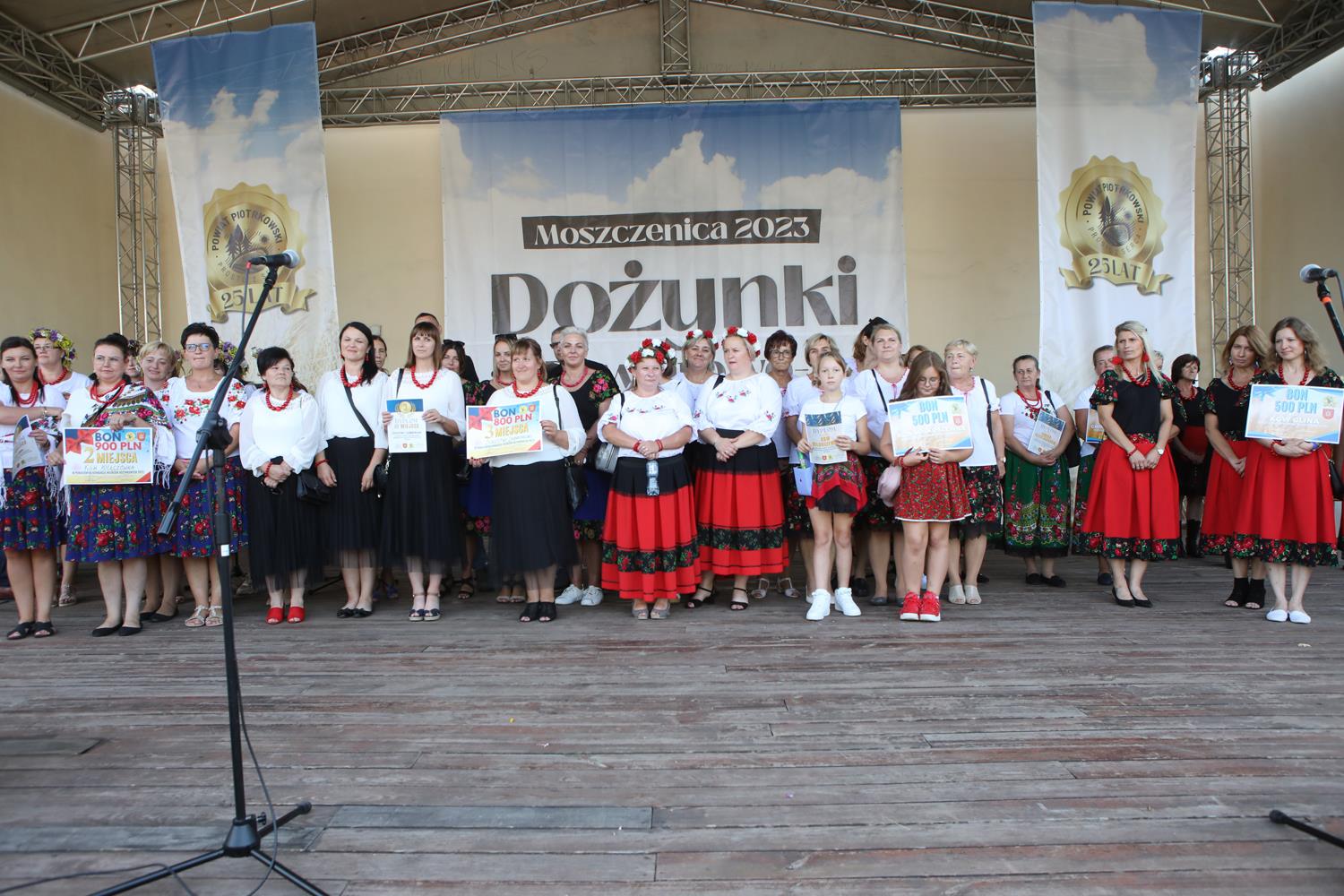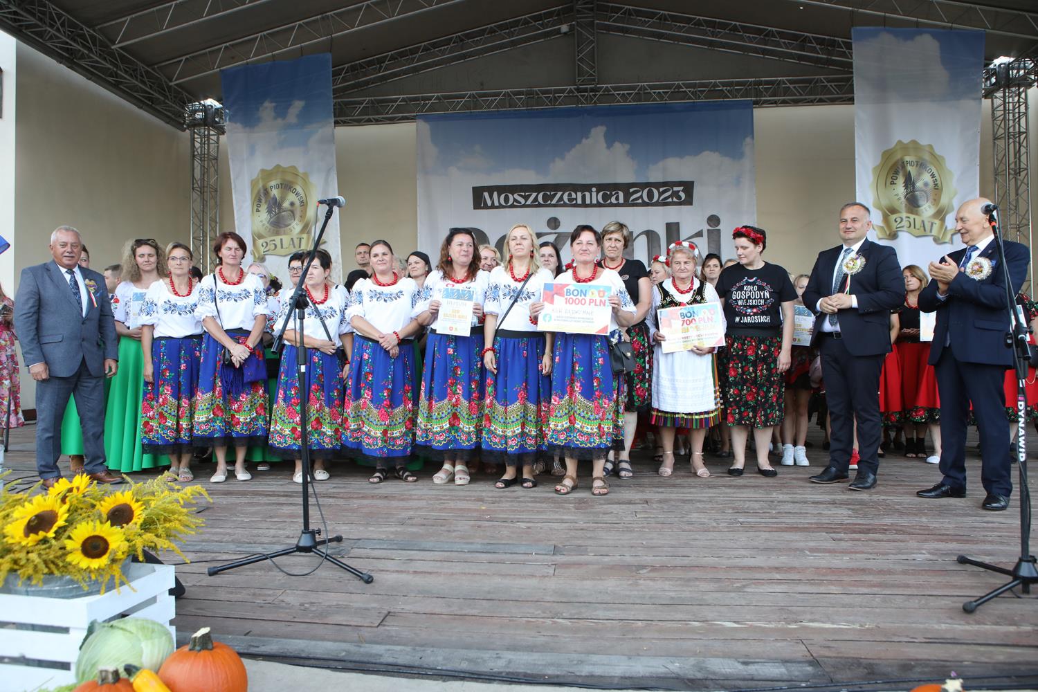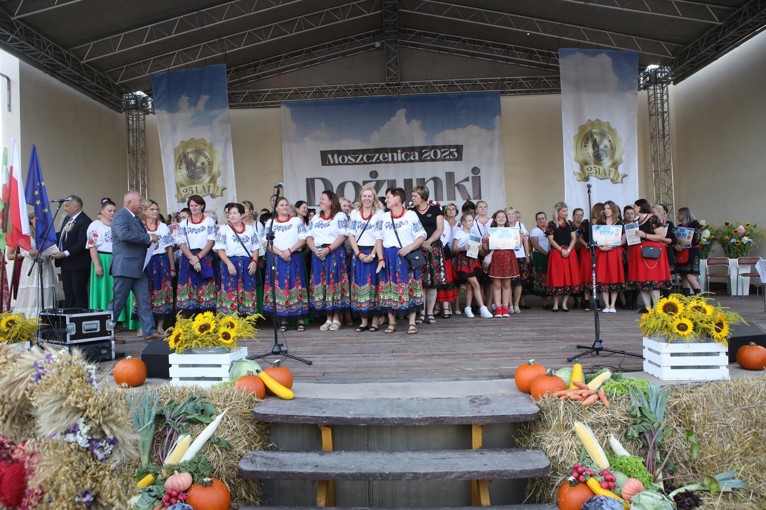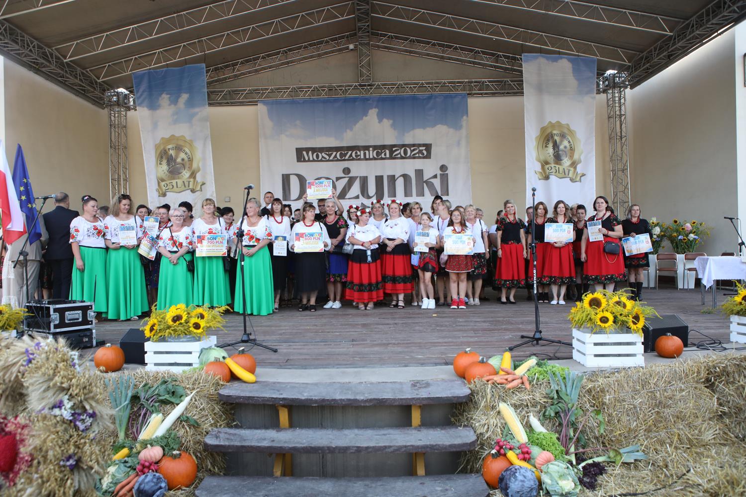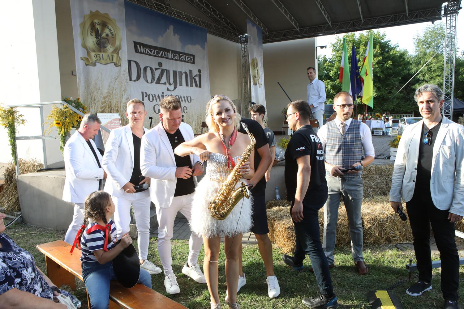 Jak na rolnicze święto plonów przystało na dożynkowej scenie wystąpiły ludowe zespoły: Koraliki z Czarnocina, Choberki z Grabicy, Zespół Ludowy Piotrkowianie, Ludowa Biesiada z Czarnocina, Zespół Ludowy Piliczanie, Kapela Tkacze z Moszczenicy i Kapela Tolka Gałązki. Prawdziwe tłumy przyciągnęły do Moszczenicy gwiazdy koncertu z okazji 25-lecia Powiatu Piotrkowskiego – Zespół MiG, Red Dance i BARANOVSKI, a dyskotekę dla uczestników dożynek poprowadził Zespół METIUS.(po)
