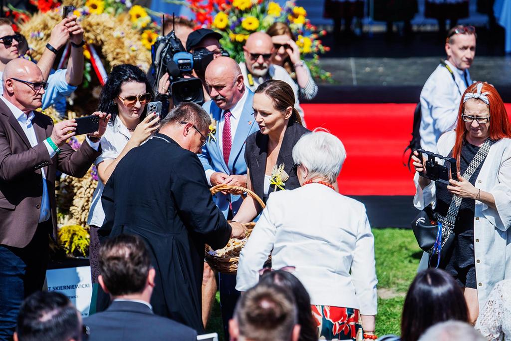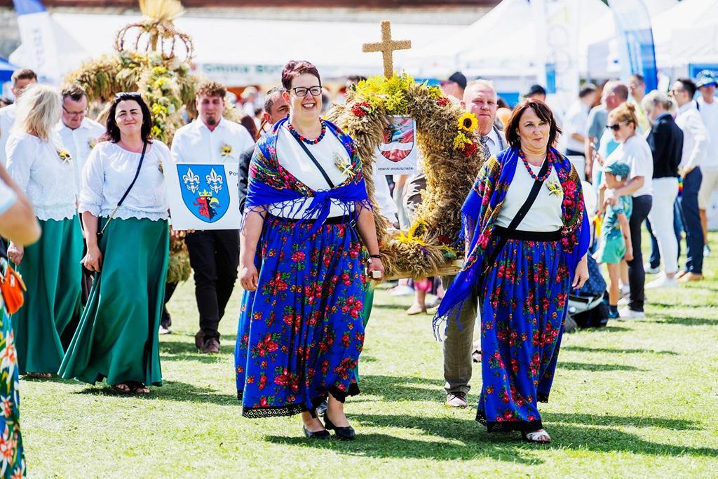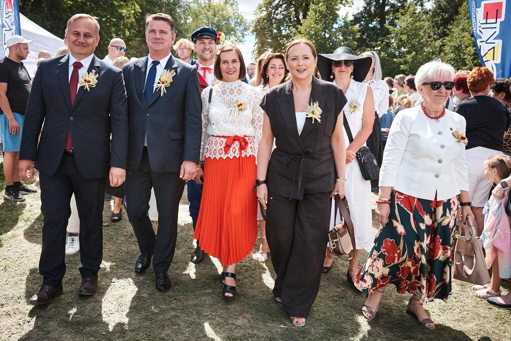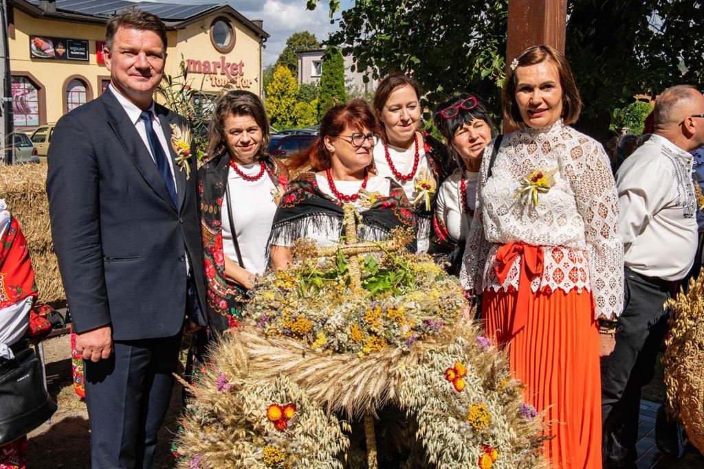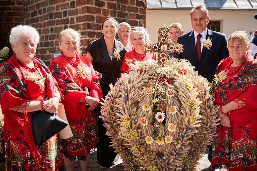 Drugim najważniejszym punktem dożynek jest przekazanie wieńca dożynkowego – symbolu zakończonych żniw. Odebrał go cały zarząd: marszałek Joanna Skrzydlewska, wicemarszałkowie Agnieszka Ryś i Piotr Wojtysiak, oraz członkowie zarządu województwa: Artur Bagieński i Artur Ostrowski.