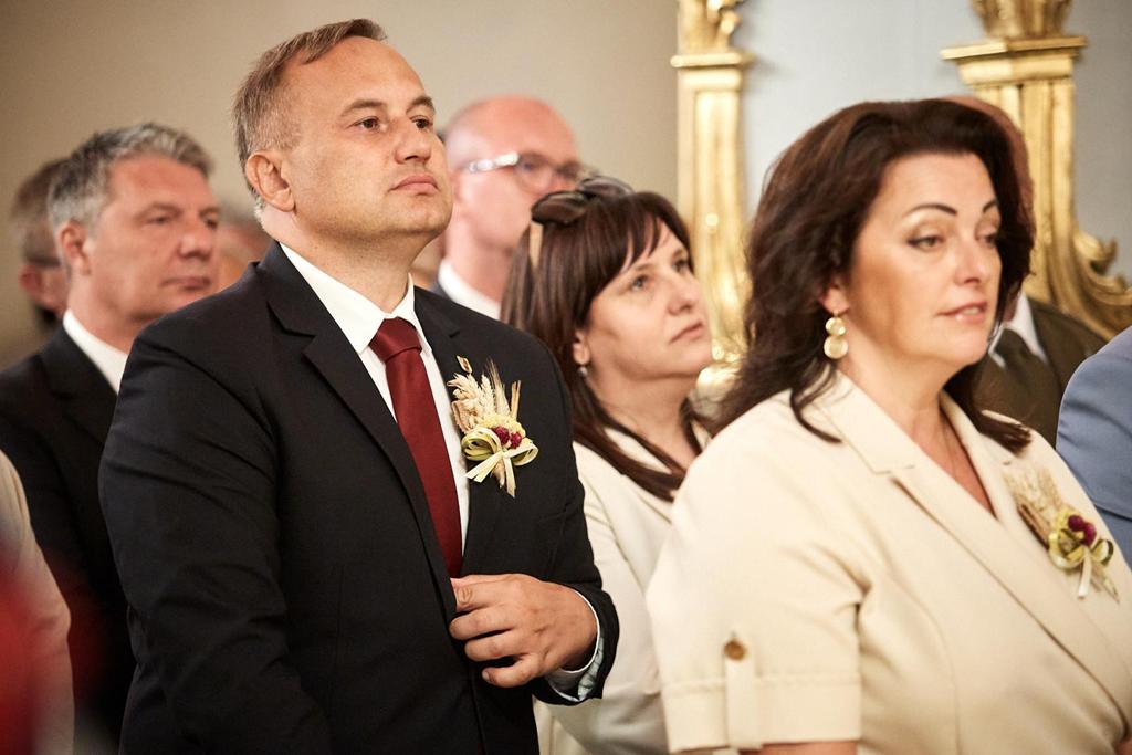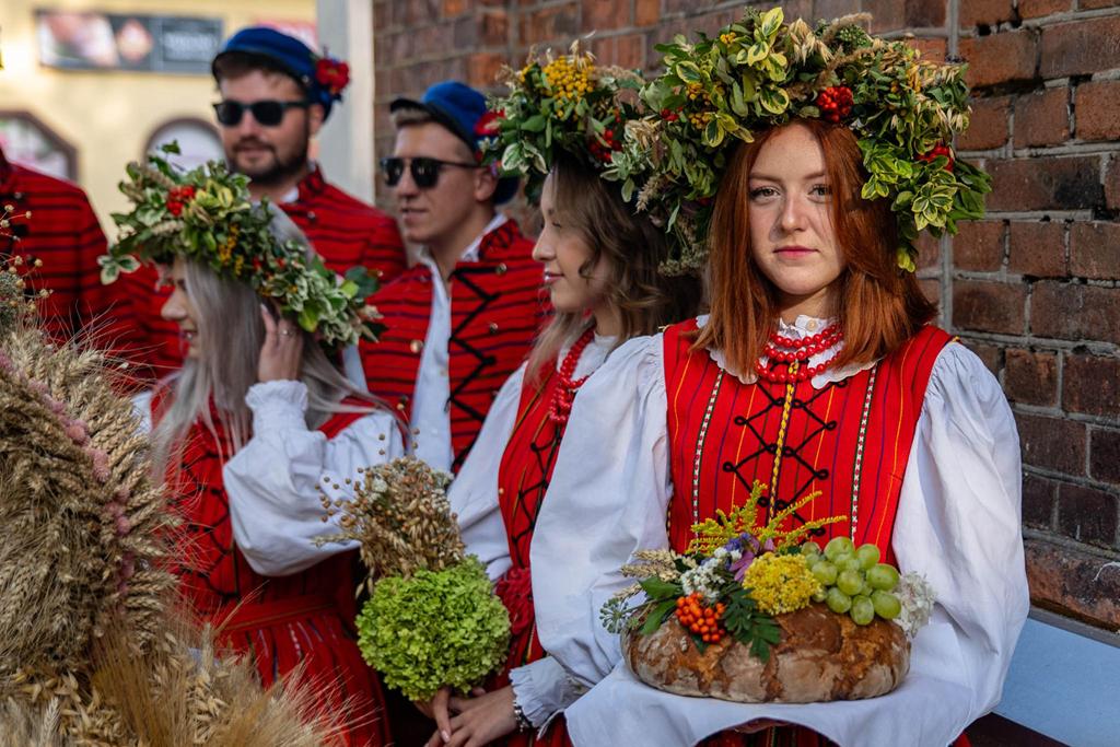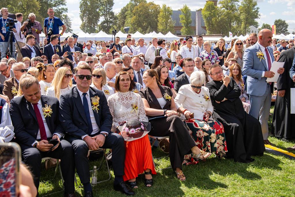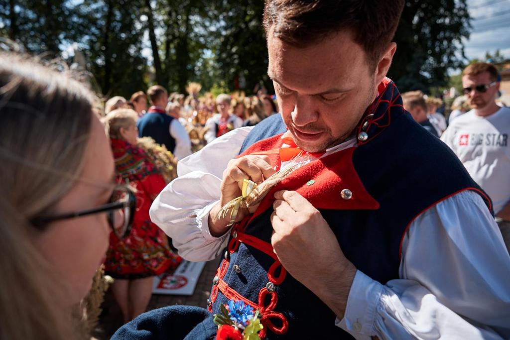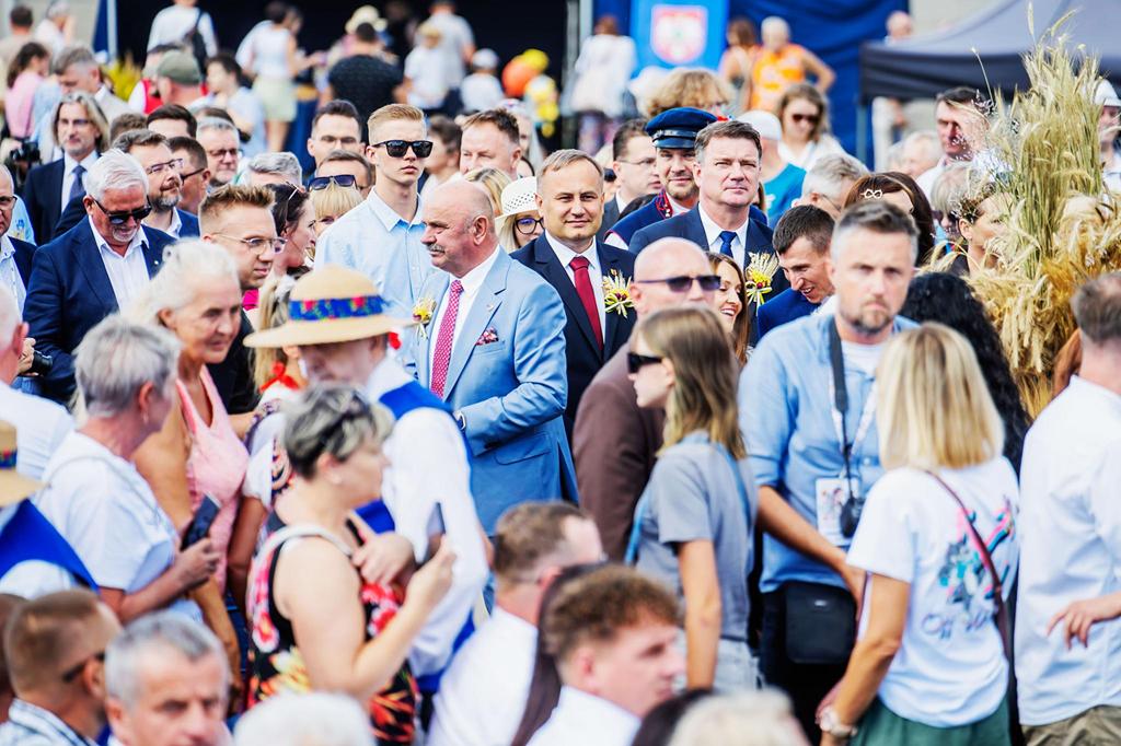 Drugim najważniejszym punktem dożynek jest przekazanie wieńca dożynkowego – symbolu zakończonych żniw. Odebrał go cały zarząd: marszałek Joanna Skrzydlewska, wicemarszałkowie Agnieszka Ryś i Piotr Wojtysiak, oraz członkowie zarządu województwa: Artur Bagieński i Artur Ostrowski.