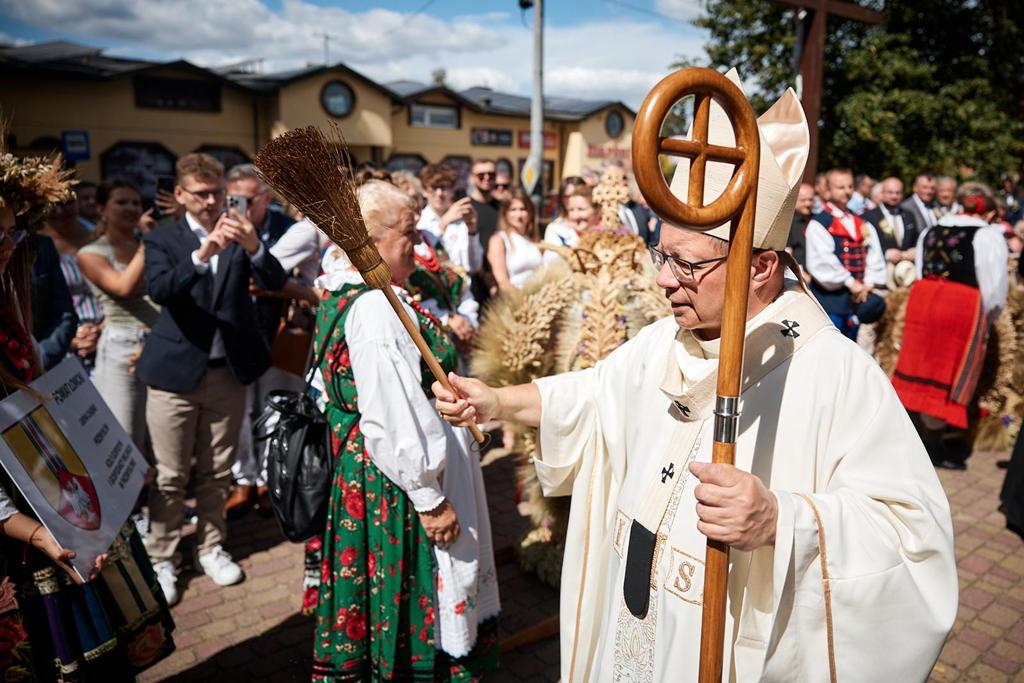 Uroczystość rozpoczęła msza święta dziękczynna w kościele pw. św. Jana Chrzciciela, której przewodniczył kardynał Grzegorz Ryś. – To wspaniałe widzieć te wszystkie wieńce dożynkowe, wchodząc do tego kościoła – mówi kardynał Grzegorz Ryś. – To naprawdę piękne zobaczyć owoc ludzkiej pracy. Zobaczyć, co zrodziła ziemia dzięki pracy, intelektowi i wysiłkowi człowieka. To, co produkujecie, jest coraz lepsze – coraz smaczniejsze i coraz zdrowsze. Ileż trzeba włożyć trudu, by te wszystkie produkty były tak doskonałe. I to się naprawdę dzieje! A jaki człowiek wyrasta z tej pracy? Jakie staje się ludzkie serce? – mówił do wiernych podczas kazania.