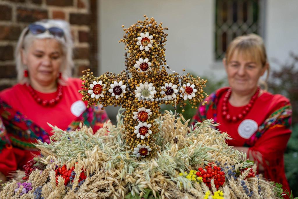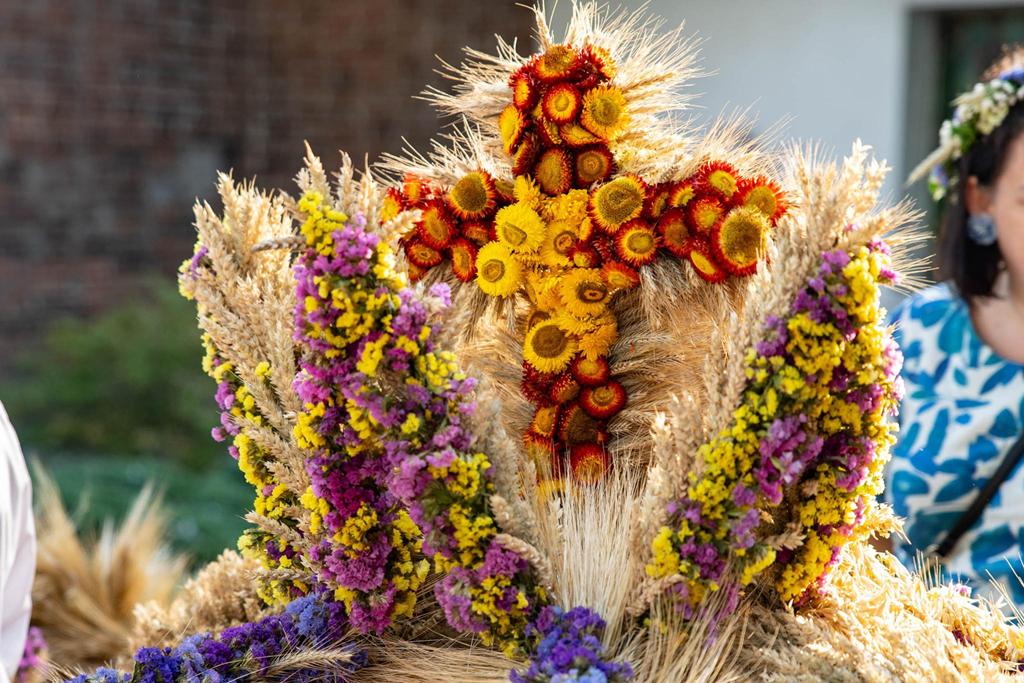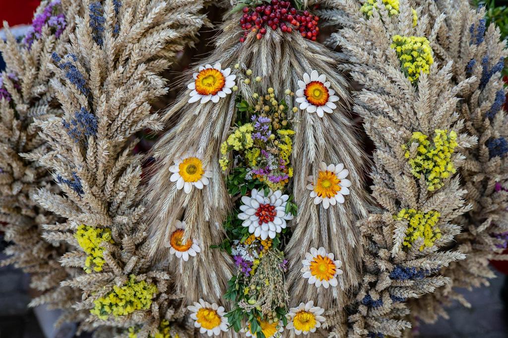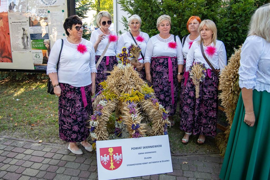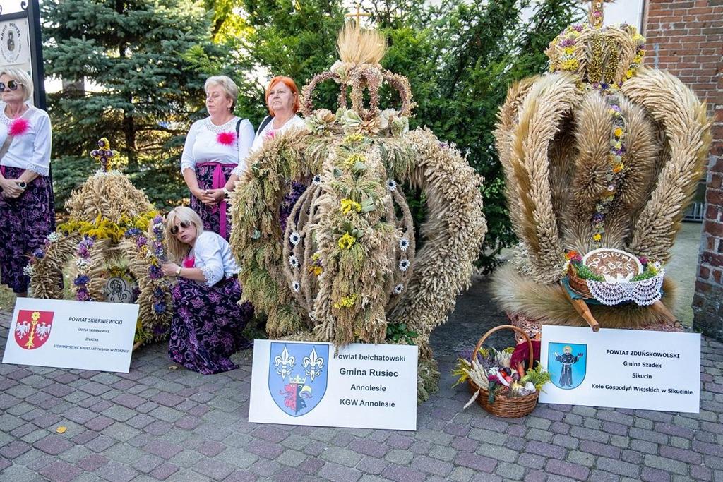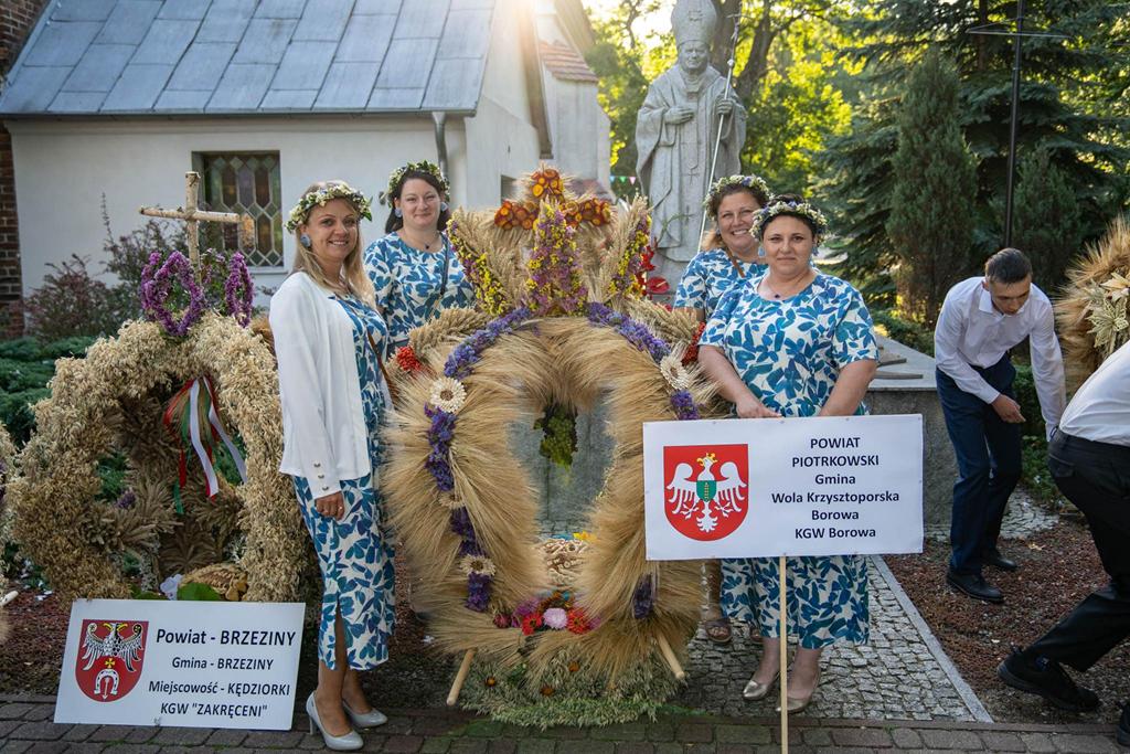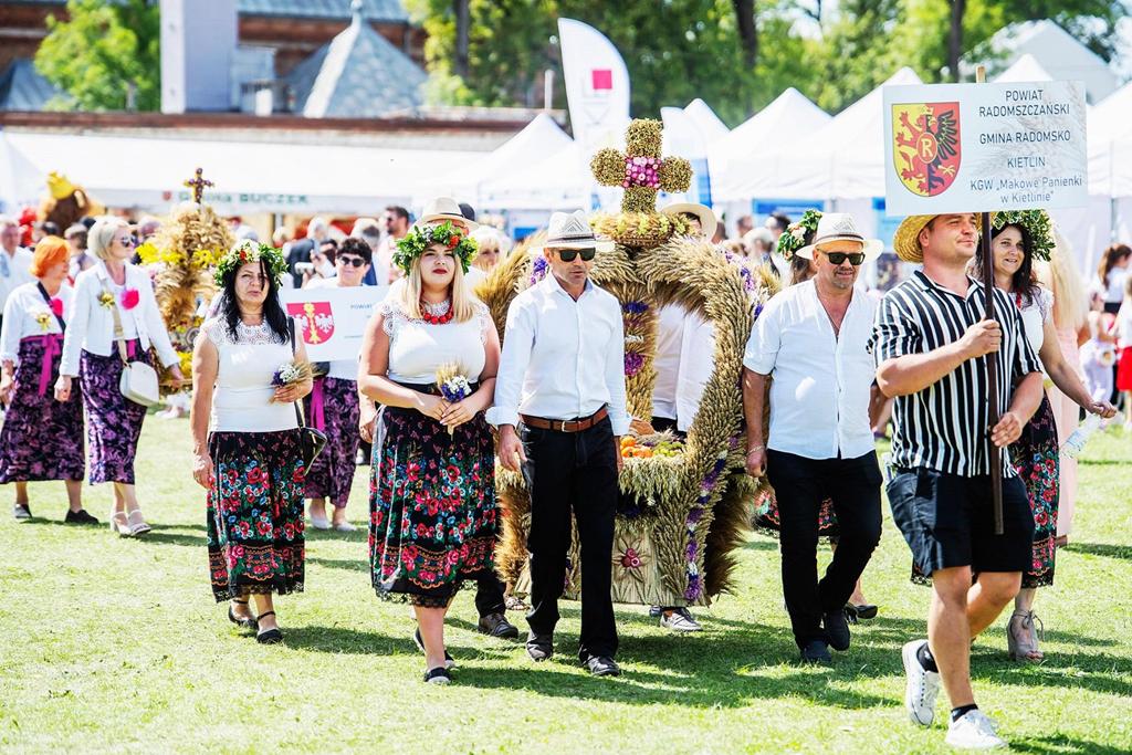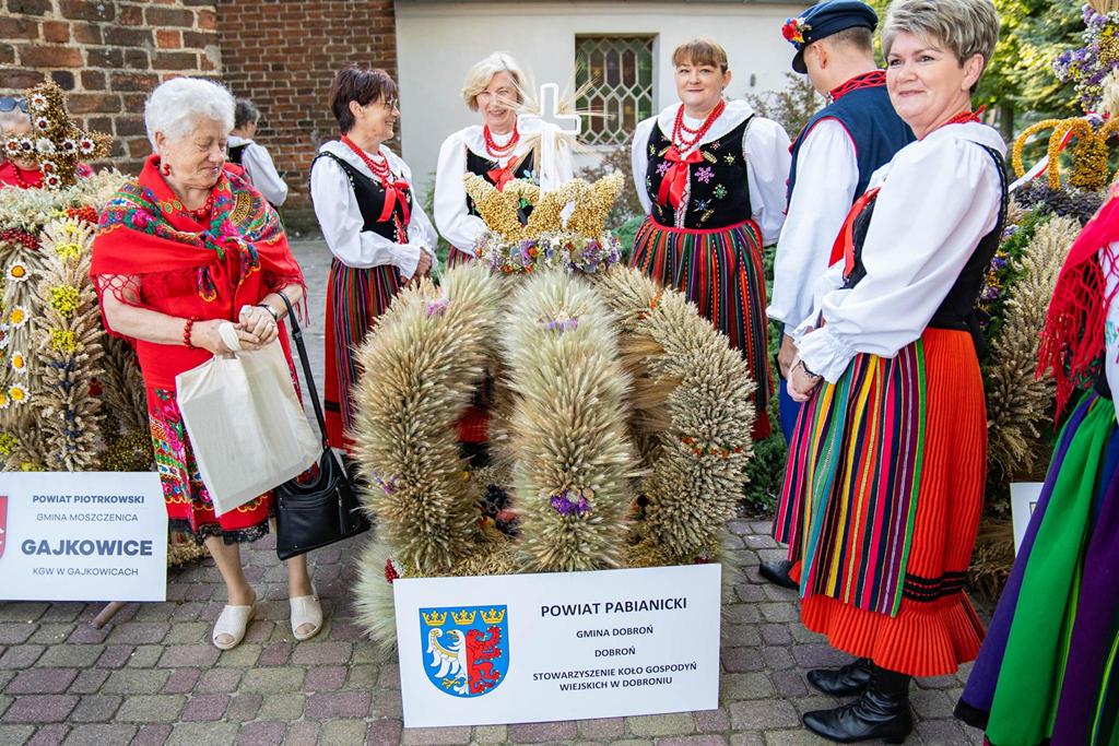 Po mszy metropolita poświęcił 24 wieńce dożynkowe przygotowane przez panie z KGW praktycznie z każdego powiatu. To one były główną ozdobą korowodu dożynkowego, który po nabożeństwie przeszedł pod scenę obrzędową. Rytm nadawała Orkiestra Dęta z Buczku, za którą szły m.in. reprezentacje powiatów z Łódzkiego, dziecięcy zespół Buczkowiacy oraz mieszkańcy regionu, którzy przyjechali na święto plonów.