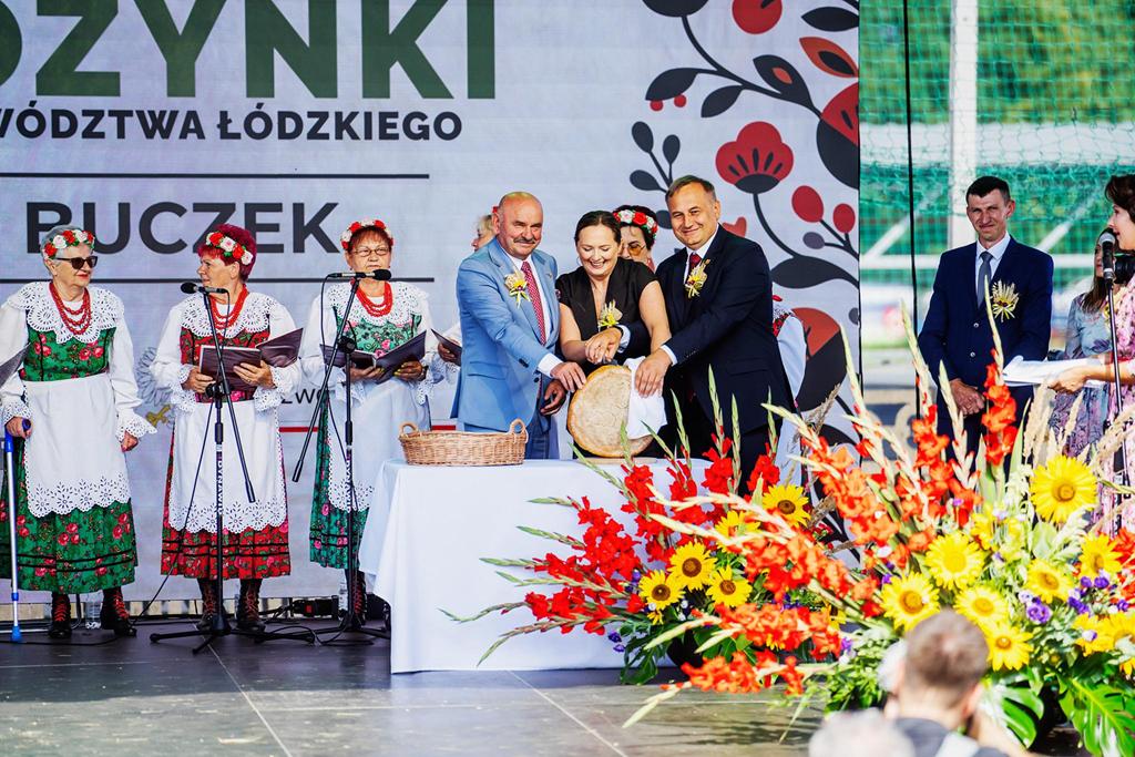 Część obrzędową rozpoczął przyśpiewkami ludowymi Zespół Śpiewaczy „Sędziejowianki”. Później starostowie tegorocznych dożynek, rolnicy z gminy Buczek, Agnieszka Węglewska i Paweł Michalak przekazali na ręce marszałek Joanny Skrzydlewskiej bochen dożynkowego chleba upieczonego z mąki z tegorocznych zbóż. – Obiecuję, że będę go dzieliła sprawiedliwie, aby w żadnym domu i na żadnym stole go nie zabrakło – zapewniła, zgodnie z dożynkową tradycją marszałek Skrzydlewska i razem z całym zarządem oraz Bronisławem Węglewskim, wójtem gminy Buczek, częstowała chlebem uczestników święta plonów.