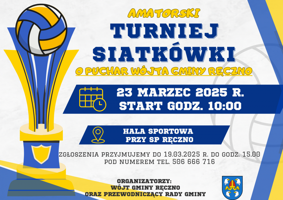 Mieszkańcy gminy Ręczno i okolic przygotowują się na sportowe wydarzenie, które dostarczy niezapomnianych emocji. W najbliższą niedzielę, 23 marca, o godzinie 10:00 w hali sportowej przy Szkole Podstawowej w Ręcznie rozpocznie się Amatorski Turniej Siatkówki o Puchar Wójta Gminy Ręczno.