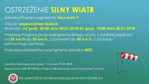 Według Instytutu, we wtorek od północy do około południa, prognozuje się wystąpienie silnego wiatru o średniej prędkości od 25 km/h do 35 km/h, z porywami do 85 km/h, z zachodu i północnego zachodu. Prawdopodobieństwo wystąpienia zjawiska: 85%.