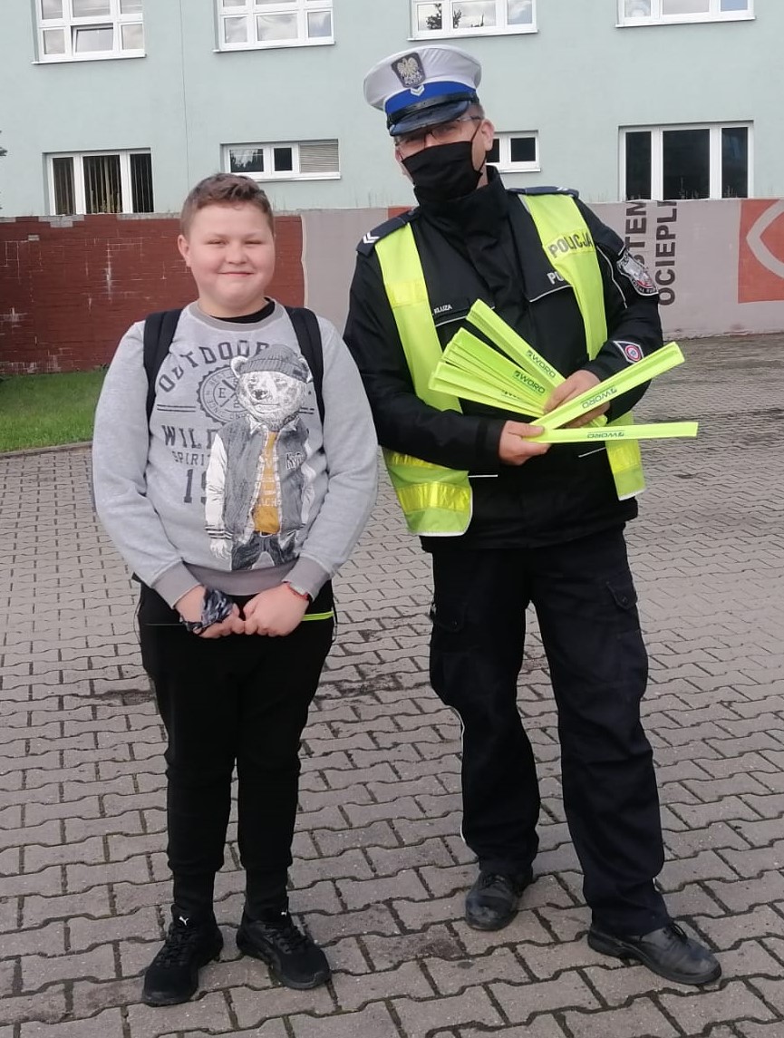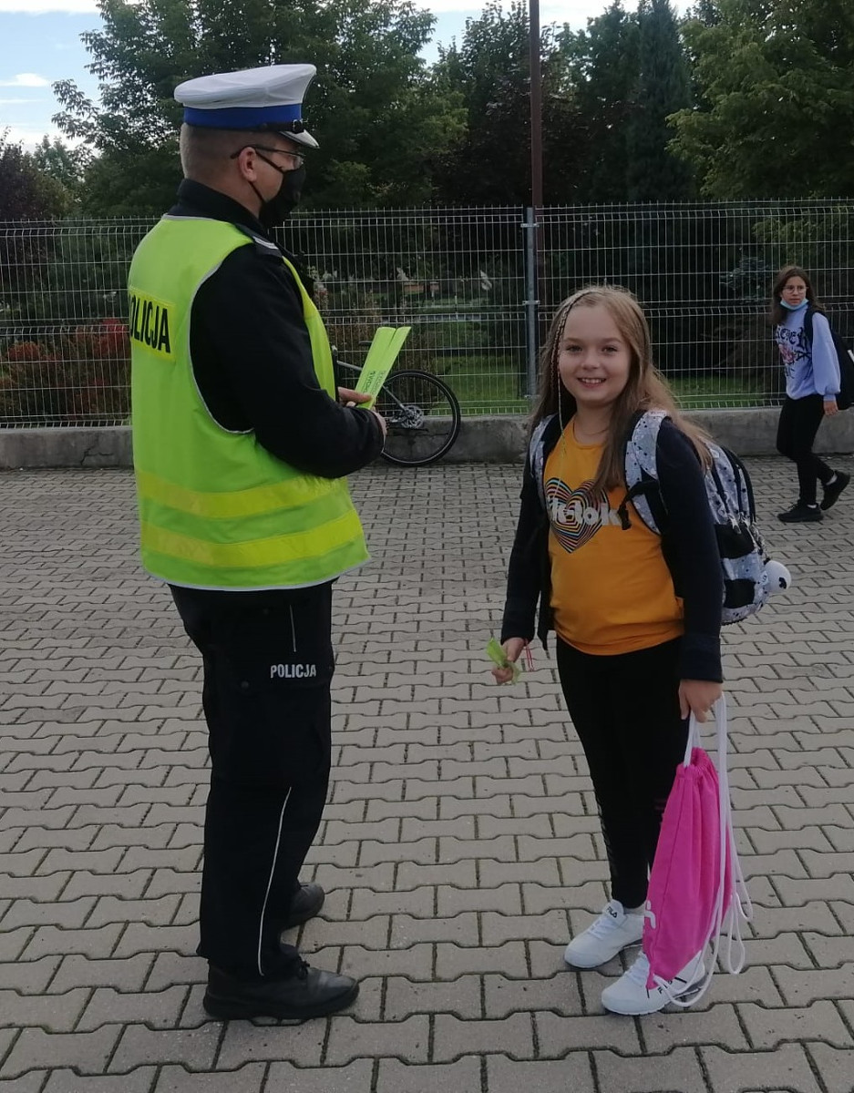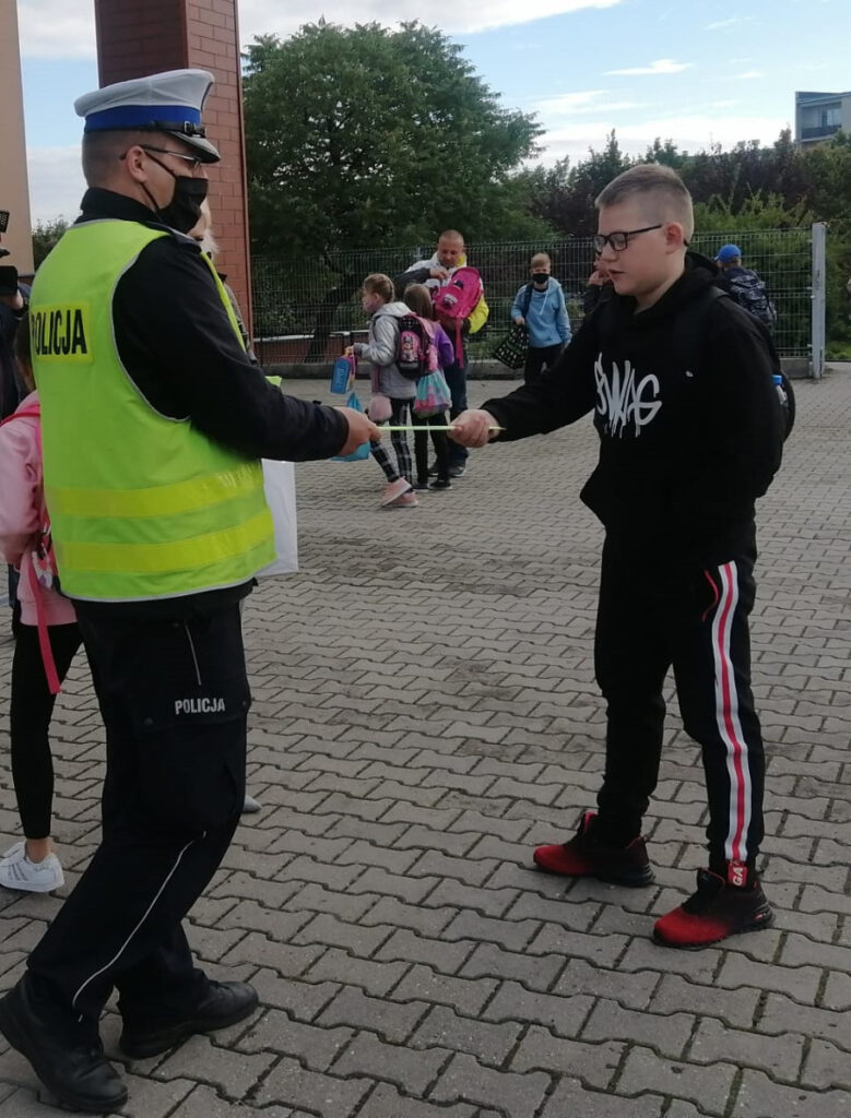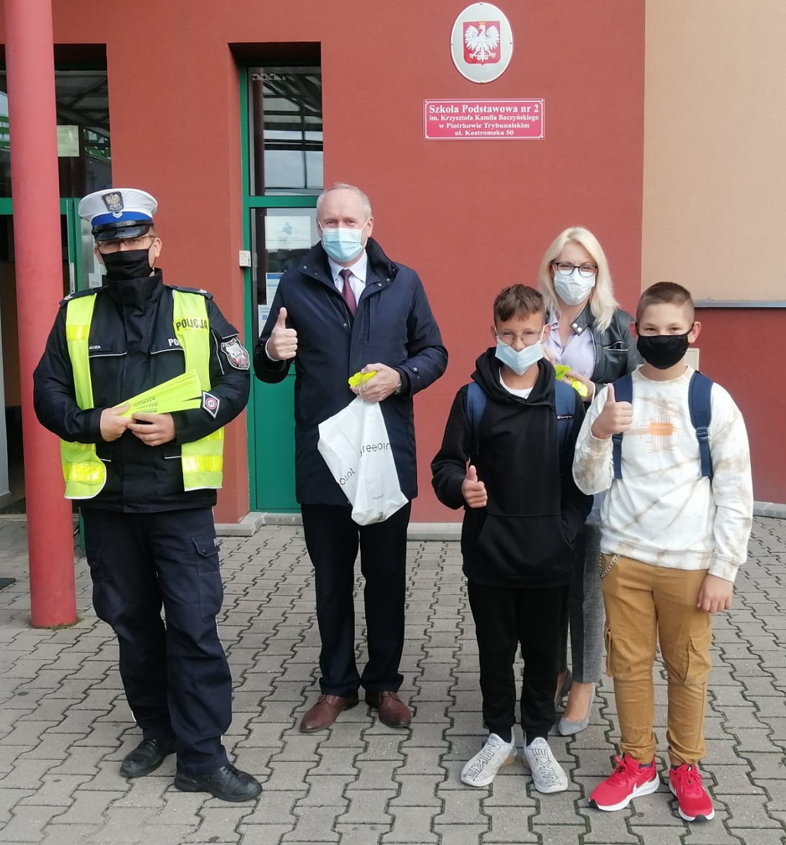 W ramach akcji ,, Bezpieczna droga do szkoły”policjanci przypominają o zasadach bezpiecznego poruszania się po drogach, szczególnie w rejonach szkół i przedszkoli, gdzie często panuje wzmożone natężenie ruchu pojazdów i pieszych. Współdziałając z przedstawicielami piotrkowskiego WORD, mundurowi czekali na uczniów przed jedną z podstawówek by porozmawiać o bezpieczeństwie i przekazać uczniom oraz ich rodzicom elementy odblaskowe.