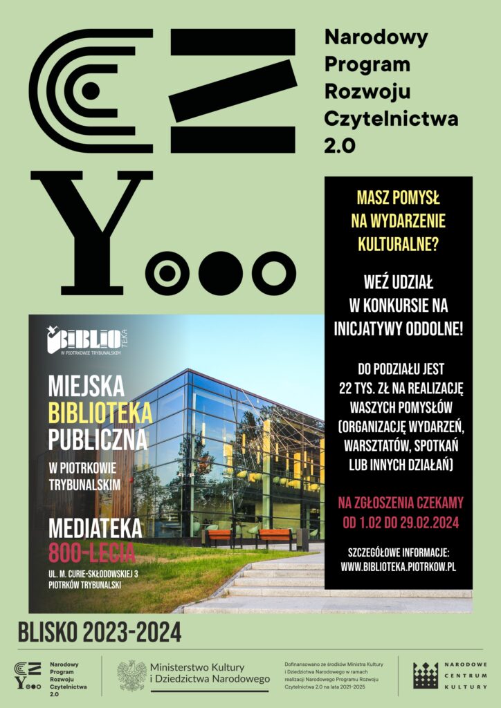 Miejska Biblioteka Publiczna im. Adama Próchnika w Piotrkowie Trybunalskim ogłasza konkurs na Inicjatywy Oddolne. Na swój projekt można otrzymać dofinansowanie. Pula środków finansowych to 22 000zł, a wkład własny nie jest wymagany.