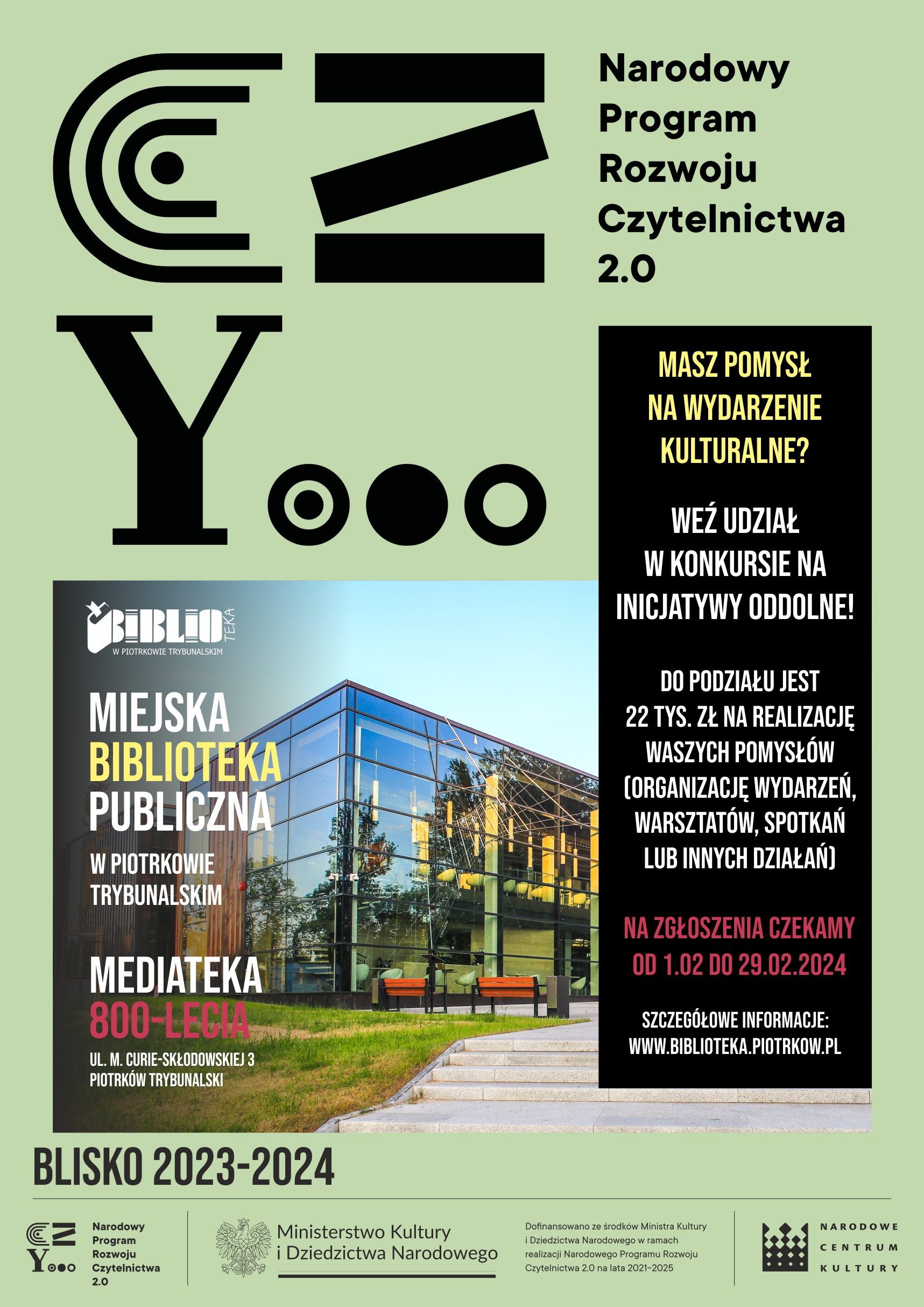 Konkurs jest częścią projektu „Podróże z biblioteką w tle” realizowanego w programie BLISKO – Biblioteka | Lokalność | Inicjatywy | Społeczność | Kooperacja | Oddolność, dofinansowanego ze środków Ministra Kultury i Dziedzictwa Narodowego w ramach Narodowego Programu Rozwoju Czytelnictwa 2.0 na lata 2021-2025 – priorytet 4.1.