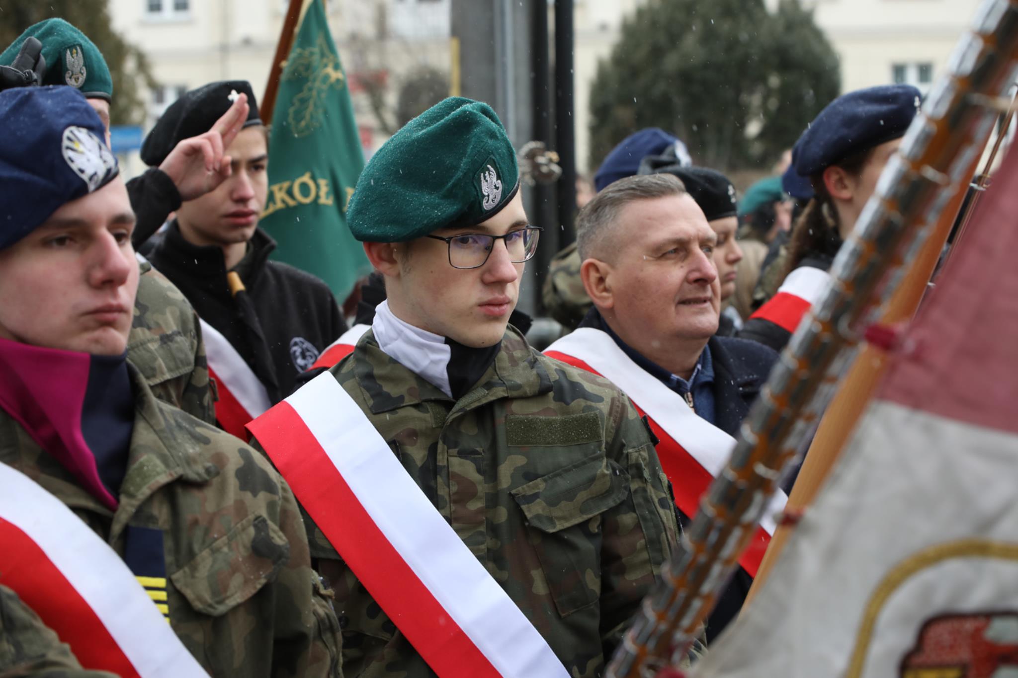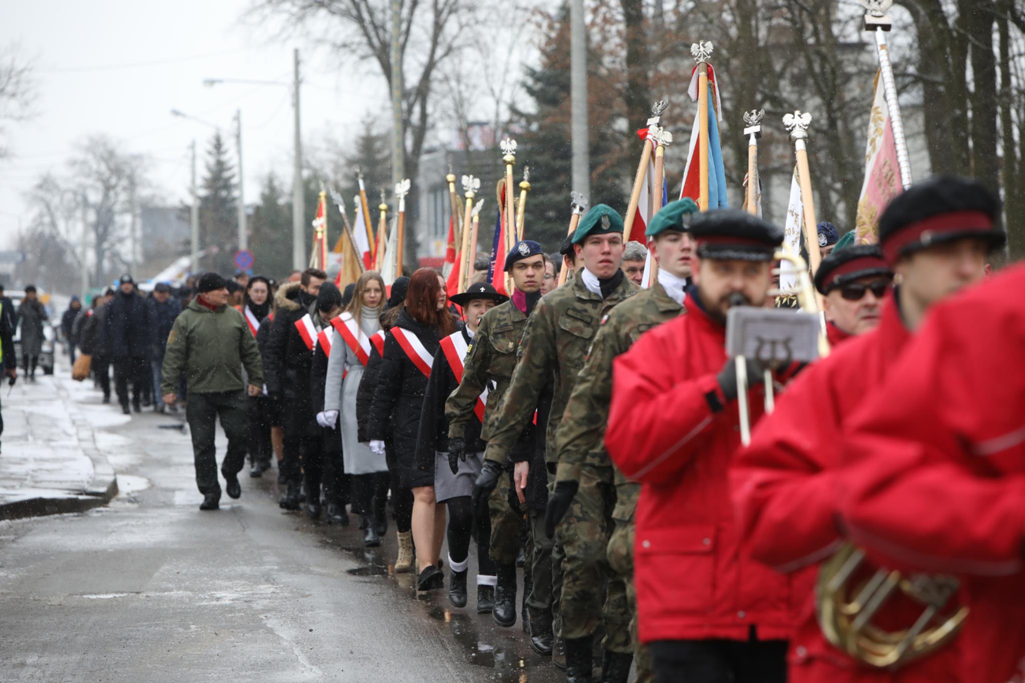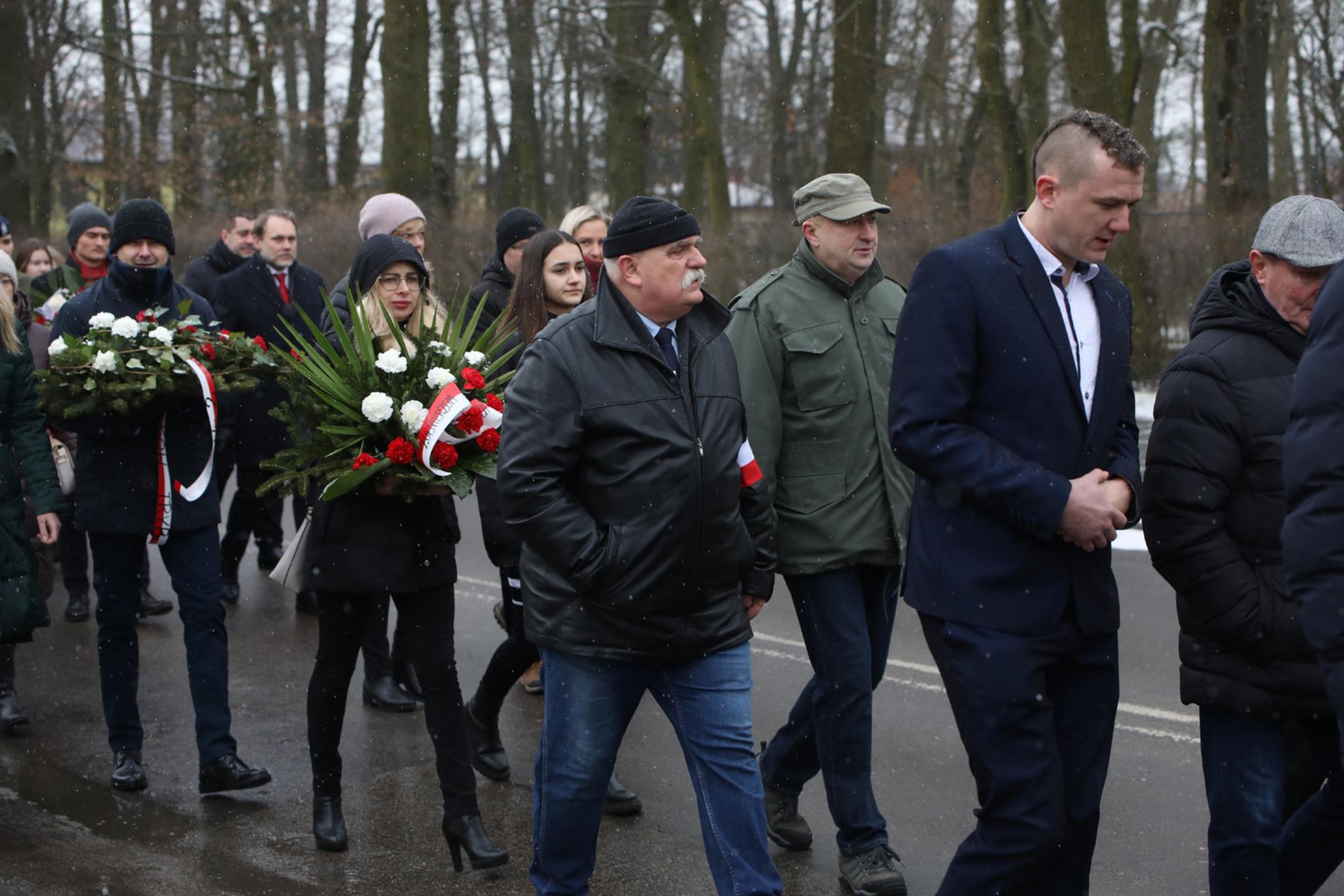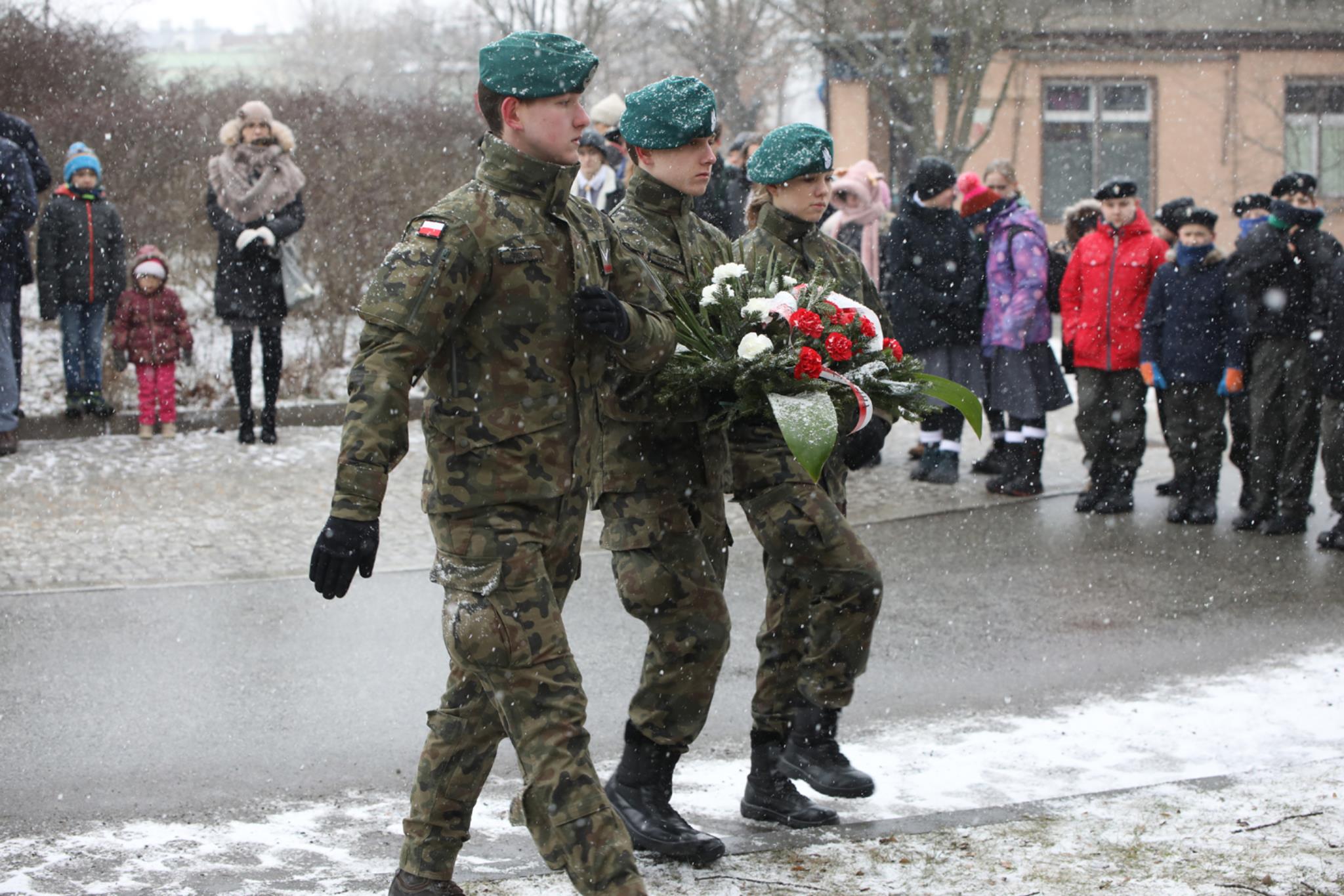 Zanim jednak wystartował bieg miały miejsce oficjalne uroczystości, które zapoczątkowała msza święta odprawiona w kościele pw. Nawiedzenia Najświętszej Maryi Panny. Następnie zebrani wraz z pocztami sztandarowymi przemaszerowali, przy akompaniamencie Miejskiej Orkiestry Dętej, pod pomnik poświęcony Żołnierzom Wyklętym (u zbiegu ulic Roosevelta i Żeromskiego). Tutaj odśpiewano hymn państwowy, po czym delegacje złożyły kwiaty pod pomnikiem. (UM)