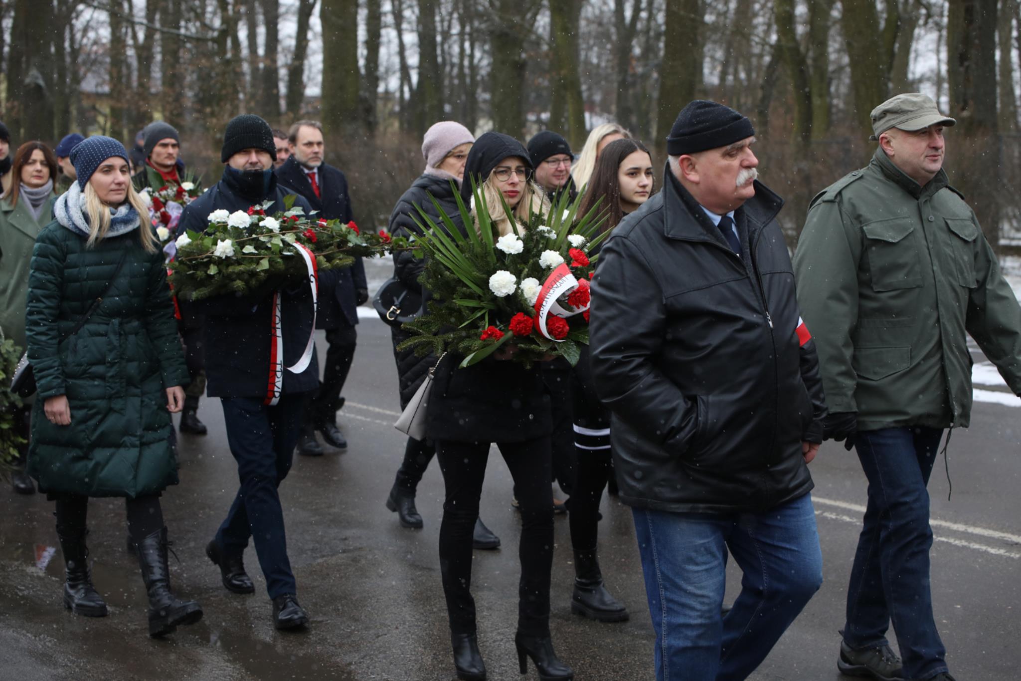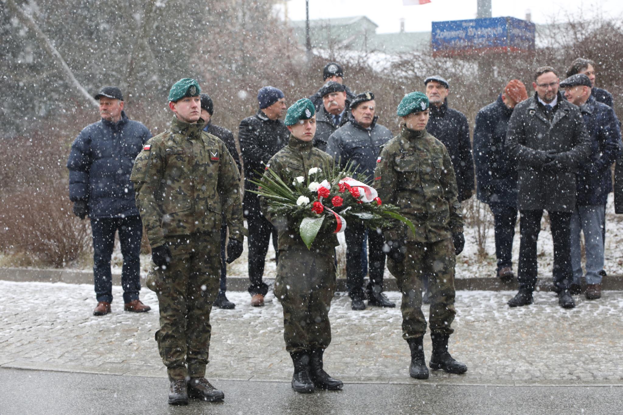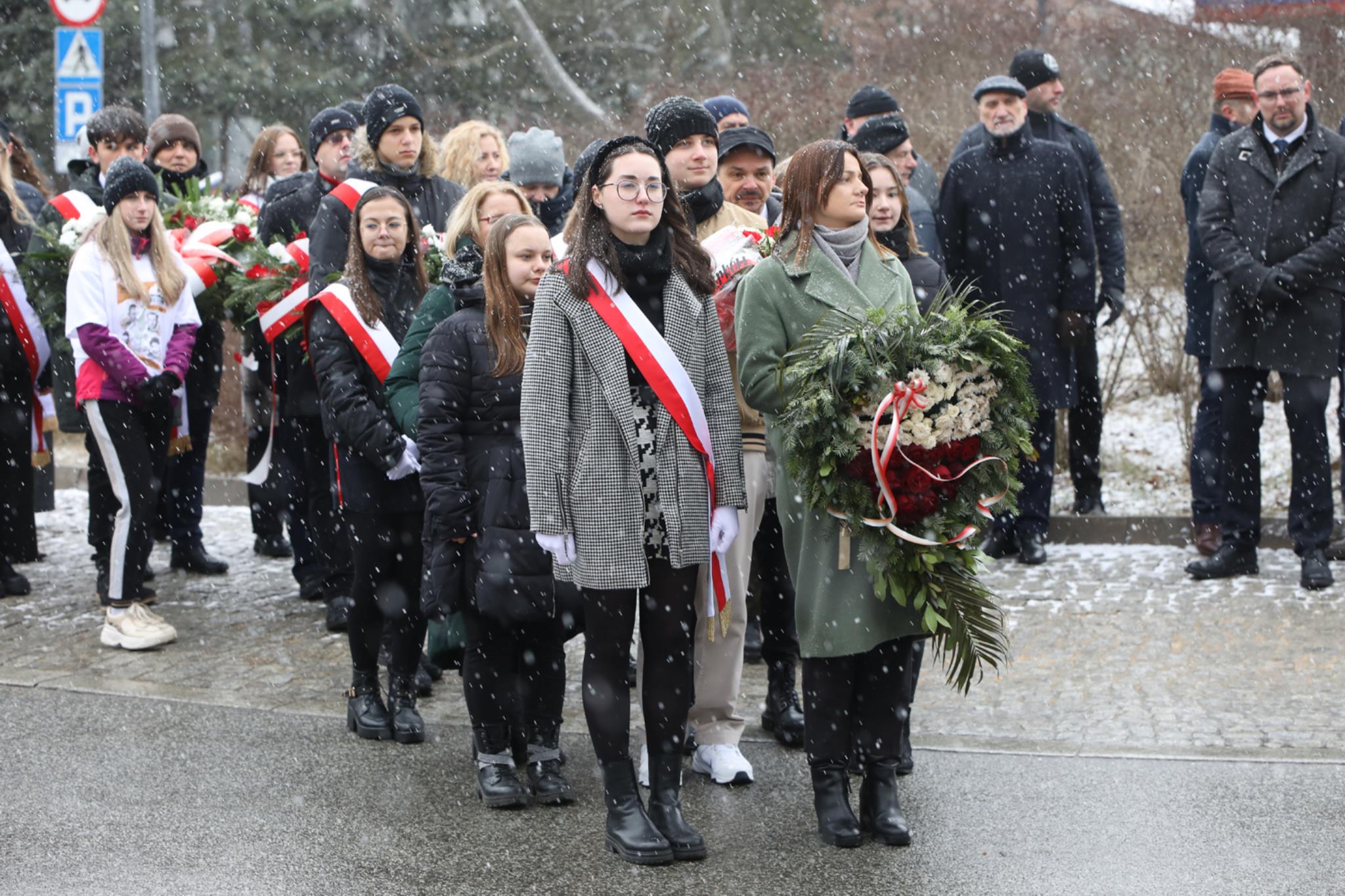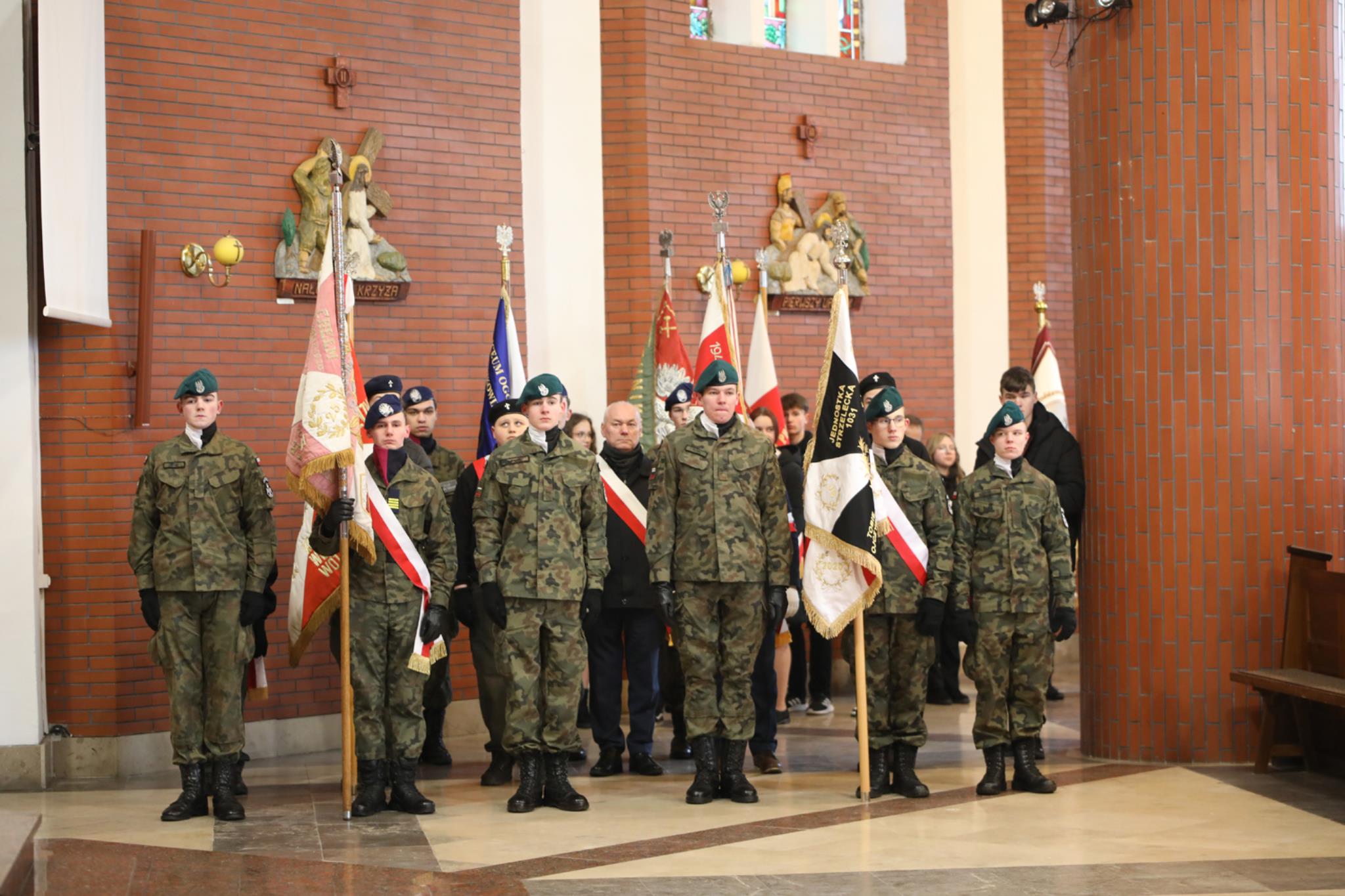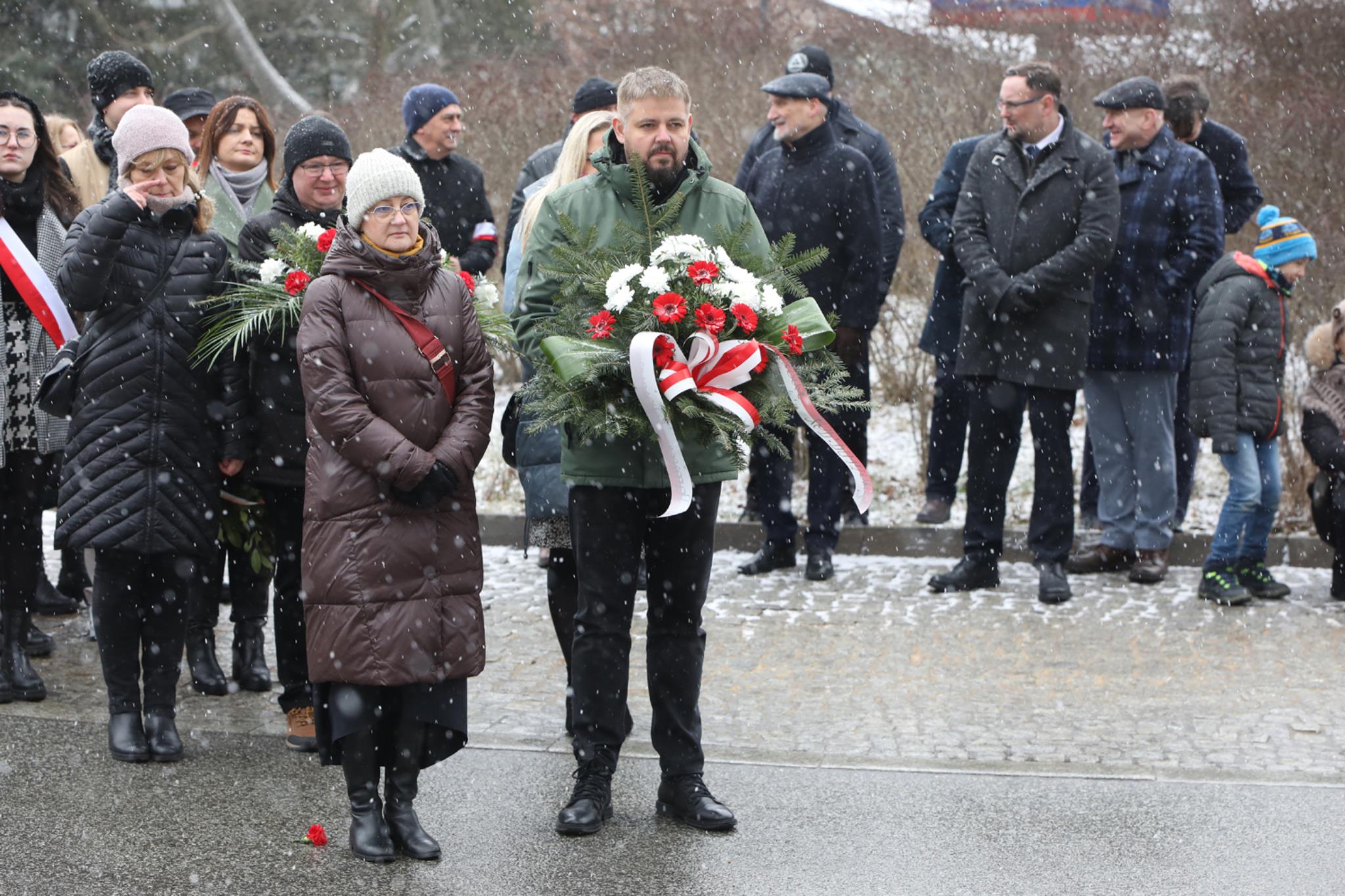 Zanim jednak wystartował bieg miały miejsce oficjalne uroczystości, które zapoczątkowała msza święta odprawiona w kościele pw. Nawiedzenia Najświętszej Maryi Panny. Następnie zebrani wraz z pocztami sztandarowymi przemaszerowali, przy akompaniamencie Miejskiej Orkiestry Dętej, pod pomnik poświęcony Żołnierzom Wyklętym (u zbiegu ulic Roosevelta i Żeromskiego). Tutaj odśpiewano hymn państwowy, po czym delegacje złożyły kwiaty pod pomnikiem. (UM)