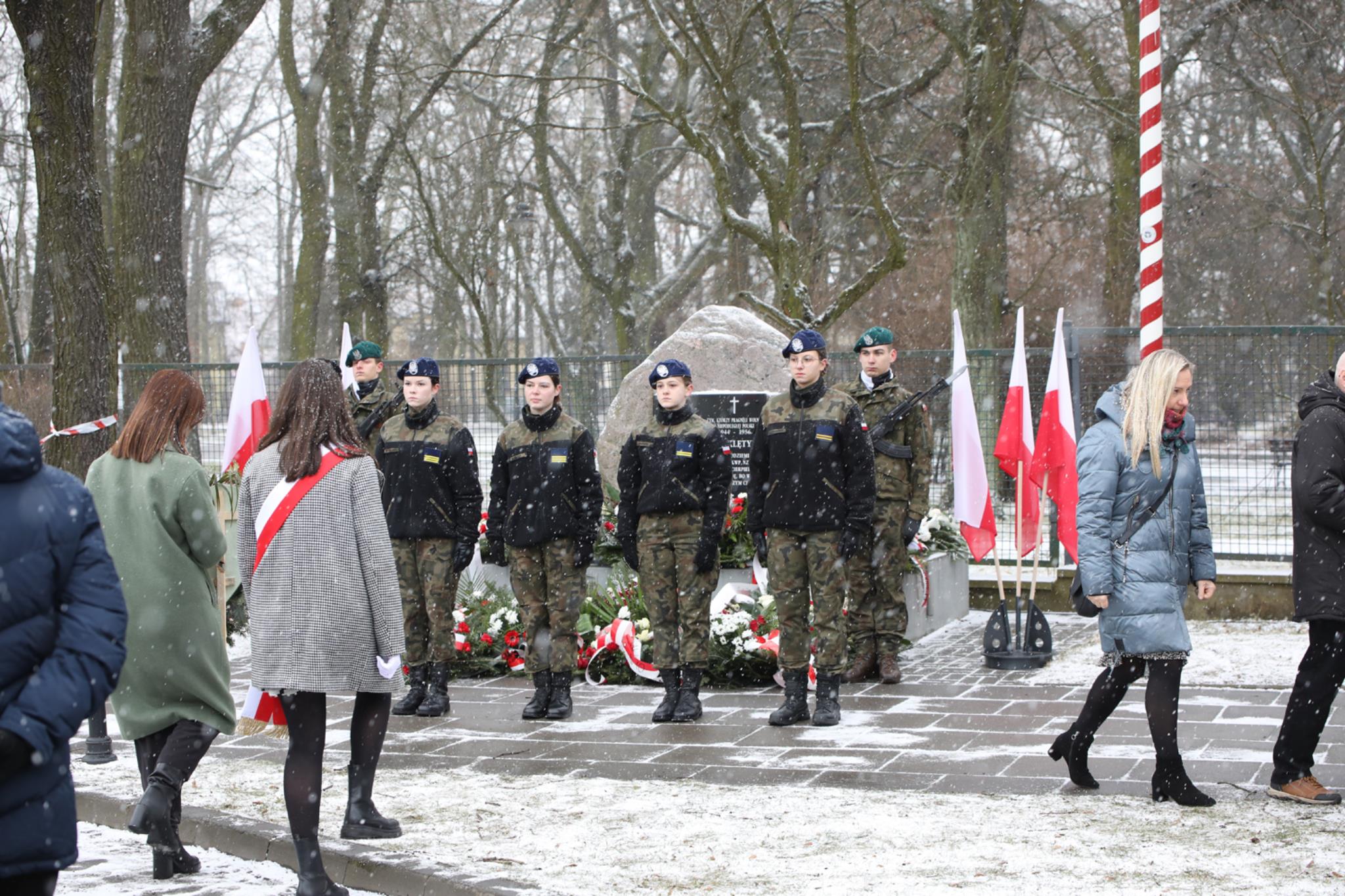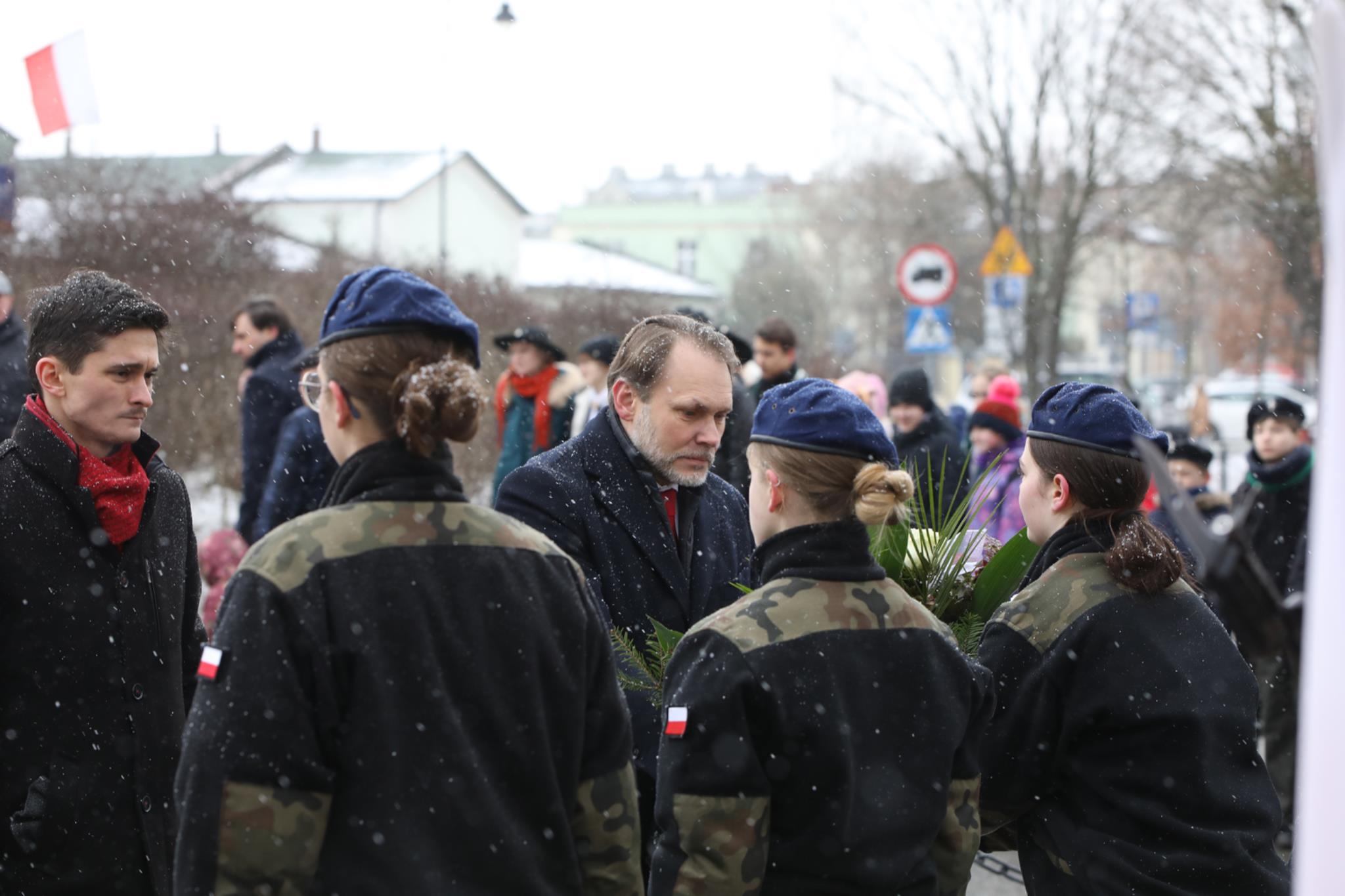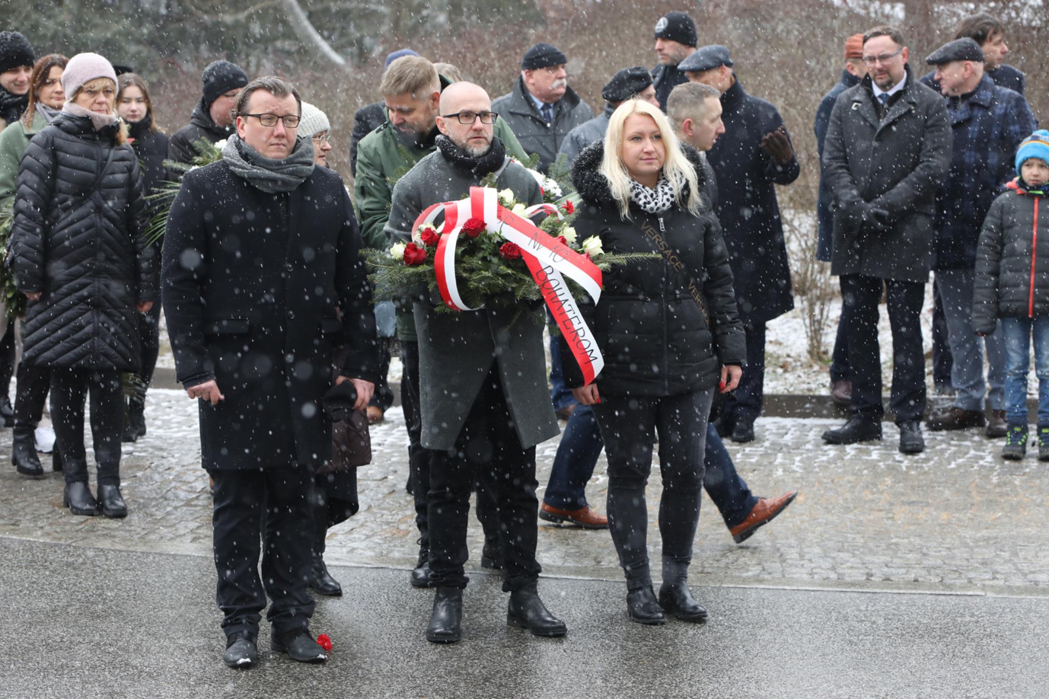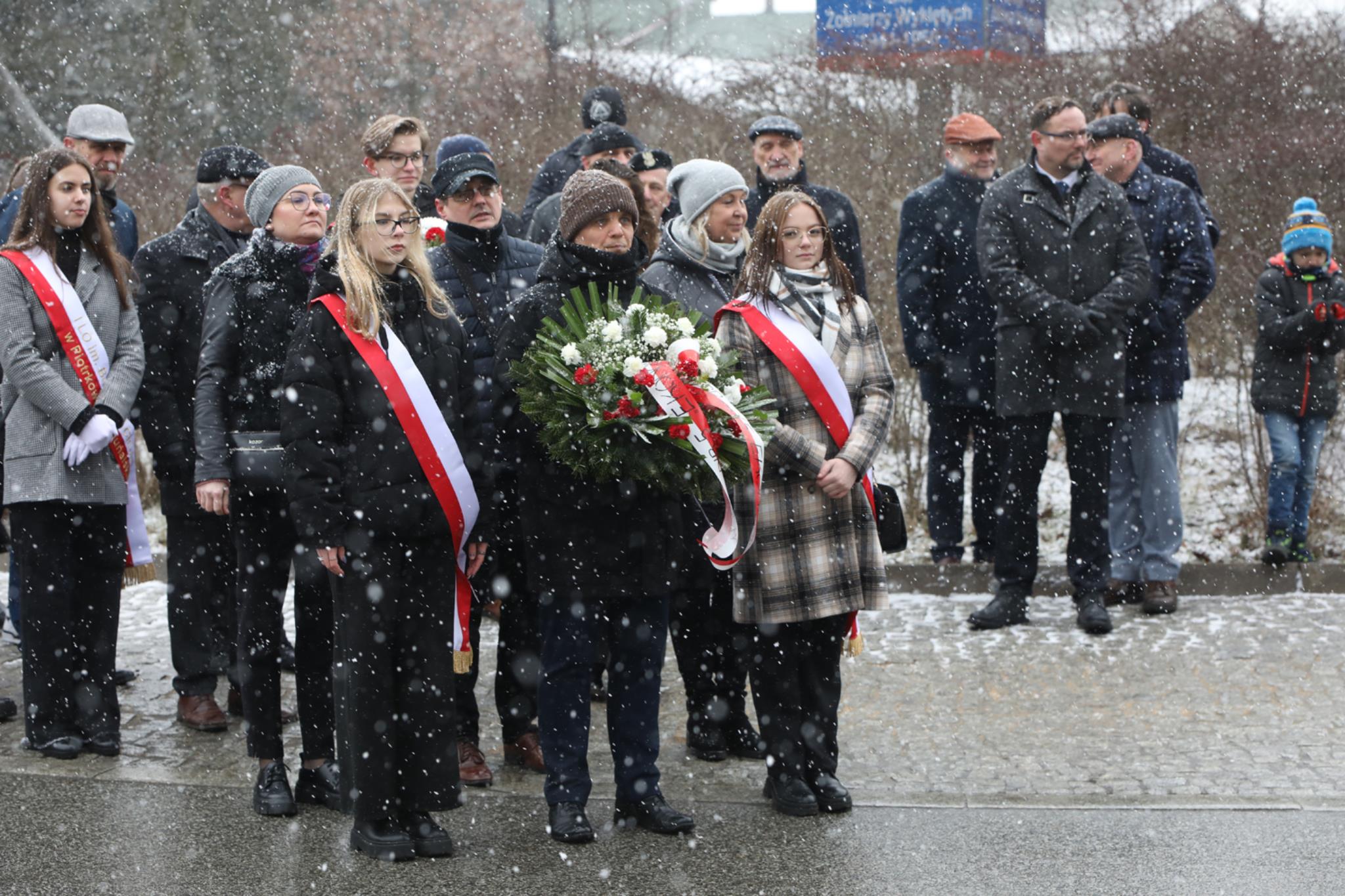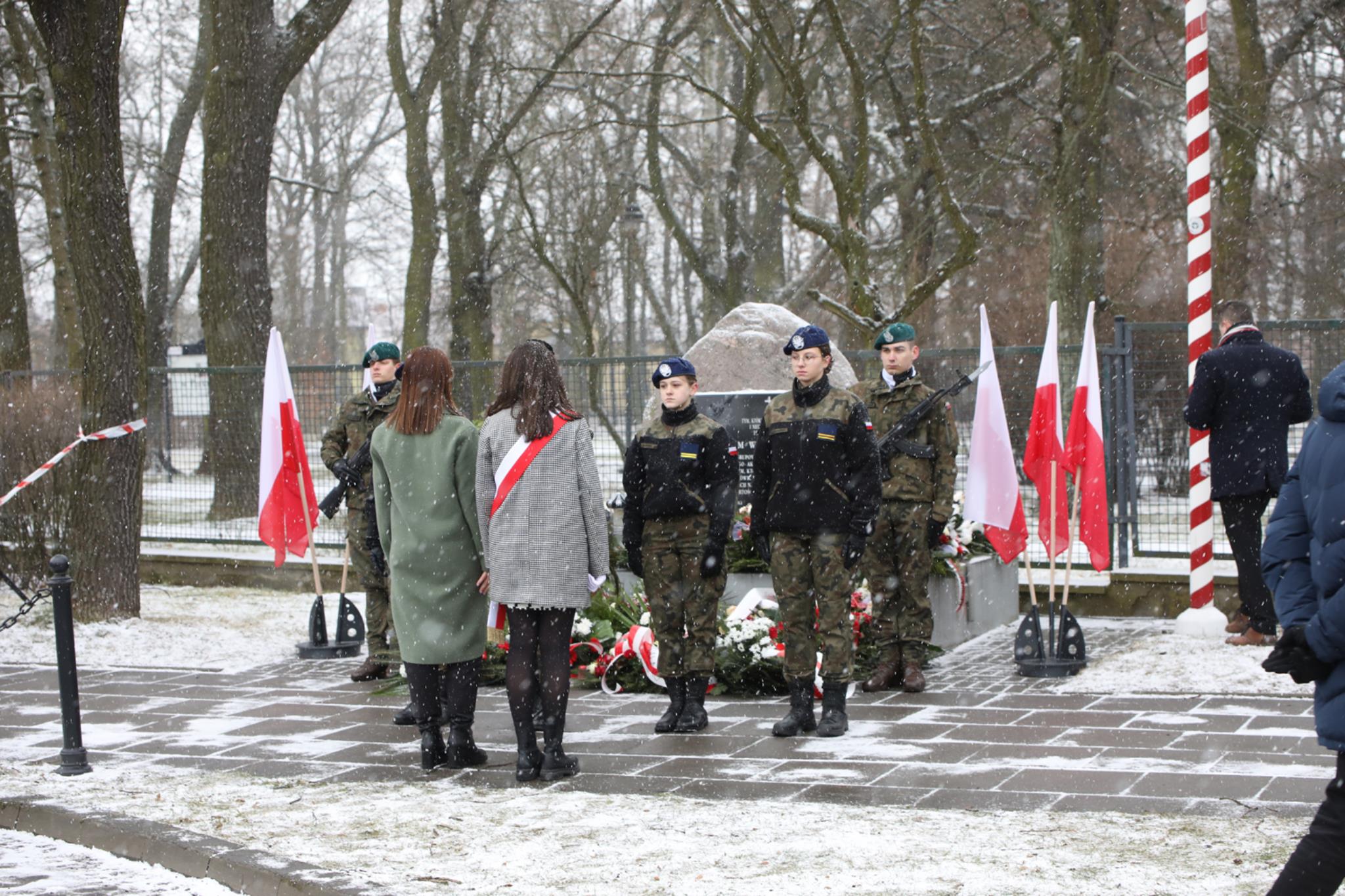 Zanim jednak wystartował bieg miały miejsce oficjalne uroczystości, które zapoczątkowała msza święta odprawiona w kościele pw. Nawiedzenia Najświętszej Maryi Panny. Następnie zebrani wraz z pocztami sztandarowymi przemaszerowali, przy akompaniamencie Miejskiej Orkiestry Dętej, pod pomnik poświęcony Żołnierzom Wyklętym (u zbiegu ulic Roosevelta i Żeromskiego). Tutaj odśpiewano hymn państwowy, po czym delegacje złożyły kwiaty pod pomnikiem. (UM)