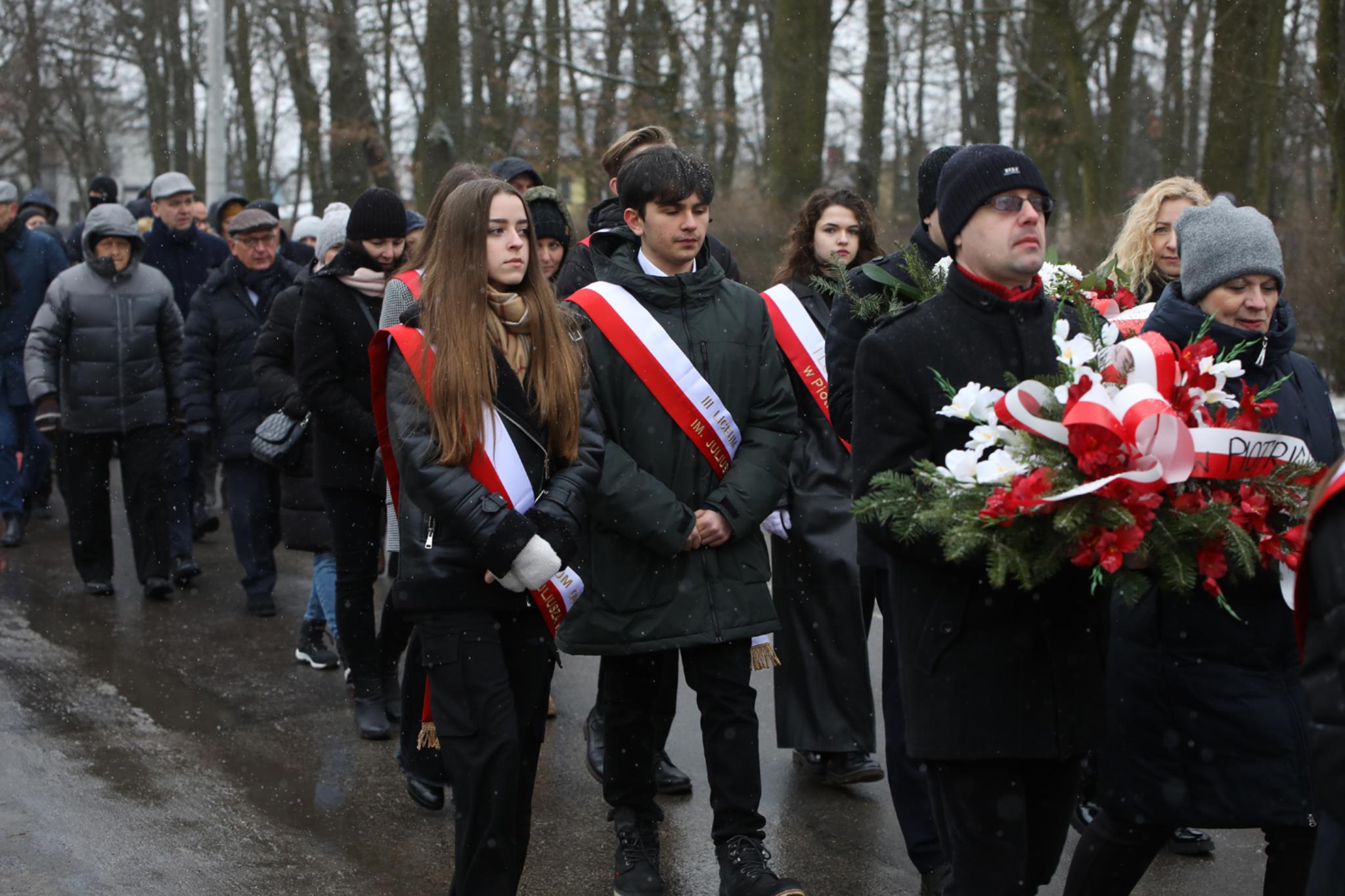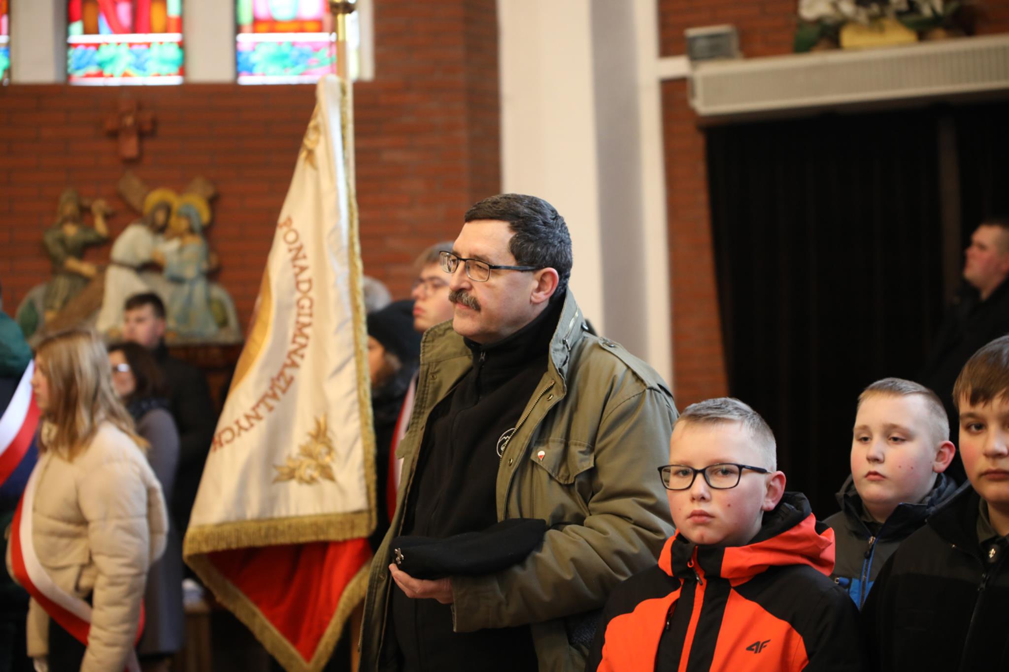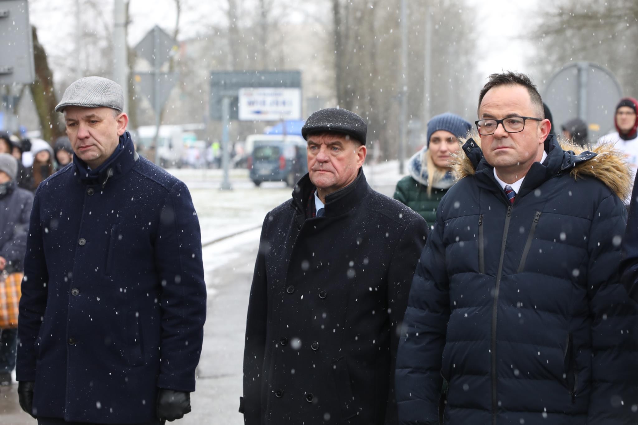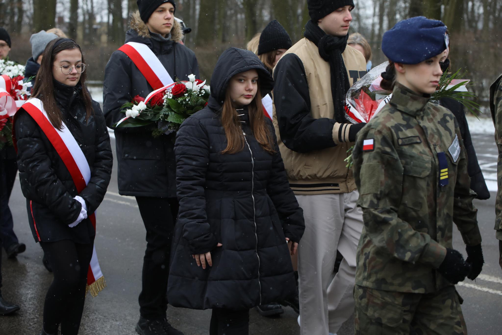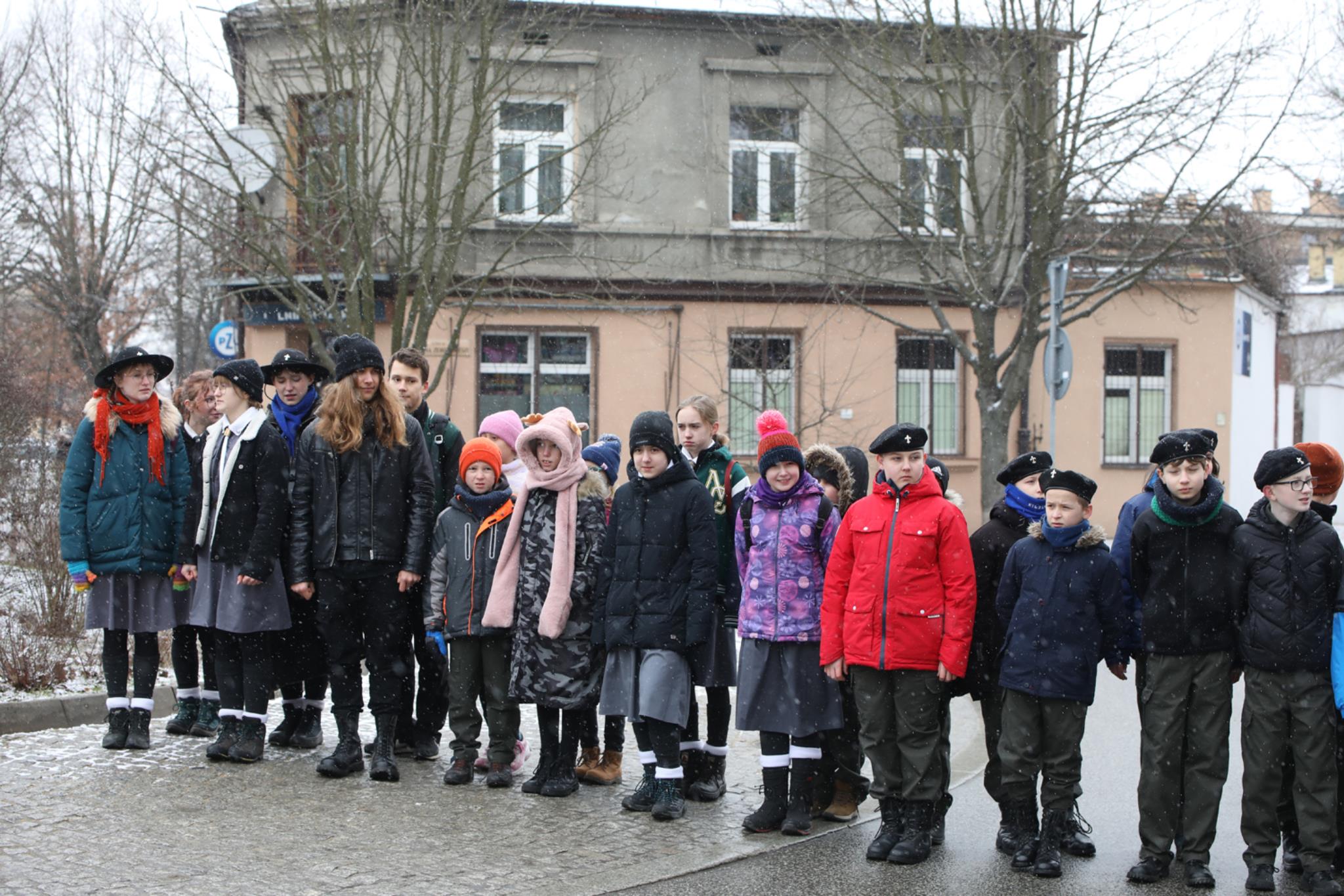 Zanim jednak wystartował bieg miały miejsce oficjalne uroczystości, które zapoczątkowała msza święta odprawiona w kościele pw. Nawiedzenia Najświętszej Maryi Panny. Następnie zebrani wraz z pocztami sztandarowymi przemaszerowali, przy akompaniamencie Miejskiej Orkiestry Dętej, pod pomnik poświęcony Żołnierzom Wyklętym (u zbiegu ulic Roosevelta i Żeromskiego). Tutaj odśpiewano hymn państwowy, po czym delegacje złożyły kwiaty pod pomnikiem. (UM)