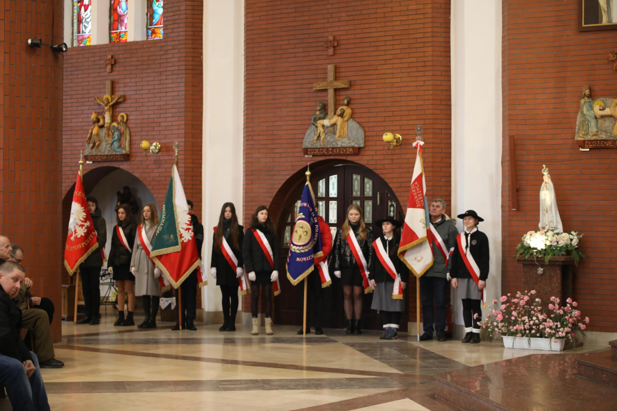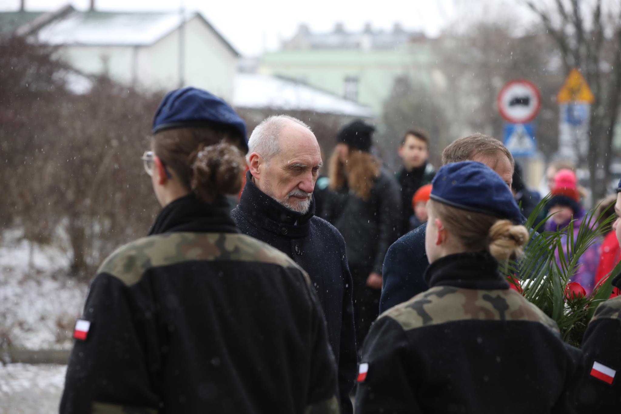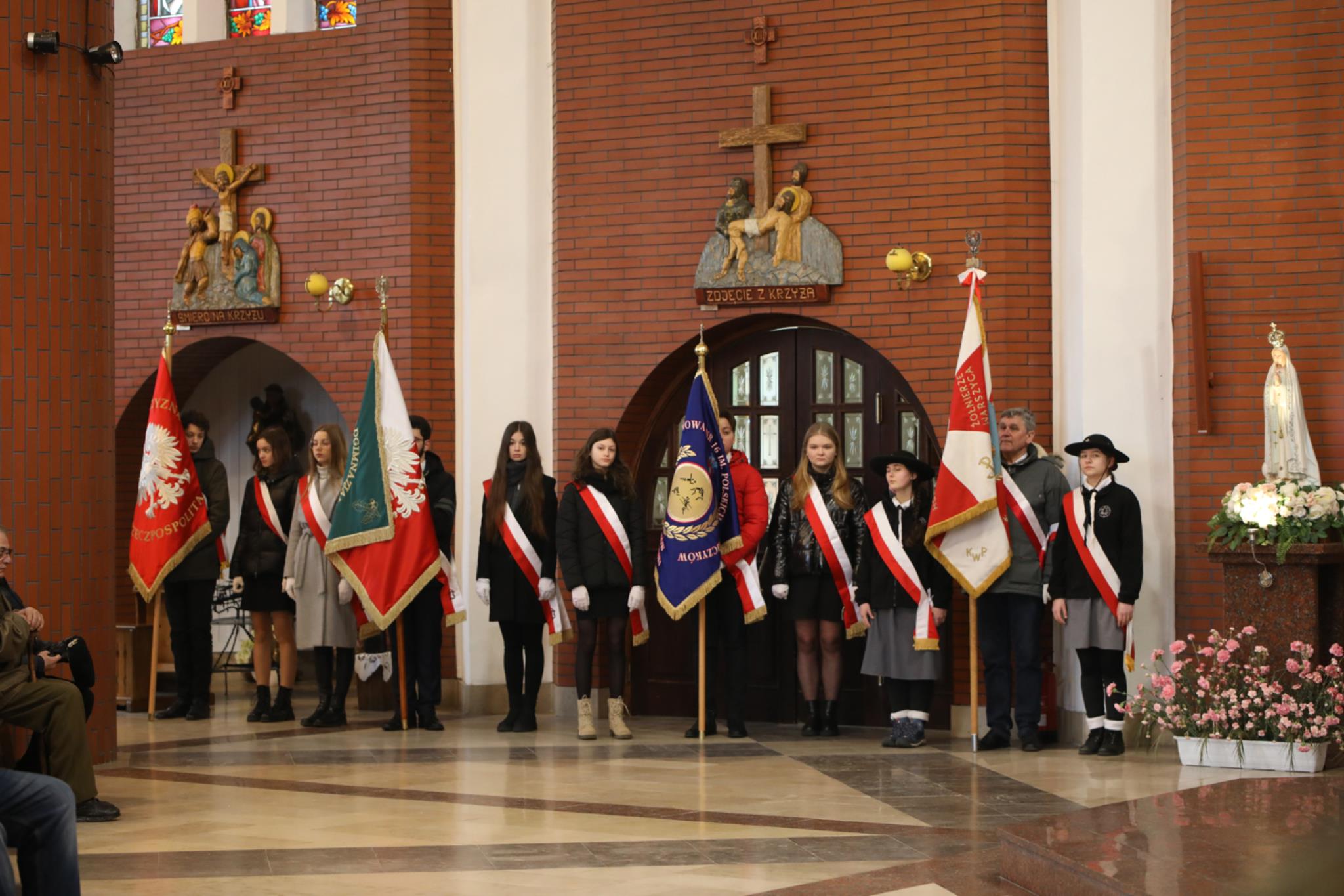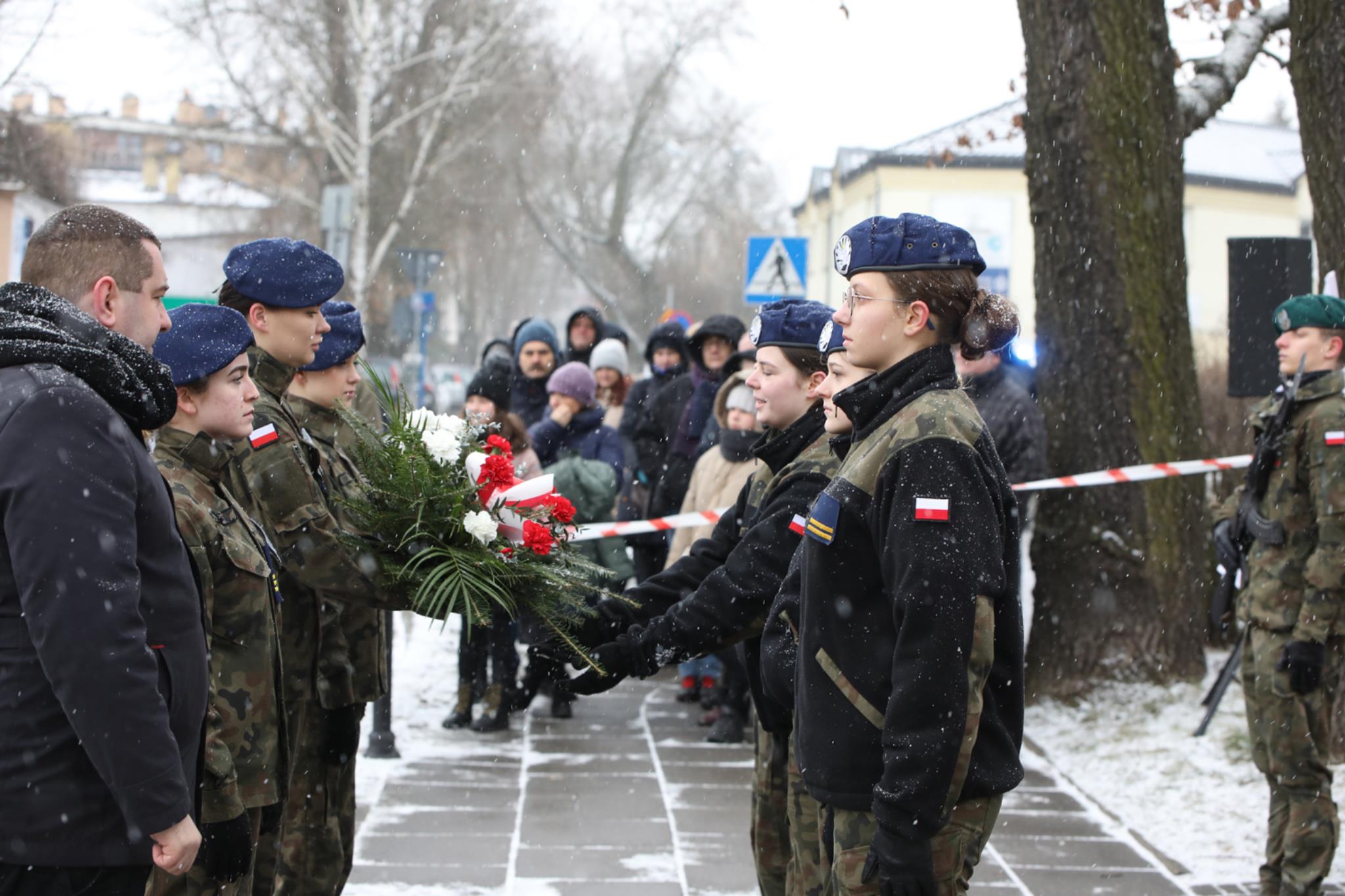 Zanim jednak wystartował bieg miały miejsce oficjalne uroczystości, które zapoczątkowała msza święta odprawiona w kościele pw. Nawiedzenia Najświętszej Maryi Panny. Następnie zebrani wraz z pocztami sztandarowymi przemaszerowali, przy akompaniamencie Miejskiej Orkiestry Dętej, pod pomnik poświęcony Żołnierzom Wyklętym (u zbiegu ulic Roosevelta i Żeromskiego). Tutaj odśpiewano hymn państwowy, po czym delegacje złożyły kwiaty pod pomnikiem. (UM)