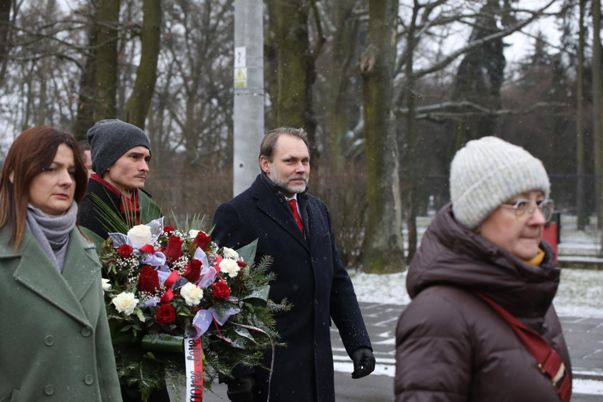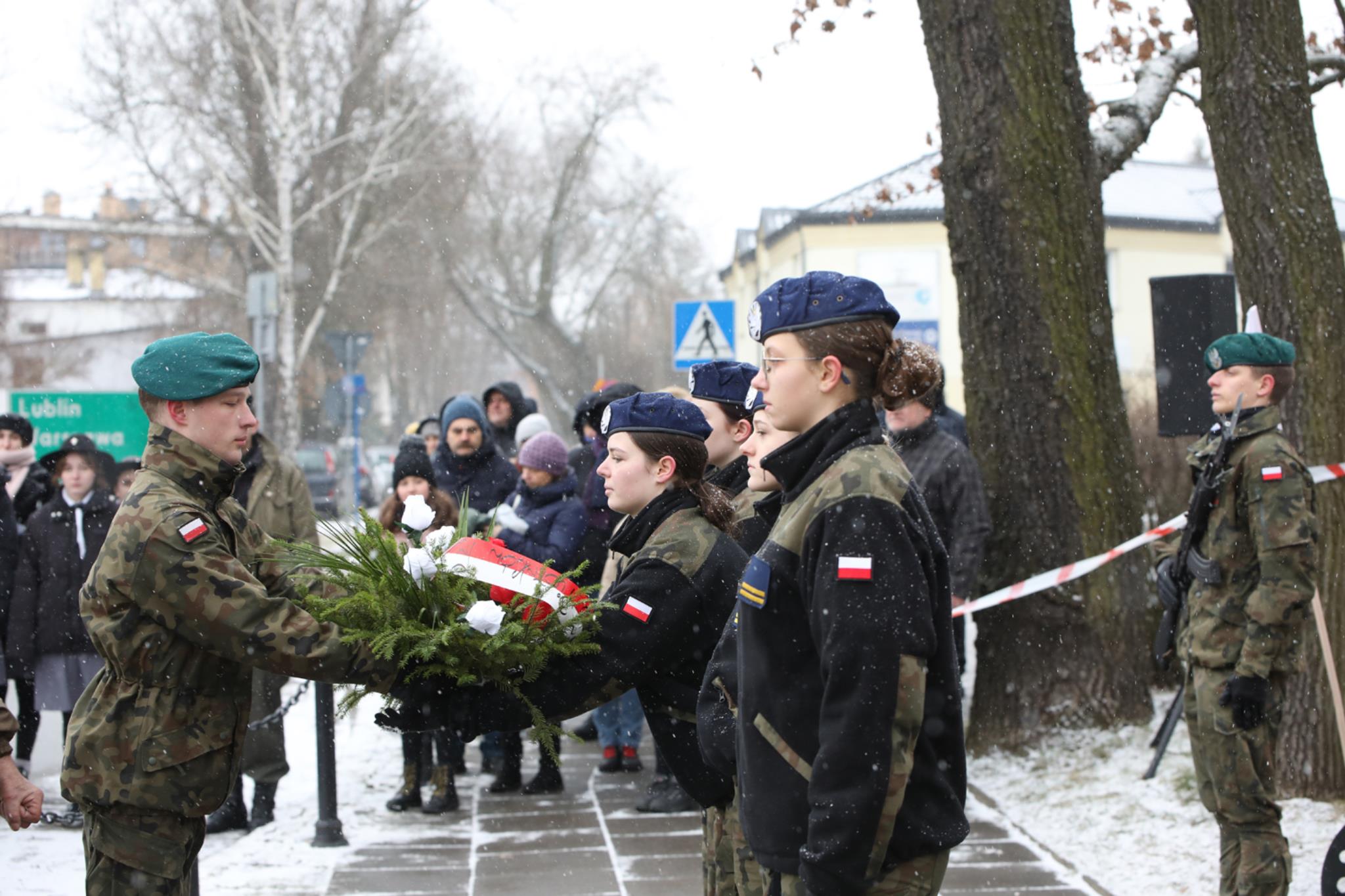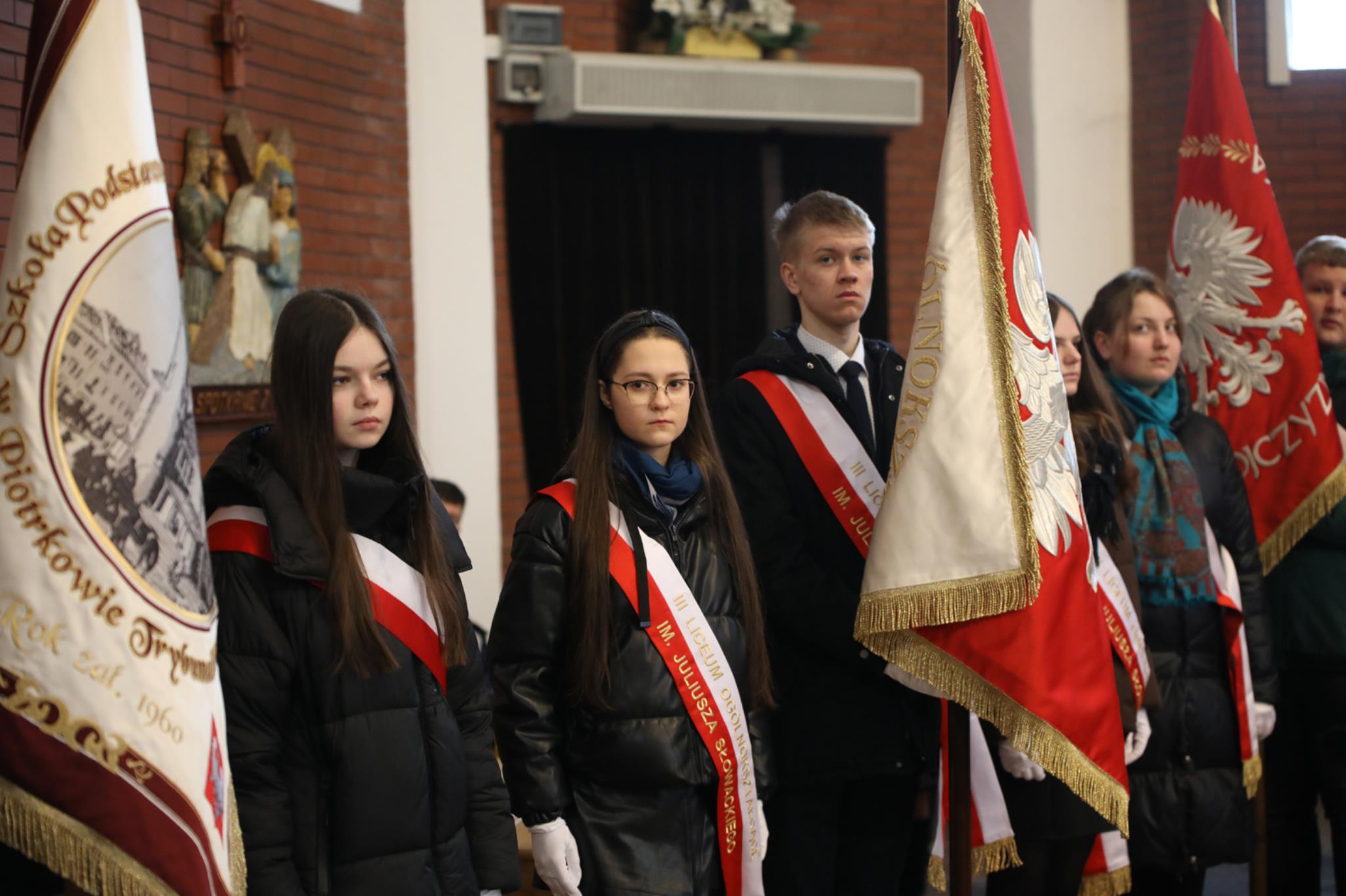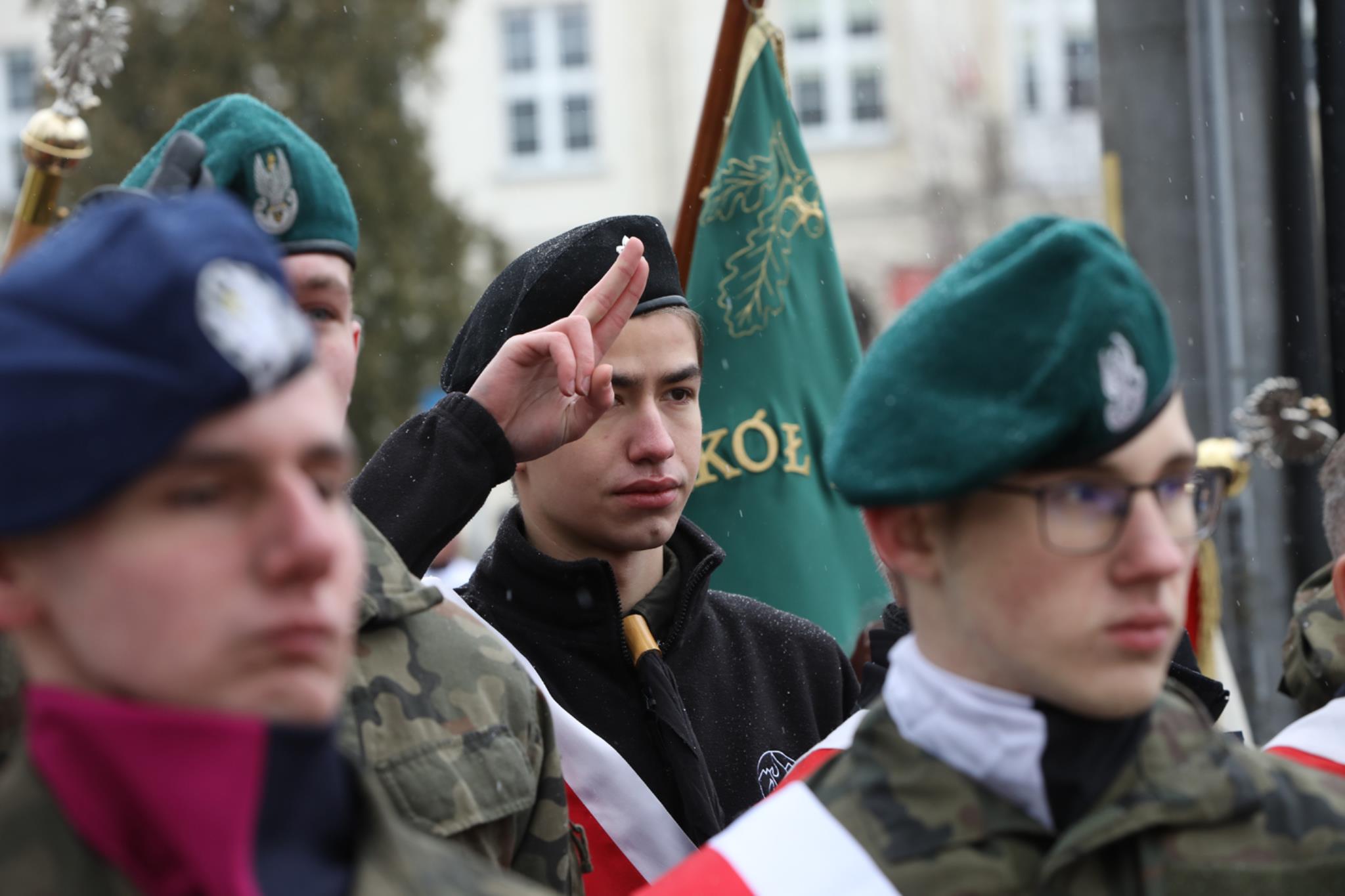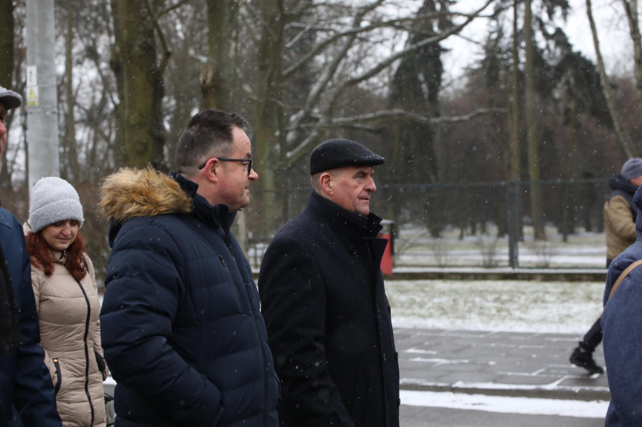 Zanim jednak wystartował bieg miały miejsce oficjalne uroczystości, które zapoczątkowała msza święta odprawiona w kościele pw. Nawiedzenia Najświętszej Maryi Panny. Następnie zebrani wraz z pocztami sztandarowymi przemaszerowali, przy akompaniamencie Miejskiej Orkiestry Dętej, pod pomnik poświęcony Żołnierzom Wyklętym (u zbiegu ulic Roosevelta i Żeromskiego). Tutaj odśpiewano hymn państwowy, po czym delegacje złożyły kwiaty pod pomnikiem. (UM)