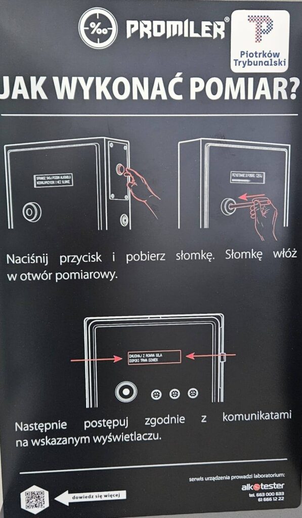 Po włożeniu ustnika urządzenie samo poprowadzi osobę badaną przez cały proces. Komunikaty oraz wynik badania pojawią się na czytelnym wyświetlaczu LCD. Badanie jest szybkie, proste i bezpłatne. Ustnik do badania można odebrać w recepcji, tuż obok alkomatu – wyjaśnia asp. sztab. Izabela Gajewska, rzeczniczka prasowa KMP w Piotrkowie.