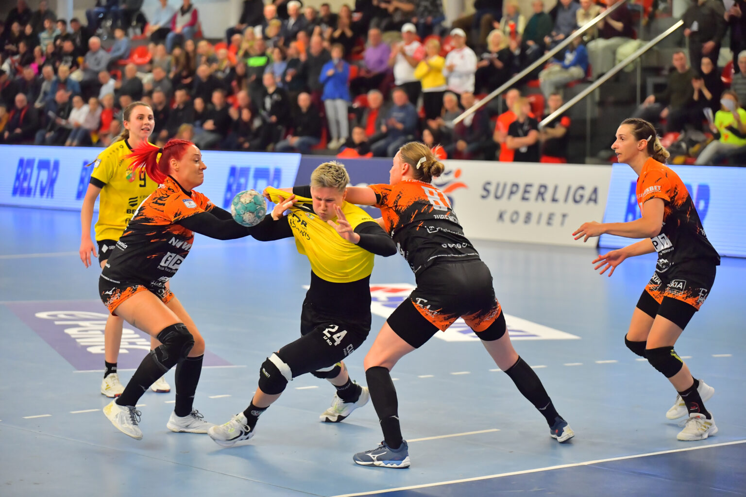 Drużyna prowadzona przez Edytę Majdzińską miała po swojej stronie jednak więcej argumentów i ostatecznie systematycznie odbudowywała przewagę – dwa trafienia zapisała na swoim koncie Karolina Wicik, a dobra gra w obronie pozwoliła na wyprowadzanie kontrataków (29-25 w 56’).