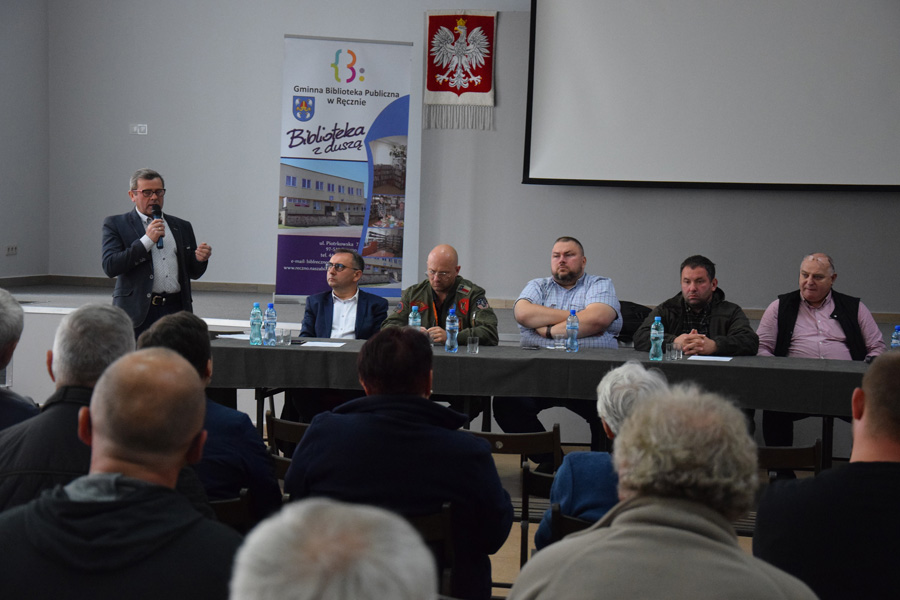Cennych porad z zakresu pomocy prawnej przy rozwiązywaniu spornych sytuacji pomiędzy rolnikami i myśliwymi, udzielił Janusz Terka Przewodniczący Izby Rolniczej. Po burzliwej debacie spotkanie zakończono wnioskiem rolników o zwiększenie odstrzału dzików na terenie działalności Kół Łowieckich „Puchacz” i „Dzik”. Było to pierwsze spotkanie z rolnikami zorganizowane przez Gminną Bibliotekę Publiczną w Ręcznie przy wsparciu Wójta Gminy Ręczno Piotra Łysonia.