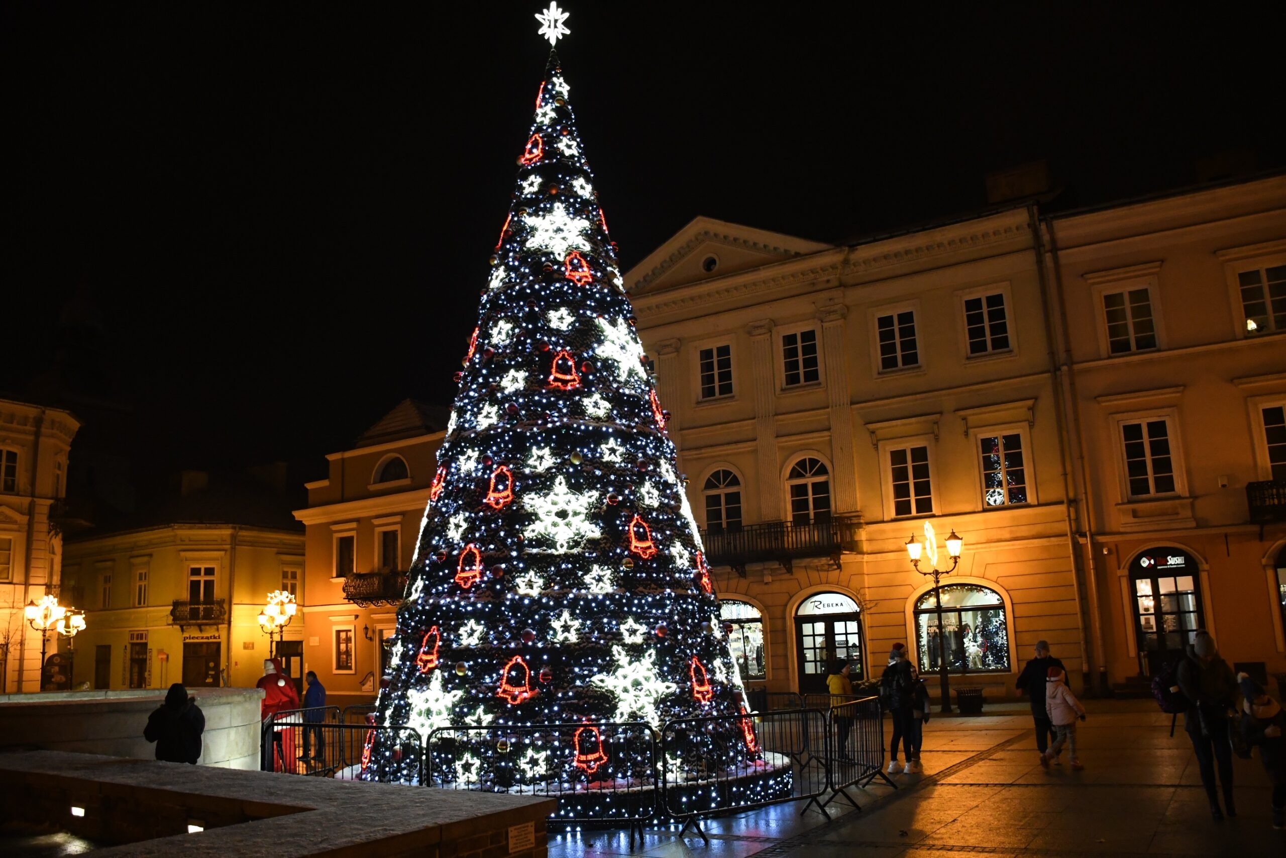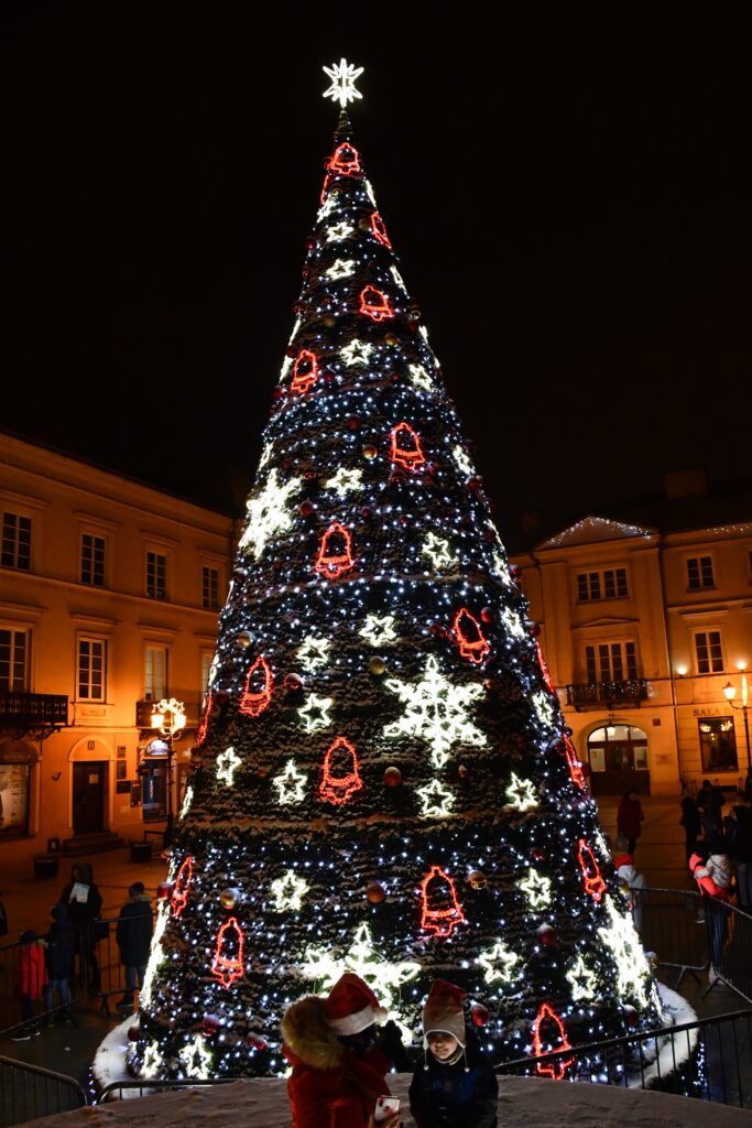 Lampki na miejskiej choince ustawionej w Rynku Trybunalskim już włączone. Uroczystemu rozświetleniu bożonarodzeniowego drzewka towarzyszyło wręczanie upominków dla najmłodszych.