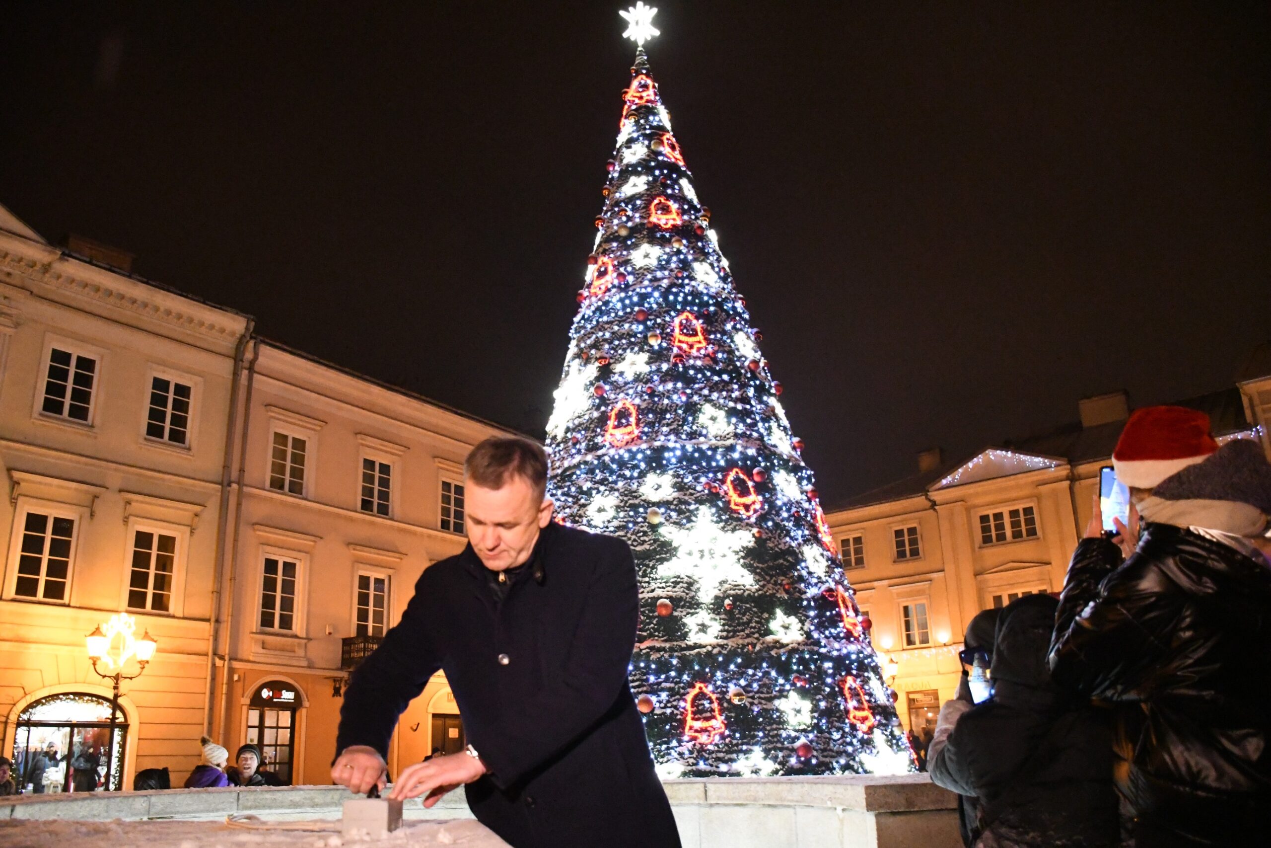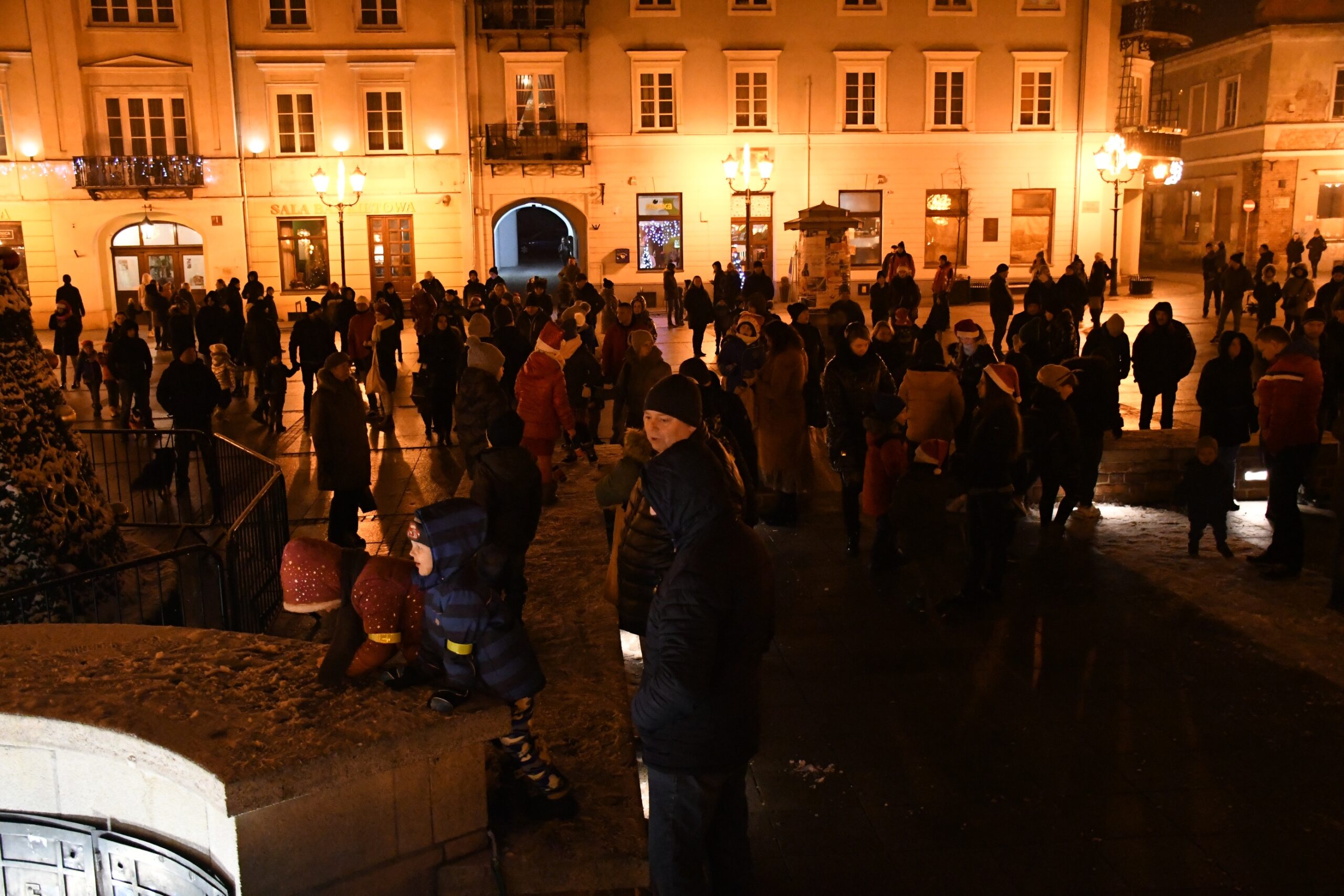 Lampki na miejskiej choince ustawionej w Rynku Trybunalskim już włączone. Uroczystemu rozświetleniu bożonarodzeniowego drzewka towarzyszyło wręczanie upominków dla najmłodszych.