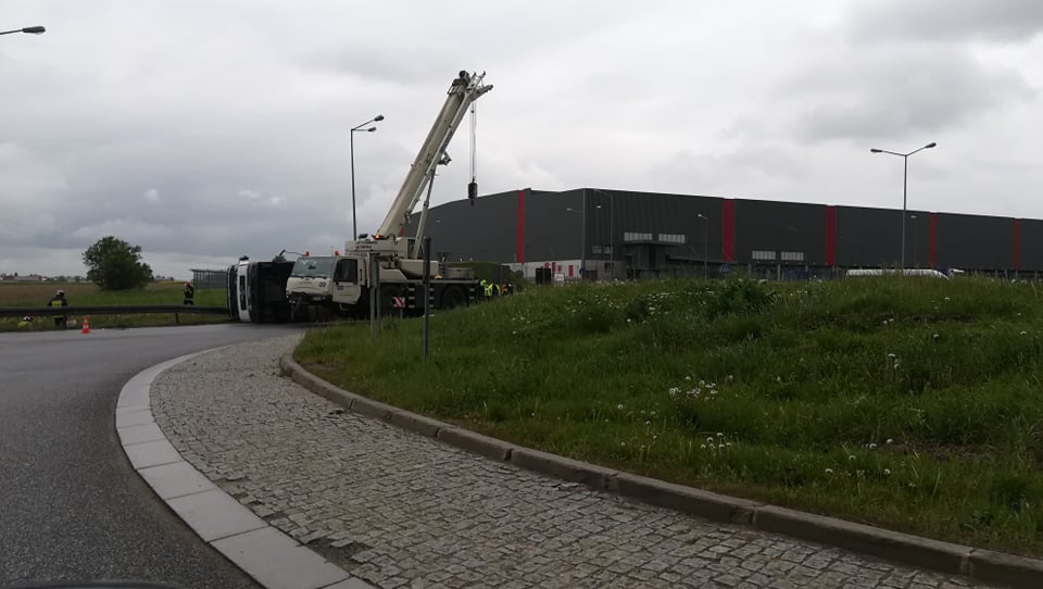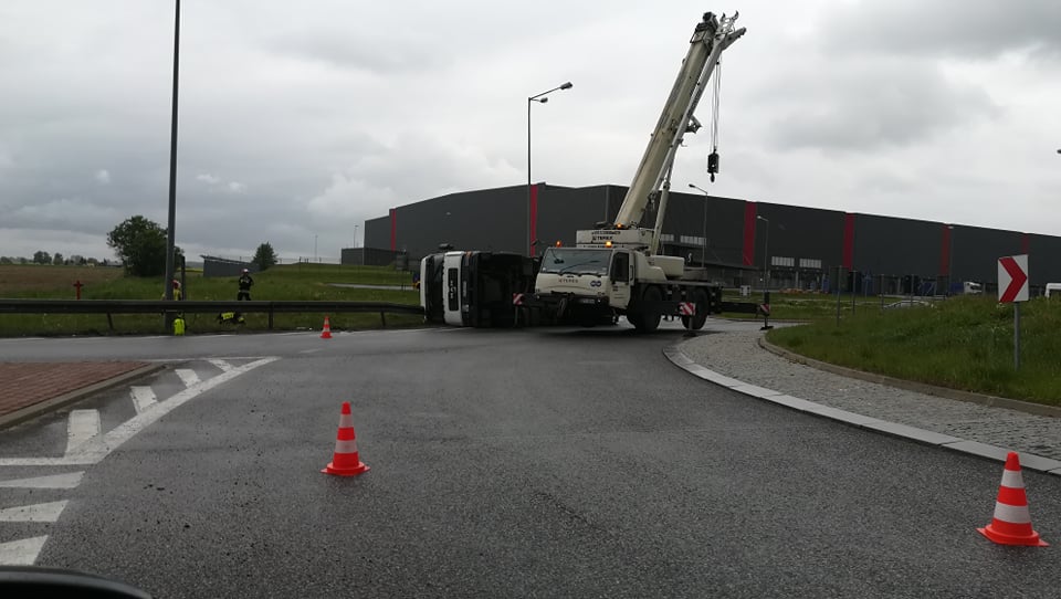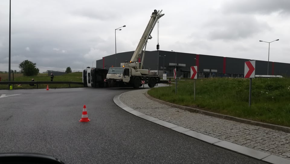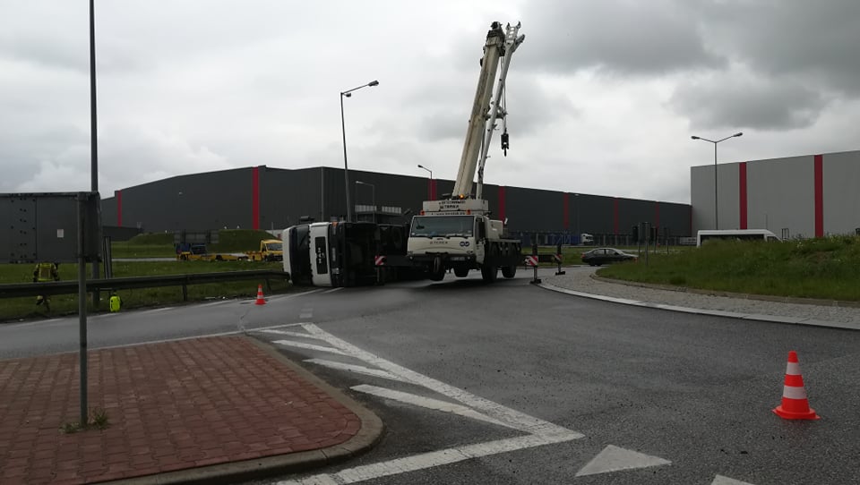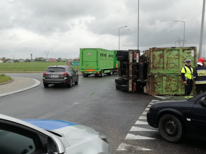 Prawdopodobnie źle zabezpieczony ładunek był przyczyną przewrócenia się ciężarówki na rondzie w Rokszycach pod Piotrkowem. Wyjazd i wjazd z miasta od strony Bełchatowa odbywa się wahadłowo. Kierowcy muszą uzbroić się z cierpliwość.