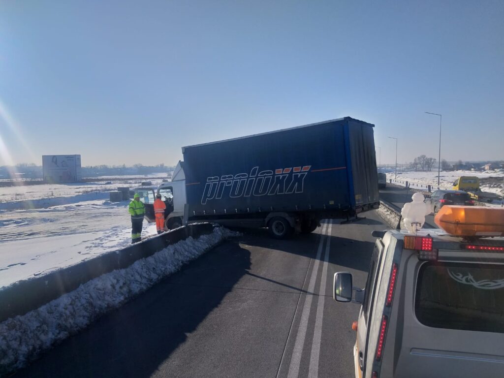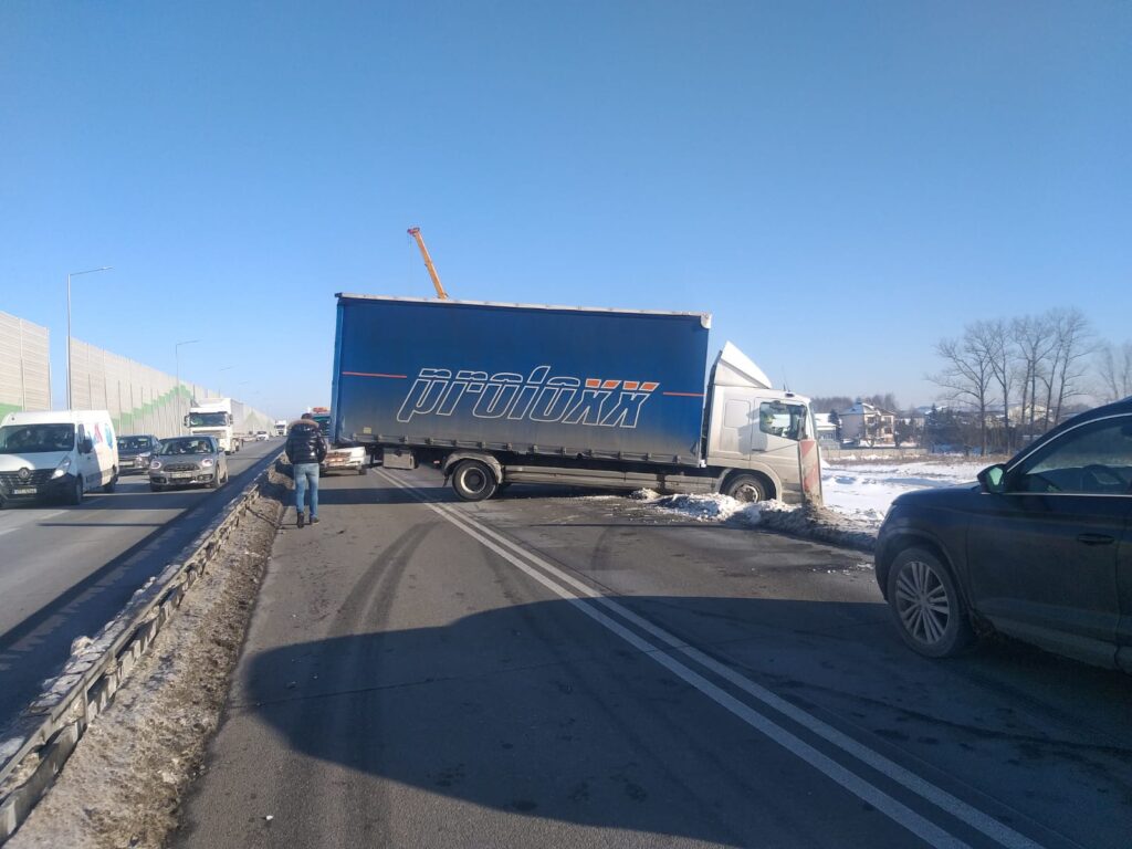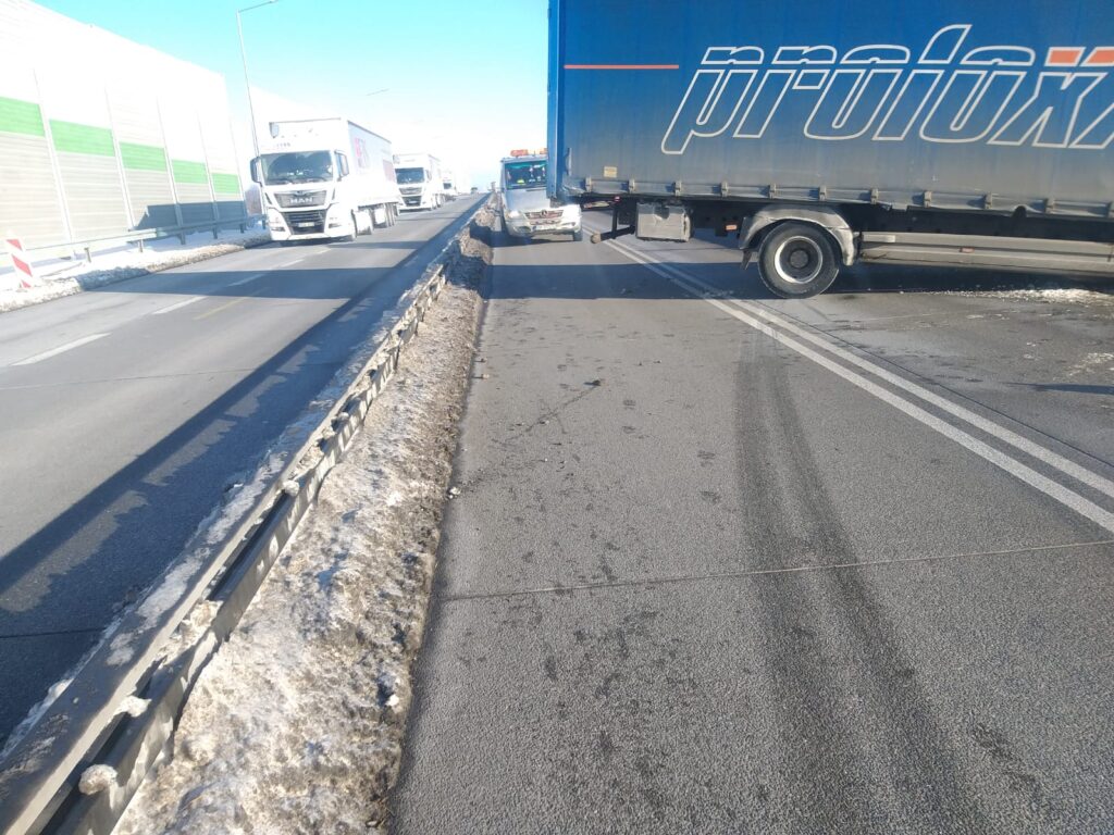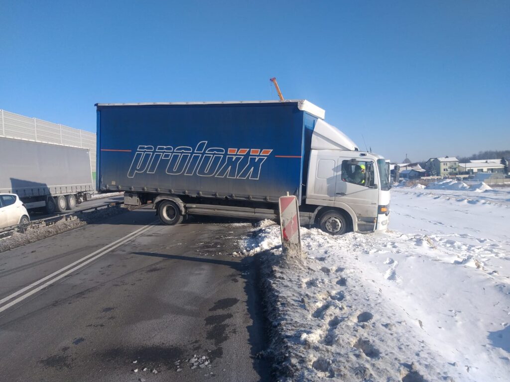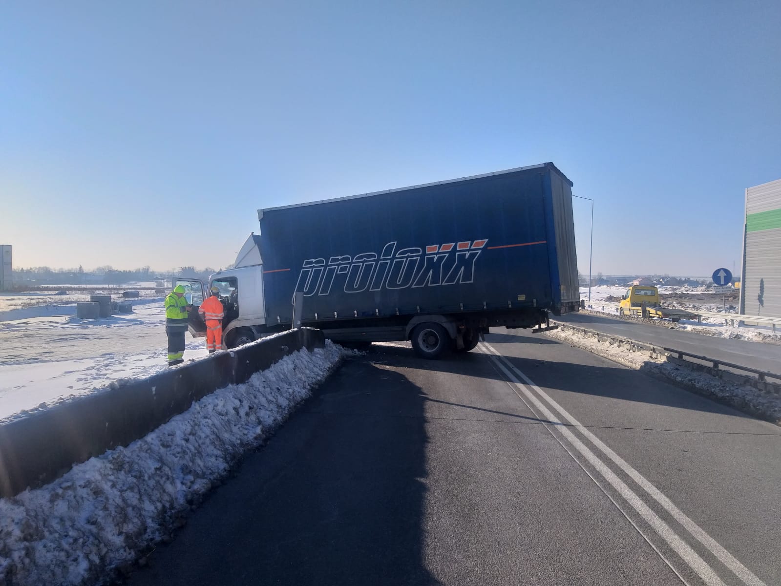 Autostrada A1 w kierunku Łodzi jest całkowicie zablokowana. Kierowca ciężarówki wpadł w poślizg i wjechał do rowu. Droga na wysokości Twardosławic jest nieprzejezdna, bowiem ciężarówka stoi w poprzek drogi, blokując przejazd. Policja w Kamieńsku kieruje ruch na DK91.