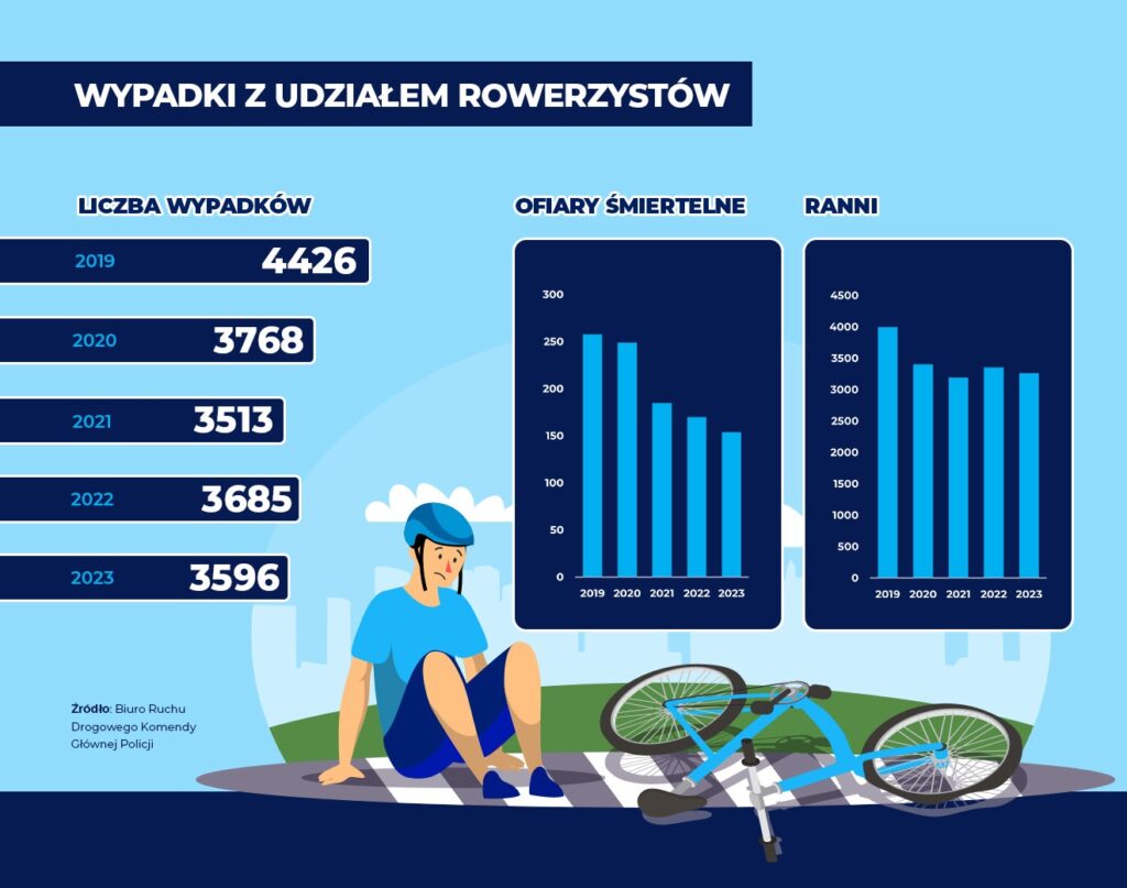 Dynamiczny rozwój infrastruktury rowerowej widoczny jest także w statystykach dotyczących wypadków drogowych. Na przestrzeni ostatnich pięciu lat zmniejszyła się liczba zdarzeń na drogach z udziałem rowerzystów. Jak wynika z danych Komedy Głównej Policji, w 2023 roku doszło do 3596 wypadków z ich udziałem. W ich wyniku zginęły 154 osoby, a 3264 zostało rannych. W 2019 takich zdarzeń było ponad 4,4 tys. Zginęło w nich 258 rowerzystów, a 3999 zostało rannych.