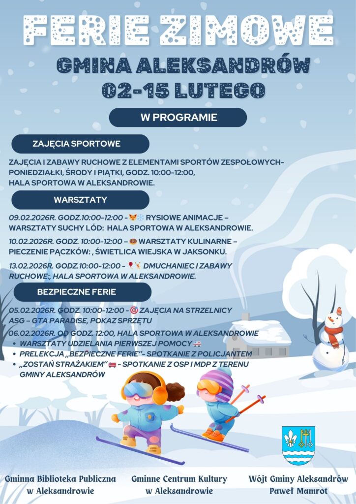 Udział w feriach jest bezpłatny, jednak liczba miejsc jest ograniczona i decyduje kolejność zgłoszeń.