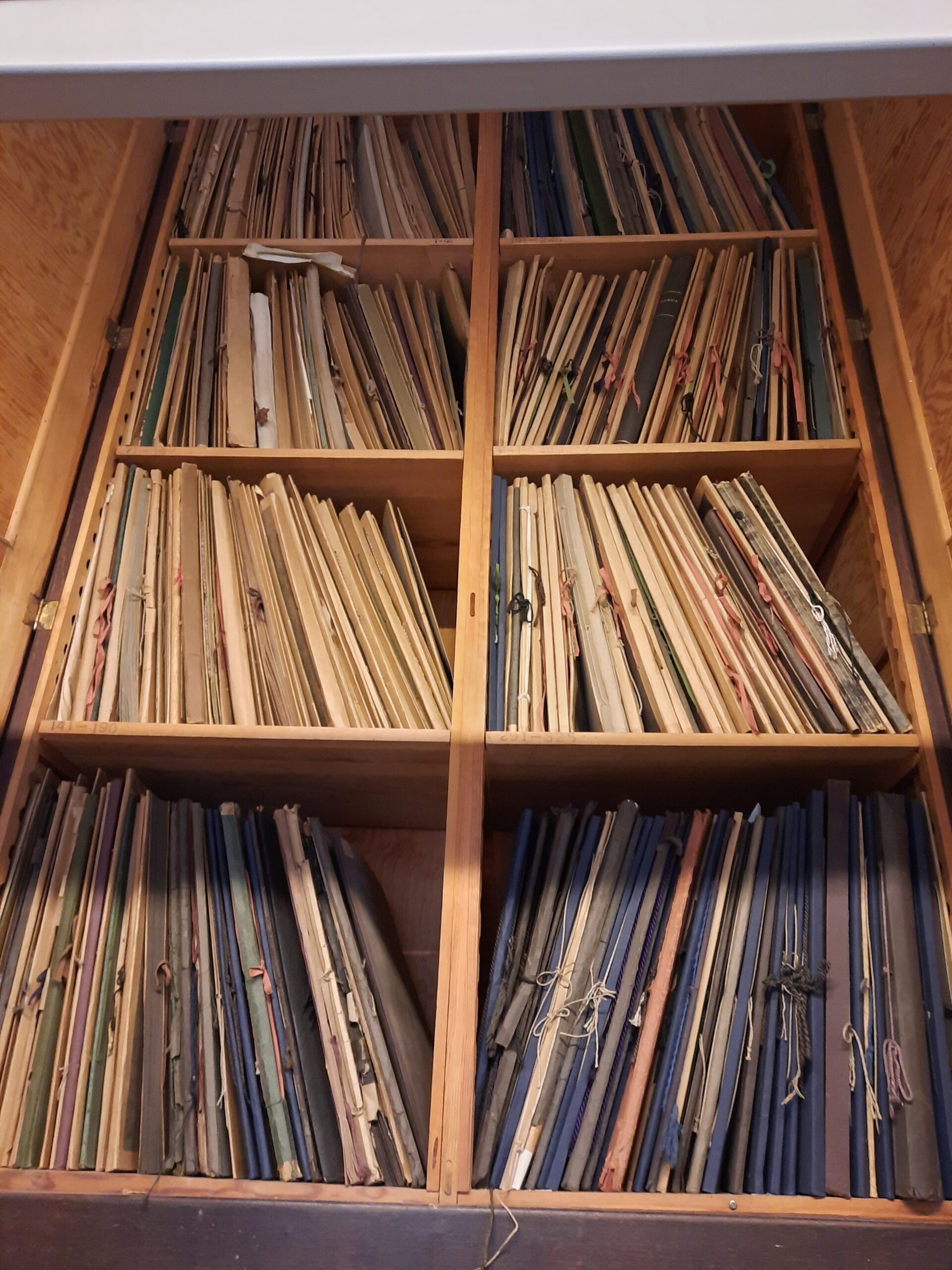 - Pomieszczenie i szafy, w których obecnie przechowywane są w Zakładzie Architektury Polskiej na Politechnice Warszawskiej zbiory pomiarowe Warszawy, które w grudniu 1944 roku do Piotrkowa przywiózł Bohdan Guerquin.