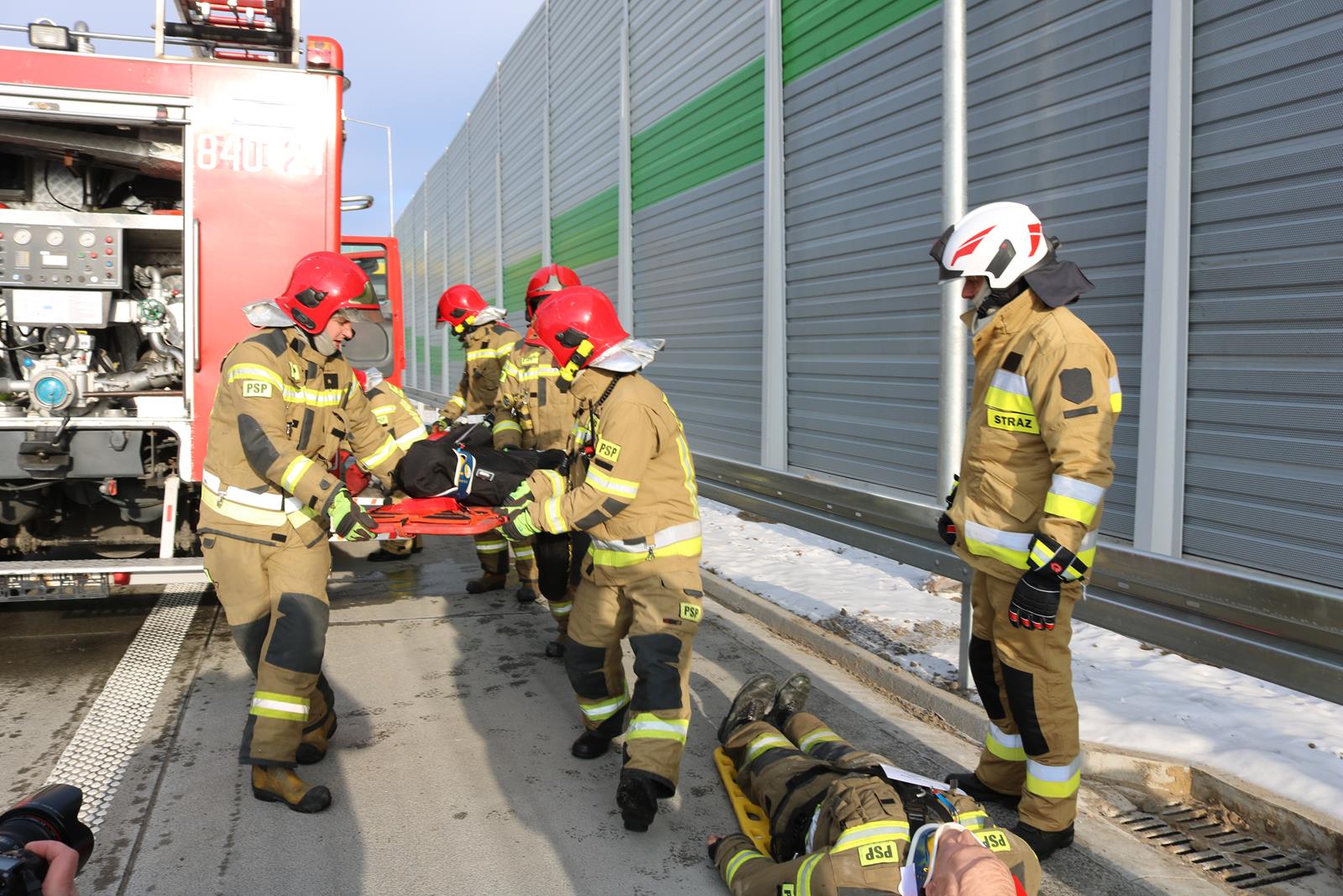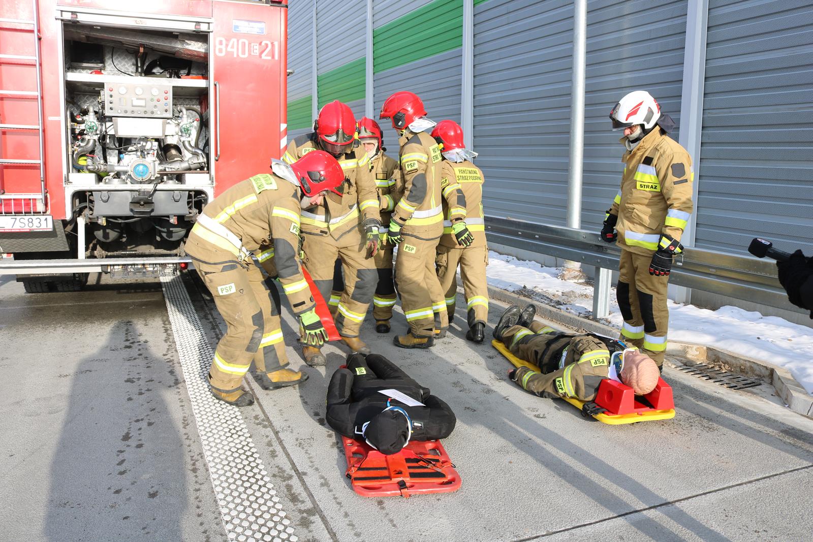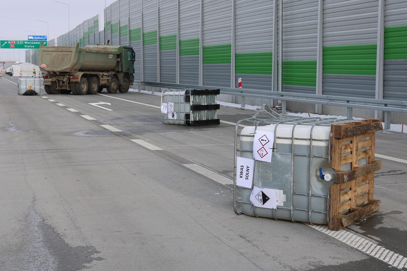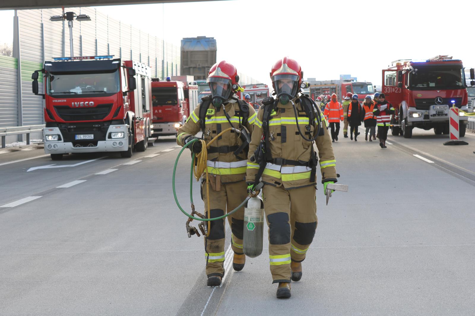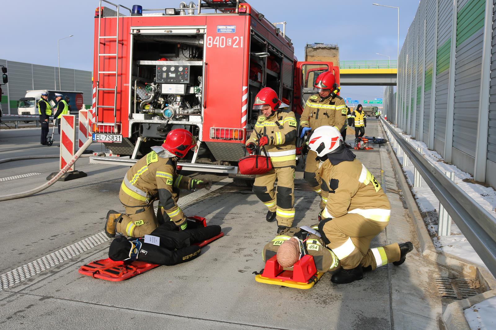 Ćwiczenia straży pożarnej i policji odbyły się w środę na autostradzie A1 pomiędzy węzłami Piotrków Trybunalski-Zachód a Piotrków Trybunalski-Północ. Scenariusz przewidywał podwójny wypadek. W pierwszym zdarzeniu ciężarówka wpadła na bariery. W trakcie wypadku z pojazdów wypadły zbiorniki z kwasem solnym,w drugim zdarzeniu samochody osobowe zderzyły się z ciężarówką.