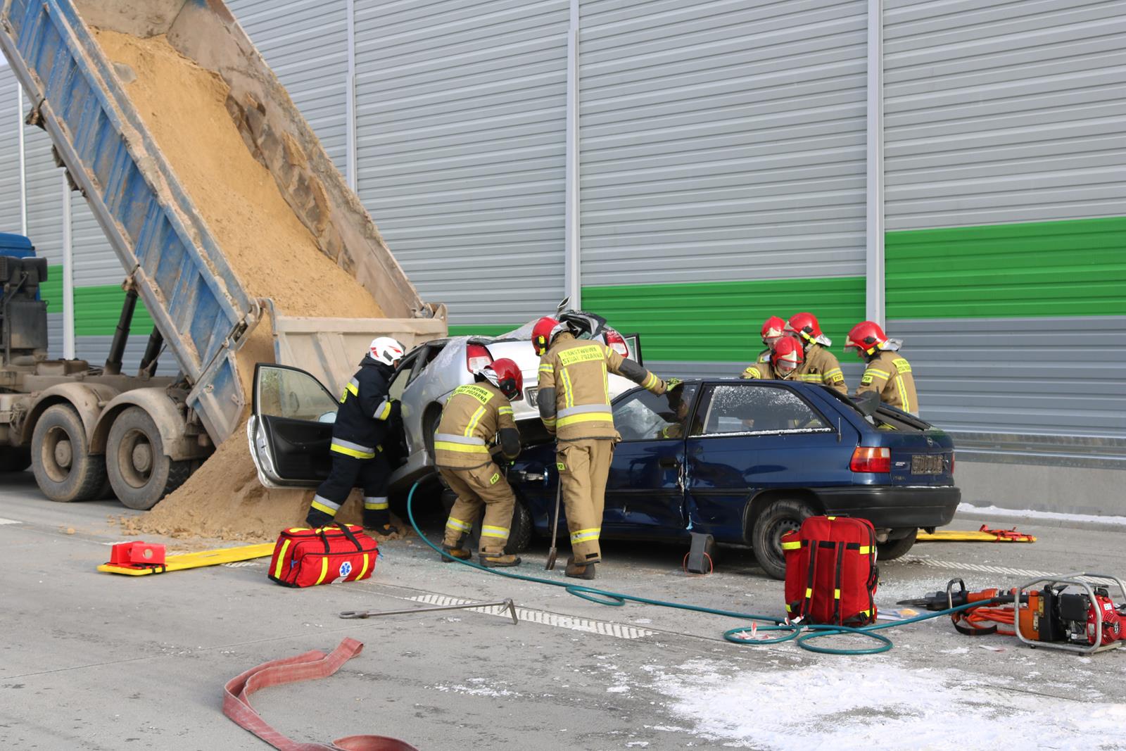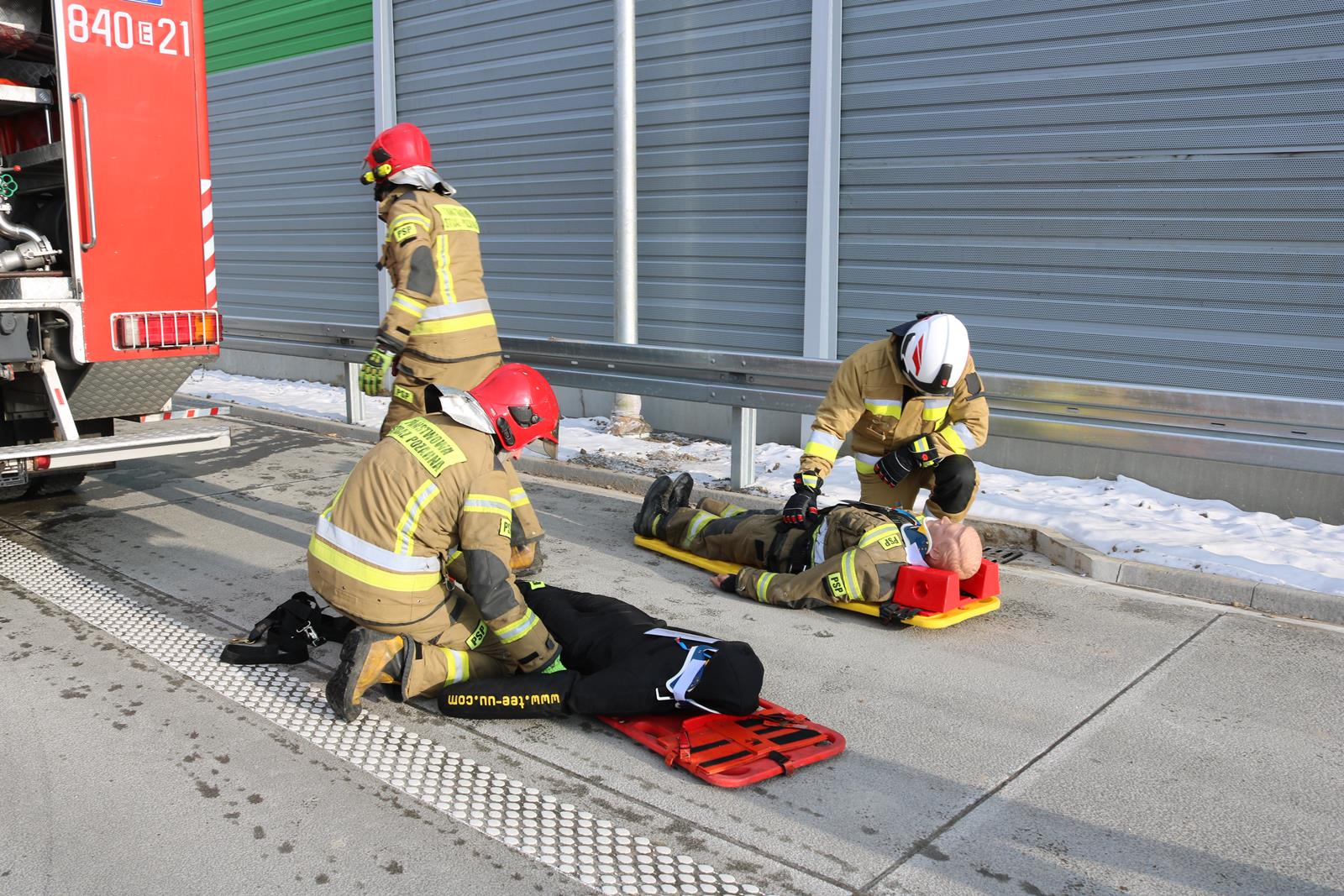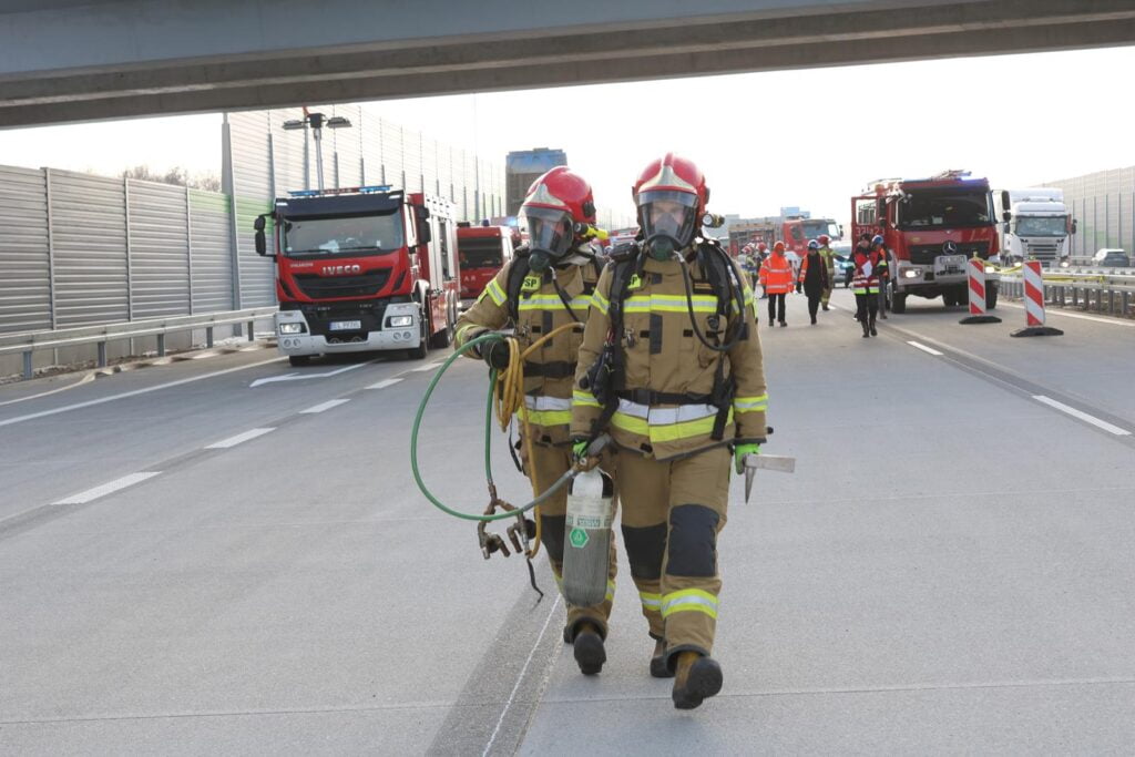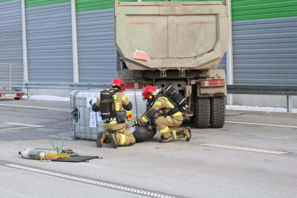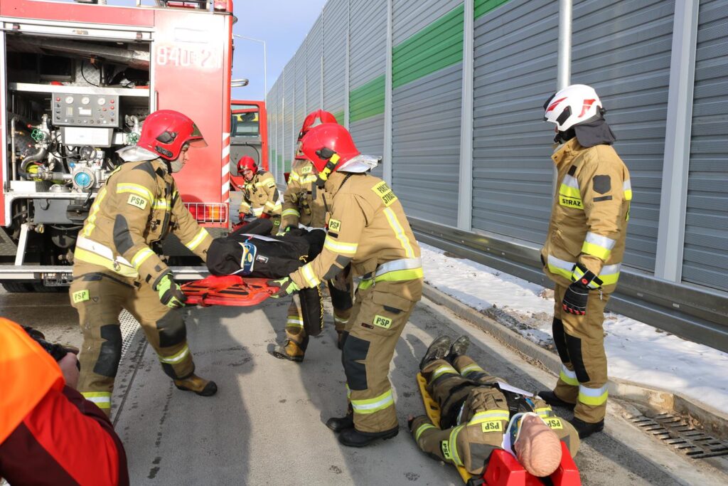 Ćwiczenia straży pożarnej i policji odbyły się w środę na autostradzie A1 pomiędzy węzłami Piotrków Trybunalski-Zachód a Piotrków Trybunalski-Północ. Scenariusz przewidywał podwójny wypadek. W pierwszym zdarzeniu ciężarówka wpadła na bariery. W trakcie wypadku z pojazdów wypadły zbiorniki z kwasem solnym,w drugim zdarzeniu samochody osobowe zderzyły się z ciężarówką.