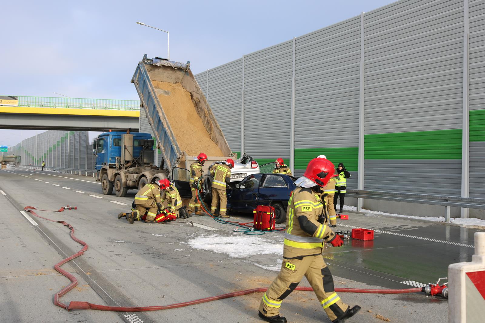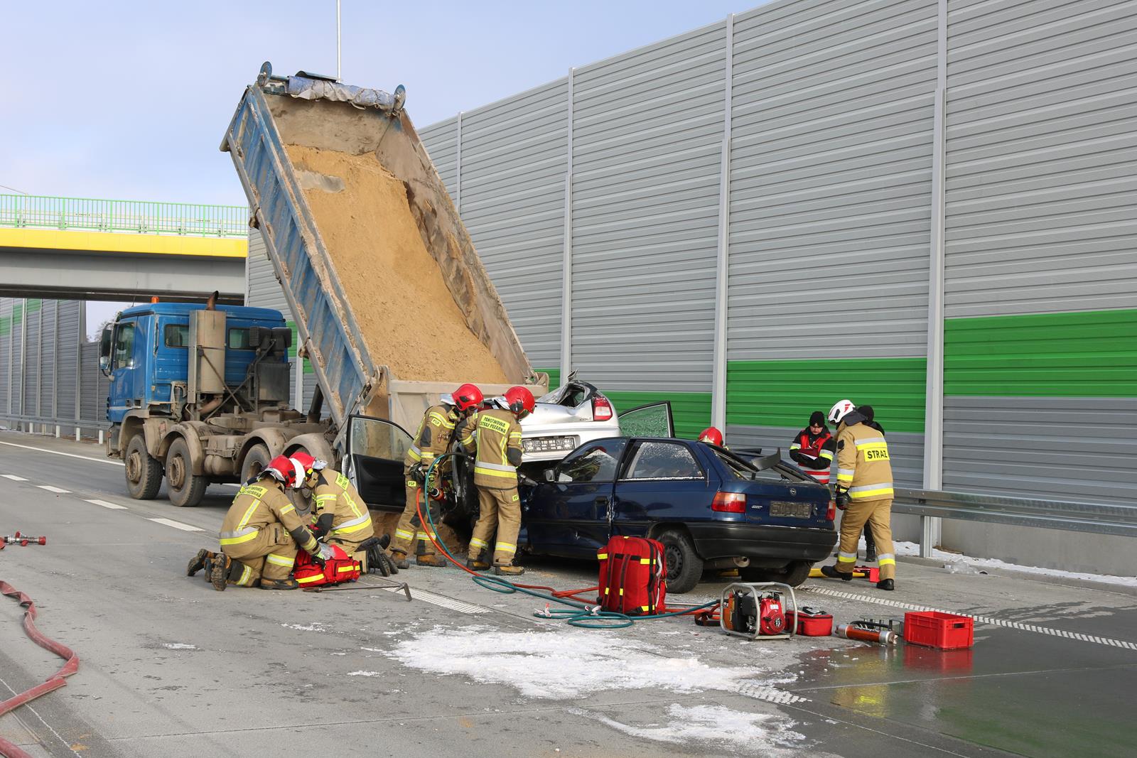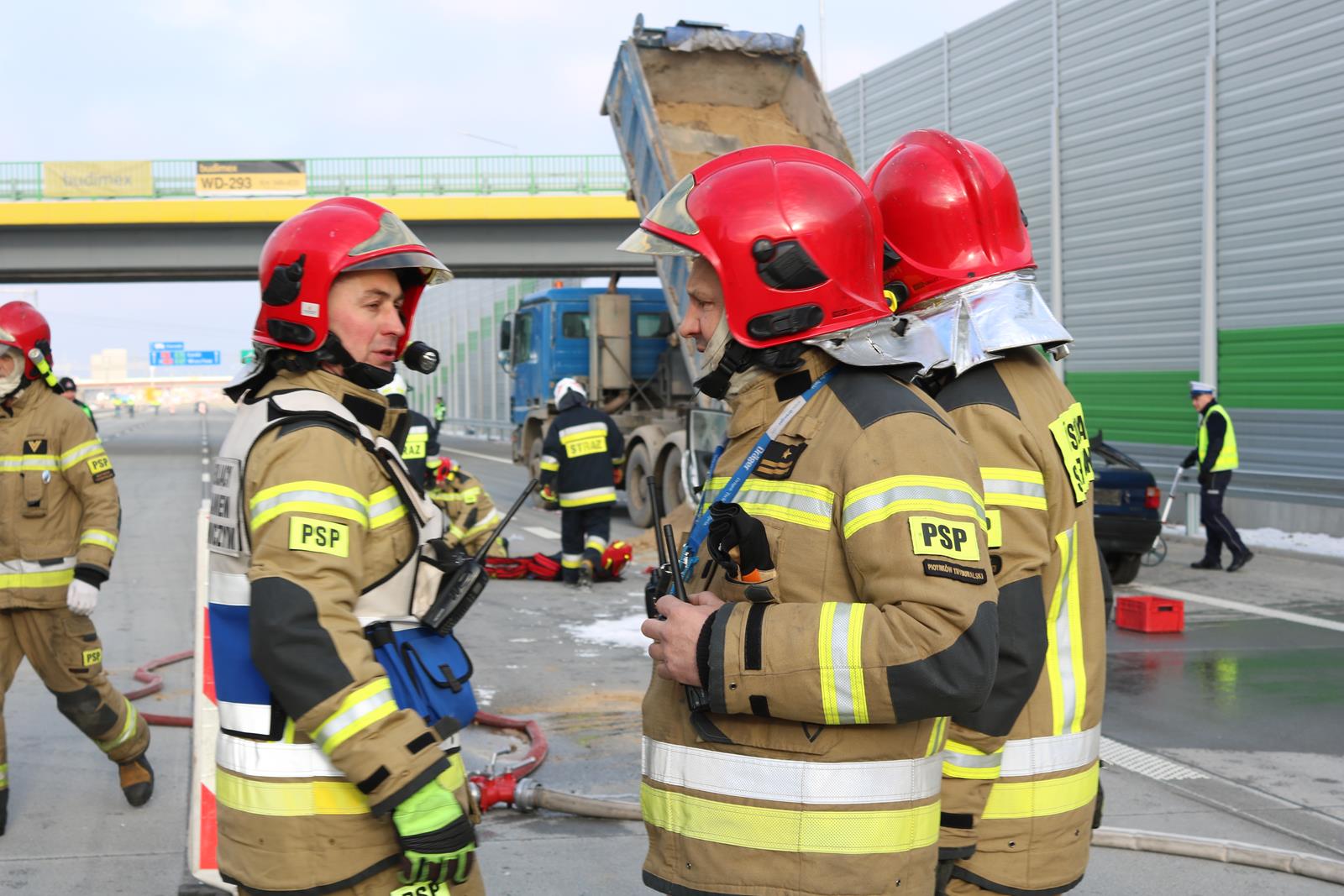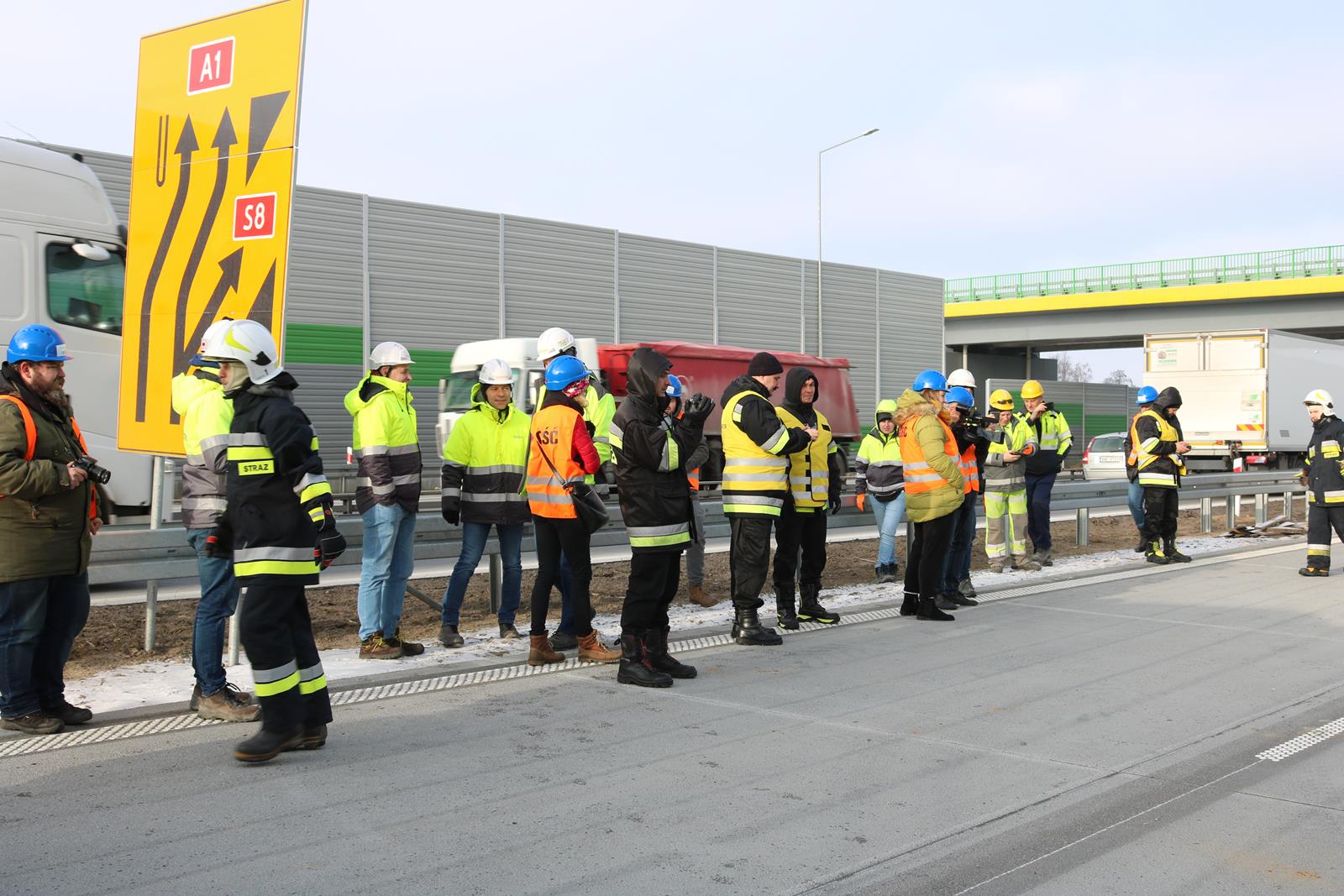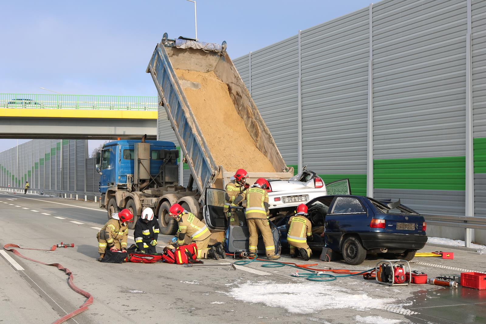 Ćwiczenia straży pożarnej i policji odbyły się w środę na autostradzie A1 pomiędzy węzłami Piotrków Trybunalski-Zachód a Piotrków Trybunalski-Północ. Scenariusz przewidywał podwójny wypadek. W pierwszym zdarzeniu ciężarówka wpadła na bariery. W trakcie wypadku z pojazdów wypadły zbiorniki z kwasem solnym,w drugim zdarzeniu samochody osobowe zderzyły się z ciężarówką.