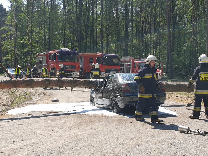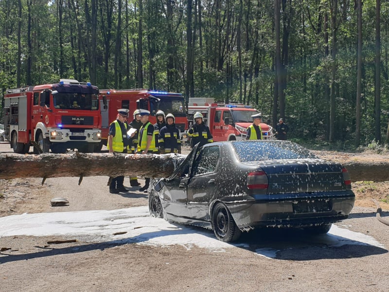 Dwudniowe ćwiczenia służb mundurowych odbywają się na terenie powiatu piotrkowskiego. W poniedziałek strażacy i policjanci ćwiczyli na Zalewie Sulejowskim. We wtorek w lesie nieopodal zalewu. Scenariusz działań był prosty – pierwszego dnia biały szkwał przywrócił łódkę, do wody wpadło kilka osób, trzeba było im jak najszybciej udzielić pomocy. Dziś symulowano poważny wypadek do którego doszło w lesie. Na jeden z samochodów spadło drzewa, drugi pojazd wpadł do rowu i przygniótł przypadkową osobę Do działań zadysponowano piotrkowskich strażaków jak i okoliczne jednostki OSP.
