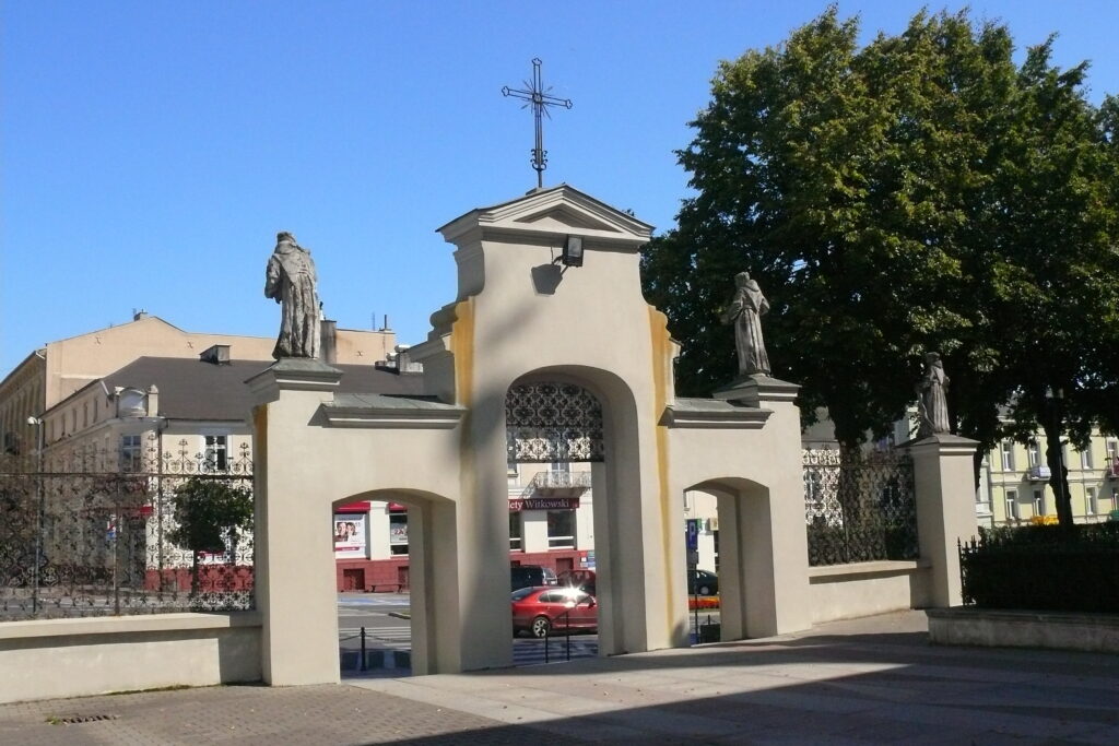 Faktem zasługującym na szczególną uwagę w przypadku „Cyrografu dojrzałości”jest udział w filmie wnętrz piotrkowskiego klasztoru Bernardynów. W dziejach miasta po raz pierwszy jako filmowy plener wykorzystano wnętrze katolickiej świątyni. Biorąc pod uwagę panujący w owym czasie ustrój i niechęć władz do kleru „wyczyn” filmowców zasługiwał na uznanie. Co ciekawe choć na ekranie główny bohater wędruje klasztornymi korytarzami to w filmie ani razu nie pojawia się obraz z wnętrza bernardyńskiego kościoła. Owszem na kilka sekund widoczny jest na ekranie obraz Jezusa Chrystusa, usytuowany w jednym z bocznych korytarzy na parterze klasztornych zabudowań, trudno jednak znaleźć jakikolwiek kadr przedstawiający ołtarz czy nawę główną bernardyńskiego kościoła. Warto jeszcze zwrócić uwagę, że „Cyrograf…” to jedna z nielicznych pamiątek po pierwotnej, XVIII-wiecznej barokowej bramie bernardyńskiej, zwanej „Srebrną Bramą”, prowadzącej z przykościelnego dziedzińca na plac Kościuszki. Wykonana w 1735 roku, według projektu brata Wenantego Pensa, ozdobiona czterema kamiennymi rzeźbami świętych i kutą kratą nieznanego autorstwa, została w 1969 roku na skutek zmian w organizacji ruchu w śródmieściu zburzona i zastąpiona stojącą 15 metrów bliżej klasztoru repliką. Film £Łomnickiego obok obrazu Janusza Morgensterna „Życie raz jeszcze”(pisaliśmy o nim tutaj)jest jedynym filmowym zapisem tego zniszczonego zabytku. W „Cyrografie…”na moment na ekranie pojawia się również bernardyński zegar. Po zakończeniu zdjęć w Piotrkowie w lokalnej prasie twórcy filmu zamieścili specjalne podziękowania. Obok wyrazów wdzięczności dla miejscowych władz partyjnych, miejskich i instytucji, pojawiły się także słowa uznania dla oo. Bernardynów, „(…) którzy nader przychylnie ustosunkowali się do nakręcenia scen filmowych w ich kościele.”.