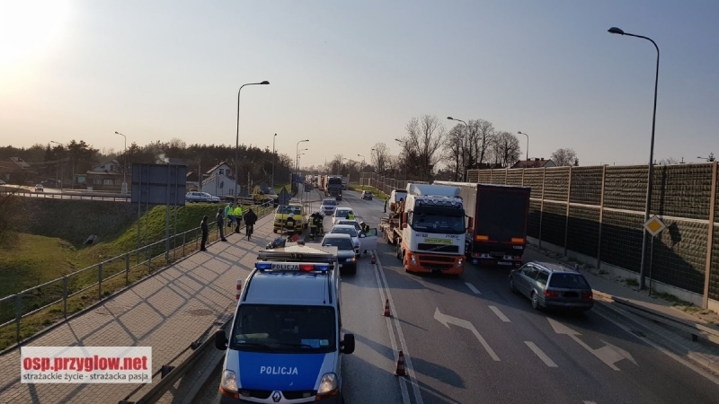 Jednostka z Przygłowa zabezpieczała miejsce zdarzenia do pełnego udrożnienia drogi.