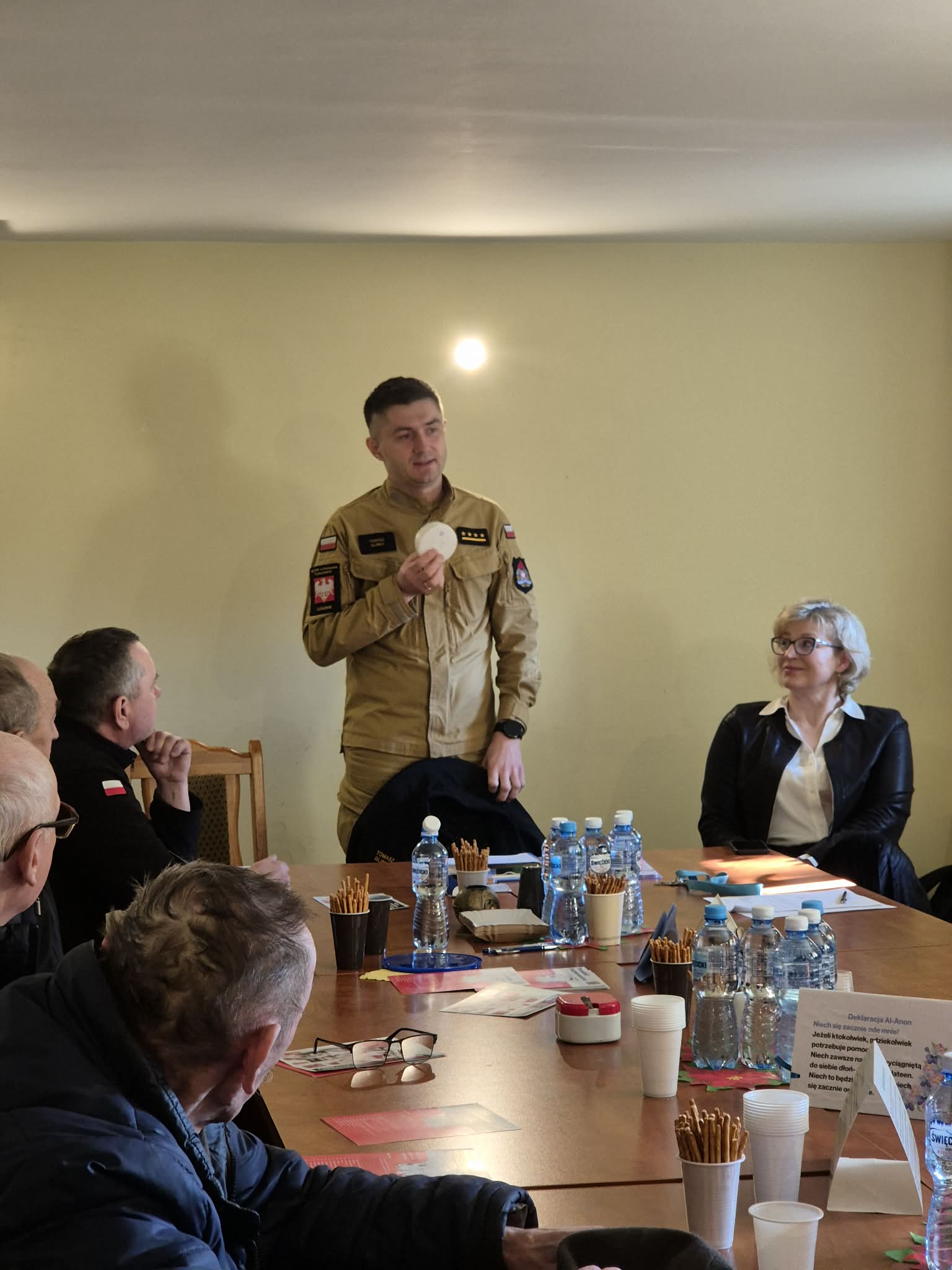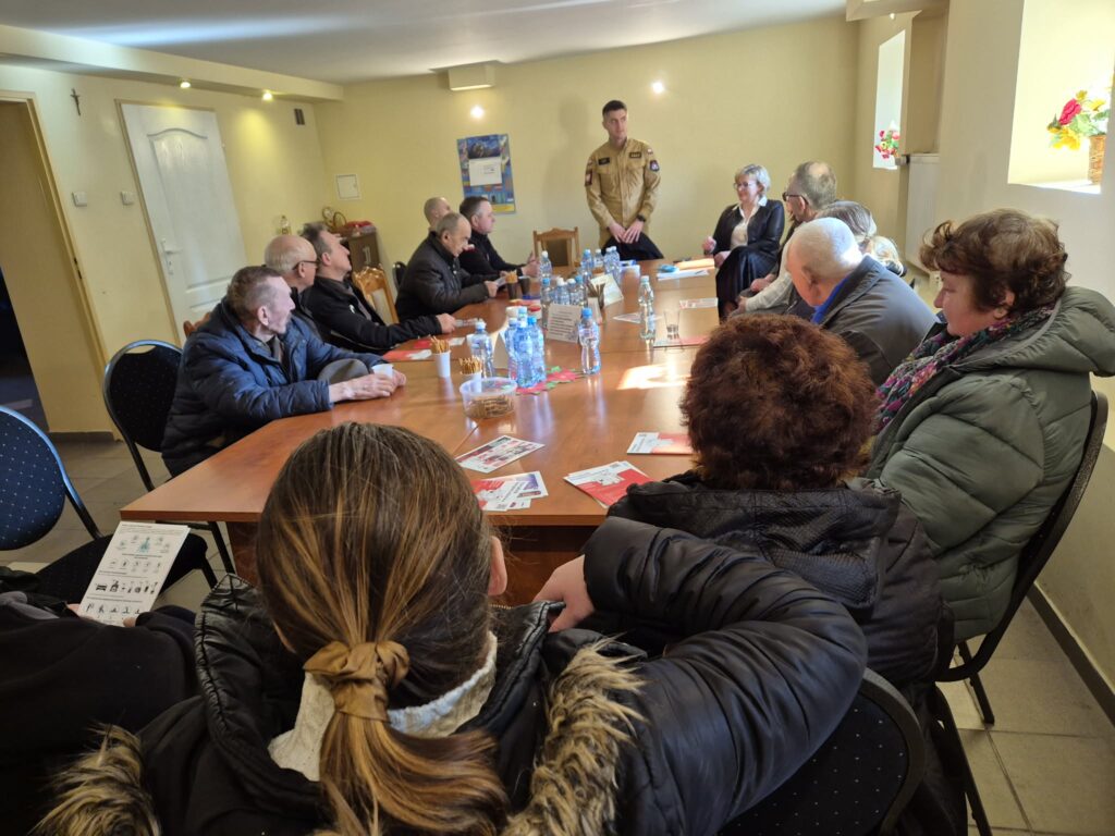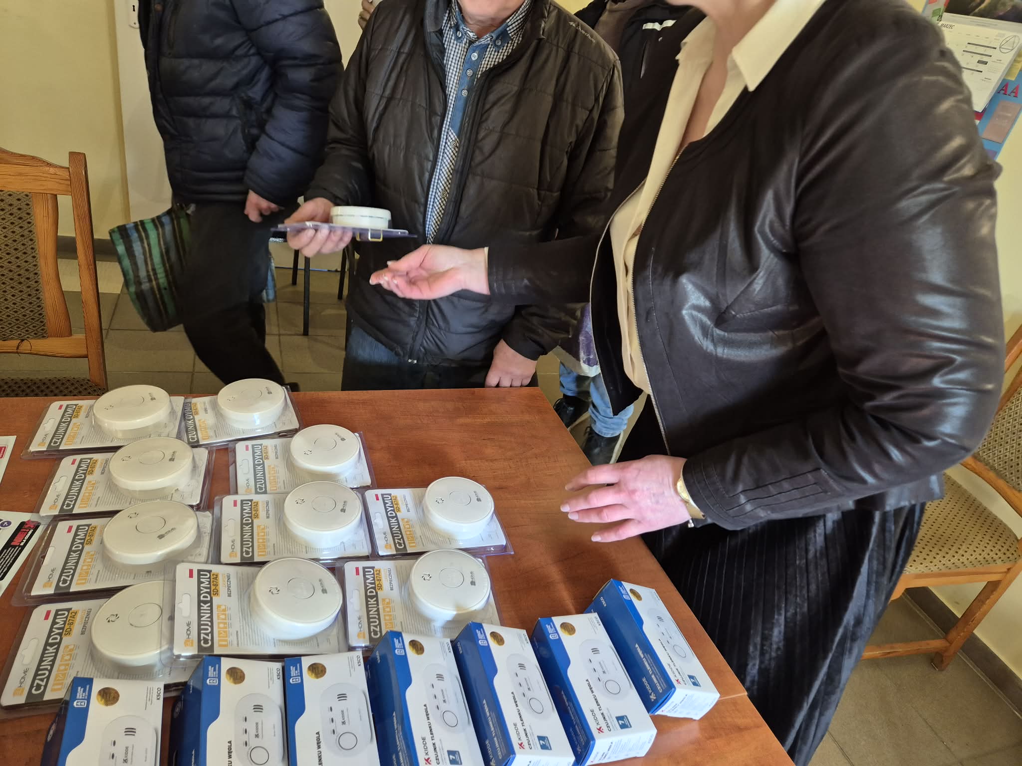 Przekazywaniu czujek towarzyszy kampania edukacyjno-informacyjna na temat zagrożeń związanych z możliwością powstania pożarów w mieszkaniach lub domach jednorodzinnych oraz zatruciem tlenkiem węgla. Funkcjonariusz Państwowej Straży Pożarnej wyjaśnił, jak działają urządzenia, gdzie należy je montować oraz jak prawidłowo z nich korzystać. Wręczył zebranym broszury dotyczące materiału z zakresu prewencji społecznej- Poradnik bezpieczeństwa.