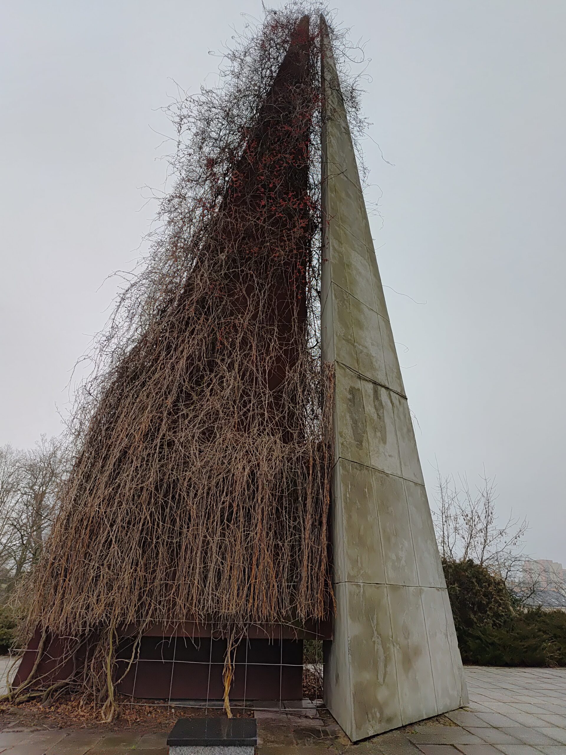 Zgodnie z zadaniem konkursowym przeobrażeniu, oprócz bryły dawnego pomnika, ulec miał również rozpościerający się wokół niego utwardzony plac o wymiarach 35 x 20 metrów, wyłożony grysem bazaltowym i czarno-białym złomem marmurowym i obramowany niskimi gazonami, tak by umożliwić na tym terenie organizowanie imprez plenerowych. Ostatecznie wedle założenia projektu Janusza Korczak Ziołkowskiego w pierwszym etapie adaptacji powierzchnię dwóch smukłych ostrosłupów otynkowano tynkiem ozdobnym – kolorowym (bordowym i beżowym), a na powierzchni wyższego zainstalowano rodzaj rusztu ze stali, który przeznaczono pod rośliny pnące. W ramach drugiego etapu wyrównano teren placu i zmniejszono szerokość schodów wiodących na teren obiektu od strony śródmiejskiego parku „Krzywda” (obecnie Park Jana Pawła II). Niestety nie wzniesiono ozdobnego murku wokół budowli ani nie powstały od strony ulicy Słowackiego dwa wejścia-bramy o nowoczesnej architekturze, choć te elementy były istotnym punktem w projekcie. Dlaczego zdecydowano się w ogóle na adaptację zamiast rozbiórki dawnego pomnika ku czci rzekomo polsko-radzieckiej przyjaźni i braterstwa? Jak wyjaśniały ówczesne władze miasta koszty obu przedsięwzięć były porównywalne, przy czym pierwsze szybsze w realizacji niż rozbiórka i realizacja nowego pomysłu na aranżację tej miejskiej przestrzeni – zwłaszcza, że z pomysłem, z racji ograniczeń wynikających i z ukształtowania terenu, podłoża i przyjętego planu zagospodarowania, było zdecydowanie trudniej, by nie powiedzieć, że takiego po prostu nie było. Nie wypadało więc, by w centrum stolicy istniejącego jeszcze wówczas województwa istniał plac „ziejący” pustką. Warto jeszcze dodać, że nowa rzeźba w śródmieściu wywołała ogólne poruszenie na temat tego, jak ją nazwać. Wśród mieszkańców krążyły trzy propozycje – Żaglówki, Ławka zakochanych i Ściana płaczu. Ostatecznie przyjęła się pierwsza z wymienionych.
