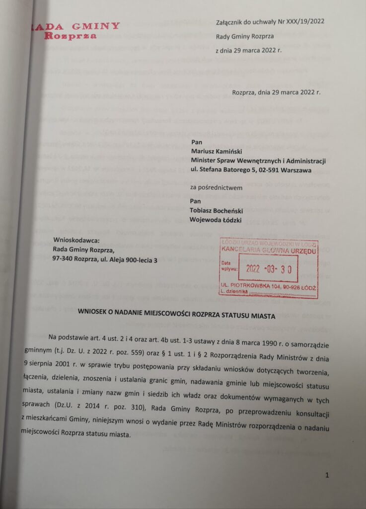 – Po wielomiesięcznych przygotowaniach, wniosek Rady Gminy Rozprza o nadanie miejscowości Rozprza statusu miasta, został już złożony do MSWiA za pośrednictwem Wojewody Łódzkiego Tobiasza Bocheńskiego. To ogromna szansa dla naszej gminy. Wraz z pozytywną decyzją Rady Ministrów otworzą się dla nas nowe możliwości rozwoju. Bardzo dziękuję wszystkim mieszkańcom którzy wzięli udział w konsultacjach społecznych. Dziękuję radnym oraz wszystkim tym którzy pracowali przy przygotowaniu wniosku. – mówi Janusz Jędrzejczyk wójt Gminy Rozprza.