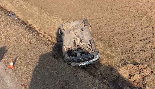 Kierująca volkswgenem passatem z niewyjaśnionych przyczyn wjechała nagle przez jadącą w tym samym kierunku ciężarówkę renault, odbiła się od niej i wypadła z drogi dachując. Ranne zostały dwie osoby. Kierującą śmigłowiec LPR przetransportował do szpitala w Łodzi, a pasażera osobówki karetką do piotrkowskiego szpitala.